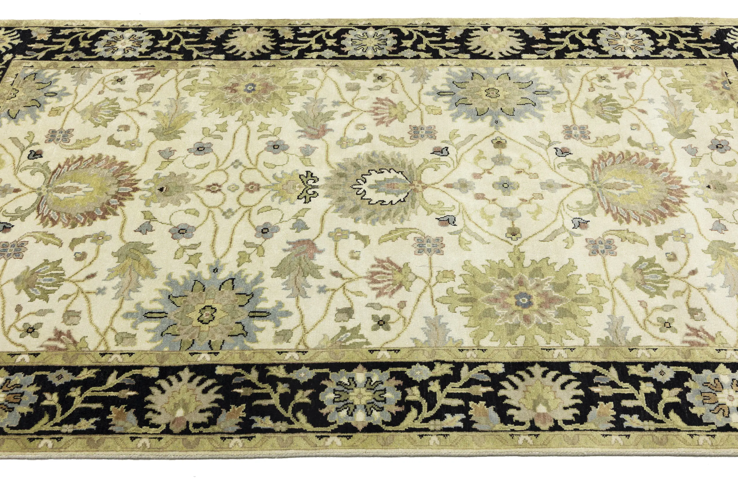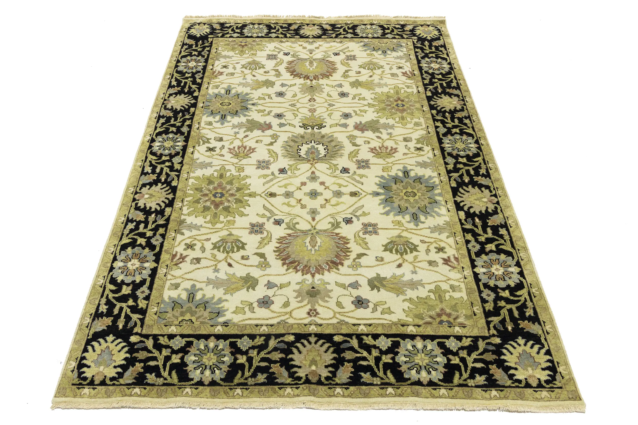 Cream Floral Transitional 6X9 Oushak Chobi Oriental Rug