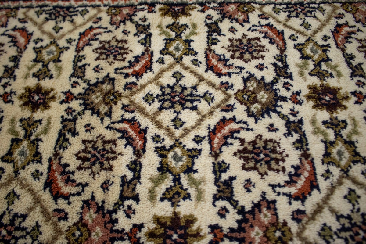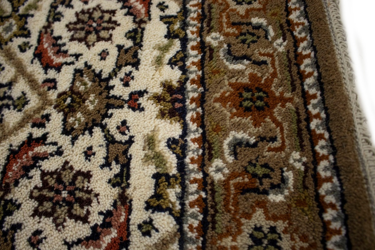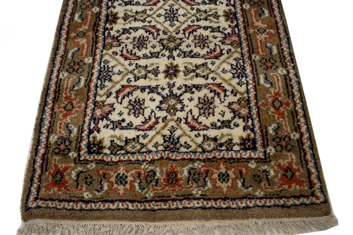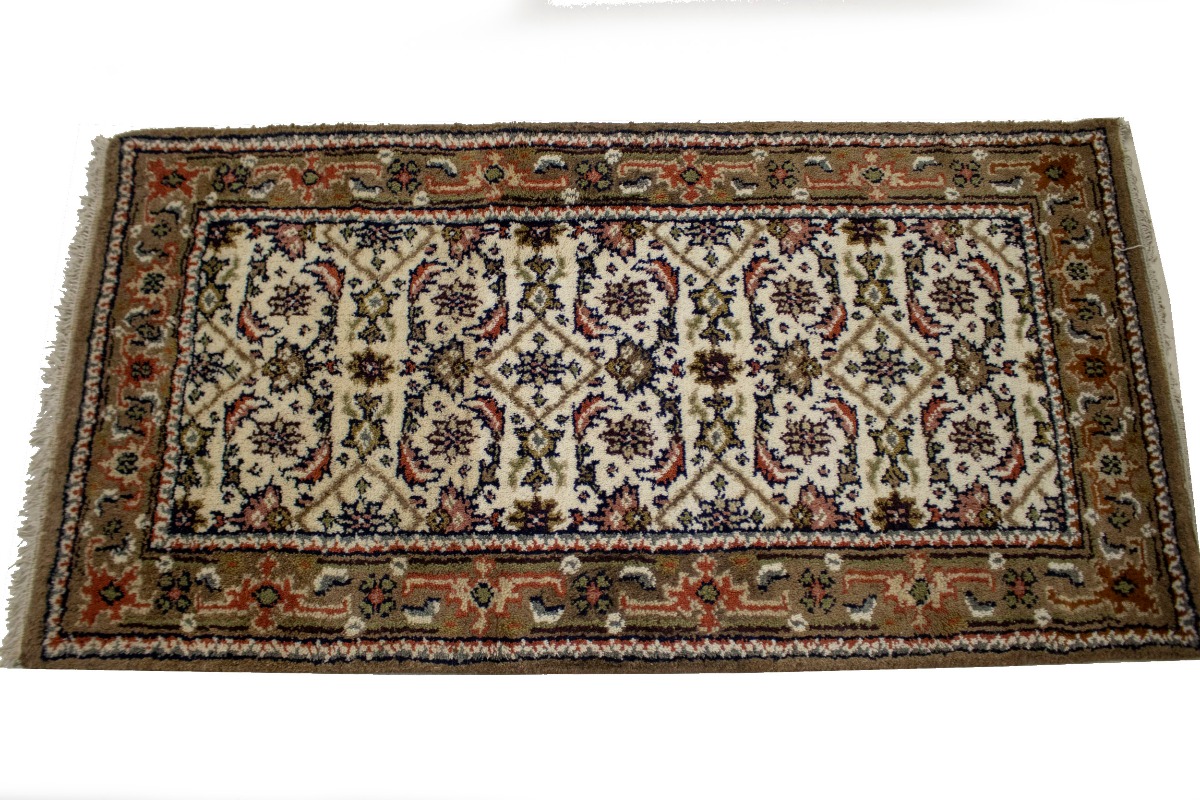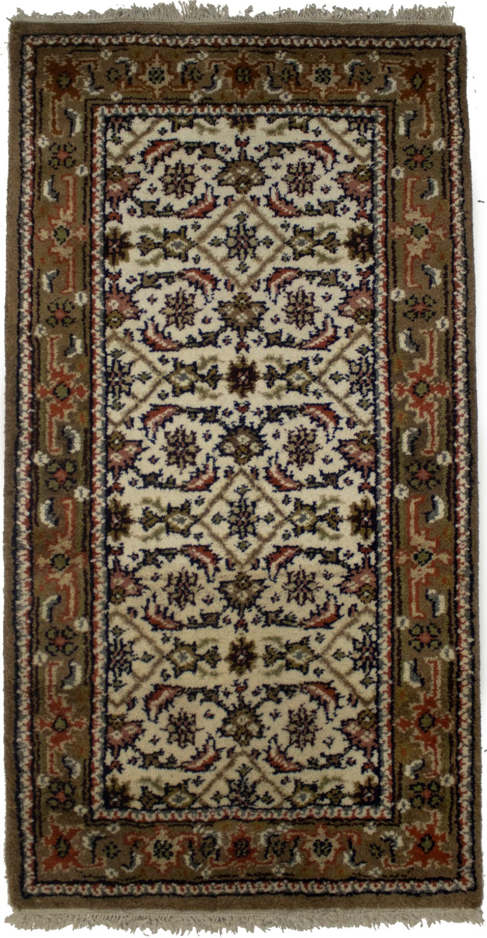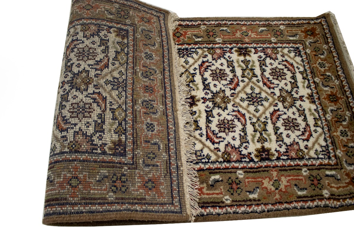 This authentic 2'5X4'7 cream new Oriental rug was crafted by the hands of skilled weavers enthused by a variety of lovely artistic designs, to recreate the aged look of the unique piece with a richness of color and beautifully elaborated background field. What set this vintage style Oriental area rug from the others are the material and dye used (wool pile and cotton foundation), knot count, ancient designs, fantastic grades, and its regional historical connection: it has deep roots, from the story of the people who produced it to the meaning of the symbols and colors displayed across its canvas that have been praised for centuries. This Indian home décor carpet will be completely cozy and inviting that never will go out of style! Also, this Oriental rug would be among your most valuable treasures, it is a great investment that increase in value over time, and it will last for generations because was woven with high-quality, all-natural wool. Environmentally friendly, opulent yet affordable; this rug will give you a thorough amount of character to help define your living space with sophistication and warmth that will capture the eyes and attention of your audience (homeowners, designers, decorators, family and friends). OT-4570