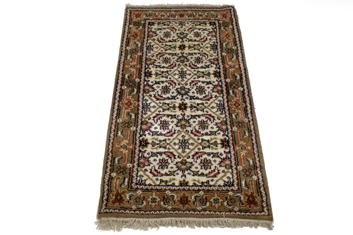 Handmade 2'5X4'7 cream oriental rug made with natural dyes (fine wool pile and cotton foundation), superior knot count, and appealing ancient designs. This Oriental rug never will go out of style and would be among your most valuable treasures.