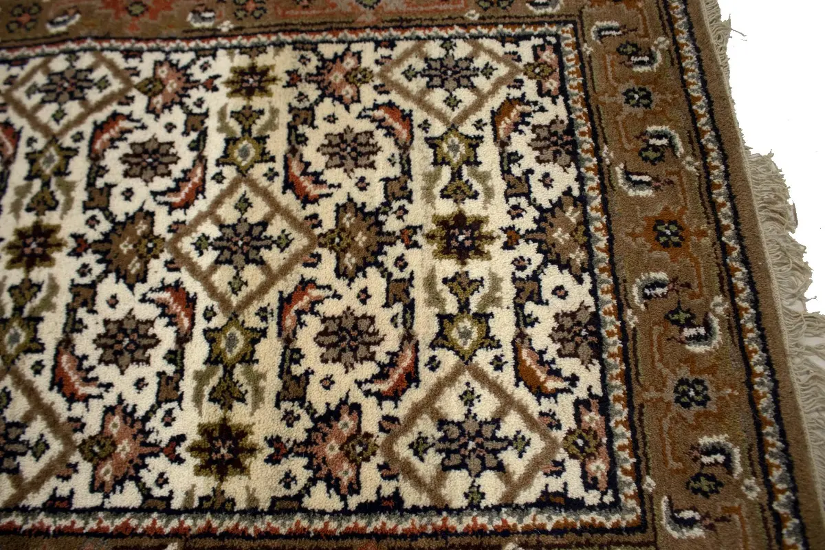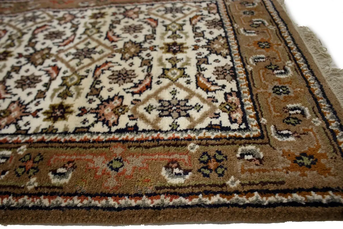 This genuine 3X8 cream new Oriental runner was made by the hands of gifted weavers inspired by a variety of spectacular artistic designs, to recreate the aged look of the original piece with a richness of color and ornately patterned background field. What set this vintage style Oriental area runner from the others are the material and dye used (wool pile and cotton foundation), knot count, ancient designs, fantastic grades, and its regional historical connection: it has deep roots, from the story of the people who produced it to the meaning of the symbols and colors displayed across its canvas that have been praised for centuries. This Indian home décor carpet will be completely cozy and inviting that never will go out of style! Also, this Oriental rug would be among your most valuable treasures, it is a great investment that accrues value over time, and it will last for generations because was woven with high-quality, all-natural wool. Environmentally friendly, opulent yet affordable; this runner will give you a thorough amount of character to help define your living space with elegance and warmth that will capture the eyes and attention of your audience (homeowners, designers, decorators, family and friends). OT-4626