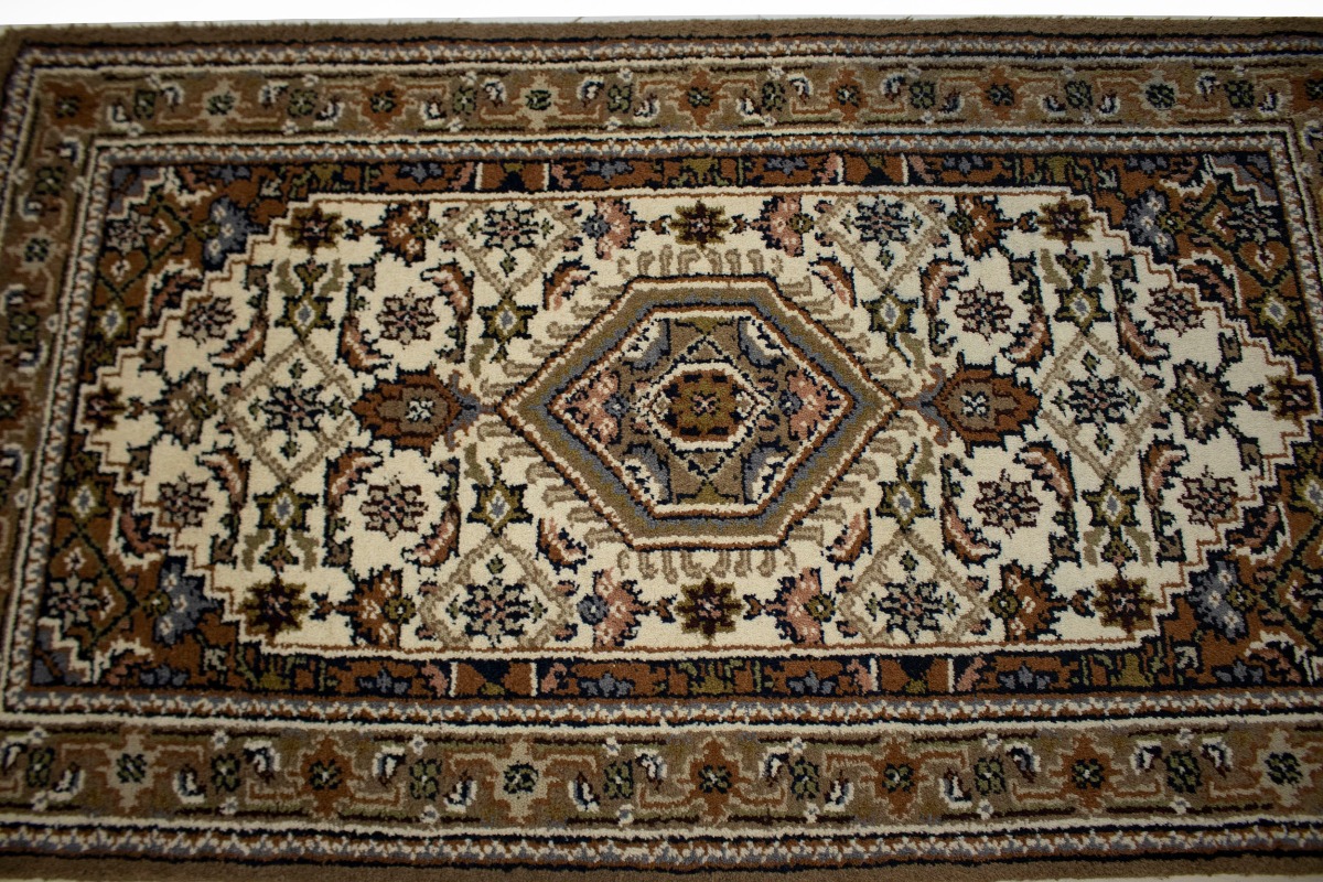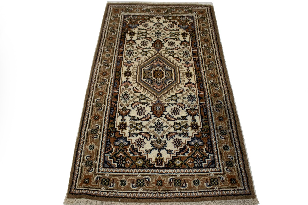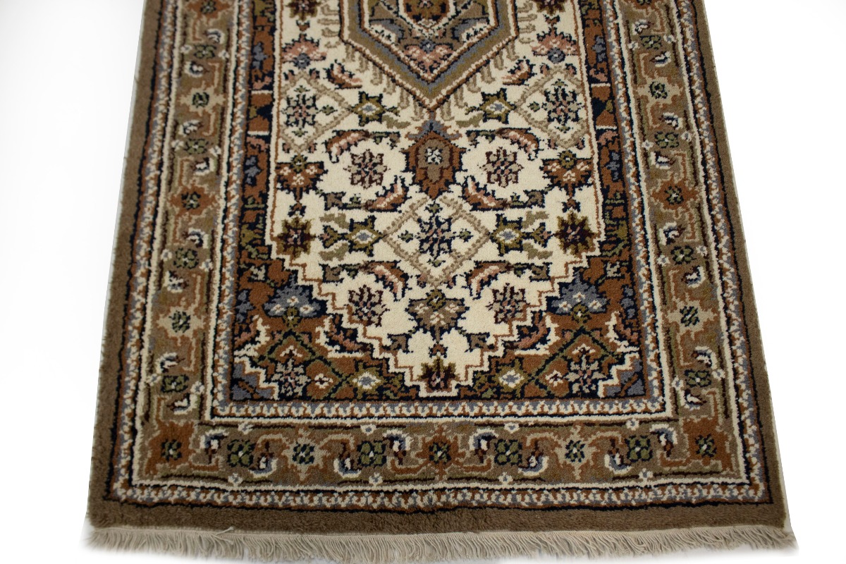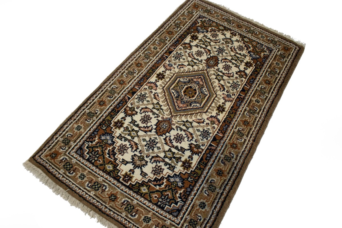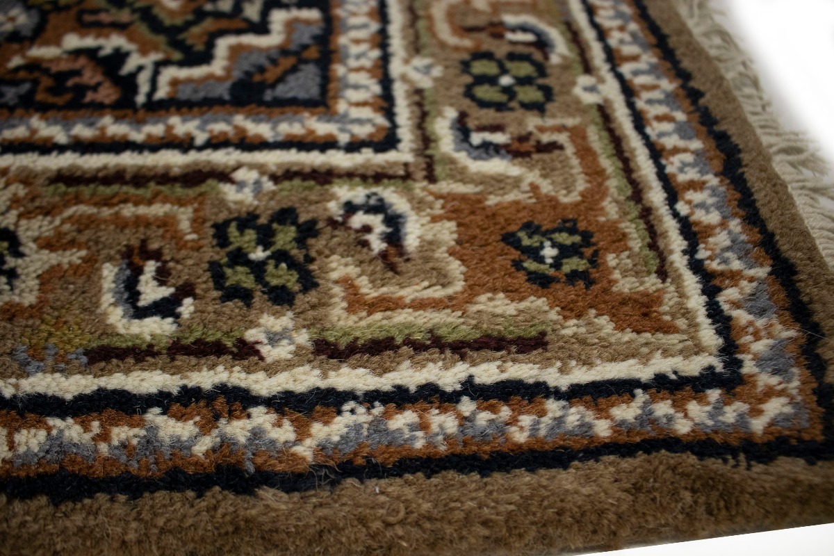 This genuine 3X5 cream new Oriental rug was made by the hands of gifted weavers inspired by a variety of spectacular artistic designs, to recreate the aged look of the original piece with a richness of color and ornately patterned background field. What set this vintage style Oriental area rug from the others are the material and dye used (wool pile and cotton foundation), knot count, ancient designs, fantastic grades, and its regional historical connection: it has deep roots, from the story of the people who produced it to the meaning of the symbols and colors displayed across its canvas that have been praised for centuries. This Indian home décor carpet will be completely cozy and inviting that never will go out of style! Also, this Oriental rug would be among your most valuable treasures, it is a great investment that accrues value over time, and it will last for generations because was woven with high-quality, all-natural wool. Environmentally friendly, opulent yet affordable; this rug will give you a thorough amount of character to help define your living space with elegance and warmth that will capture the eyes and attention of your audience (homeowners, designers, decorators, family and friends). OT-4548
