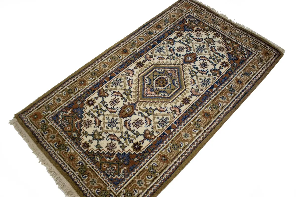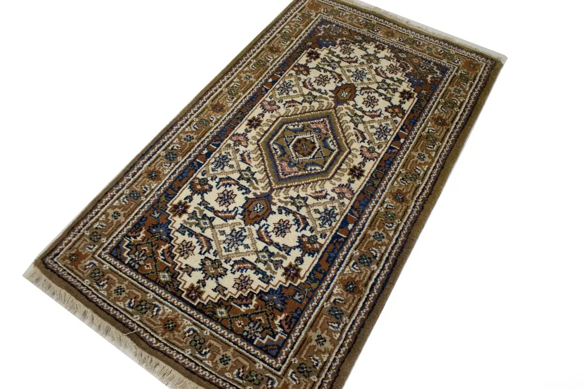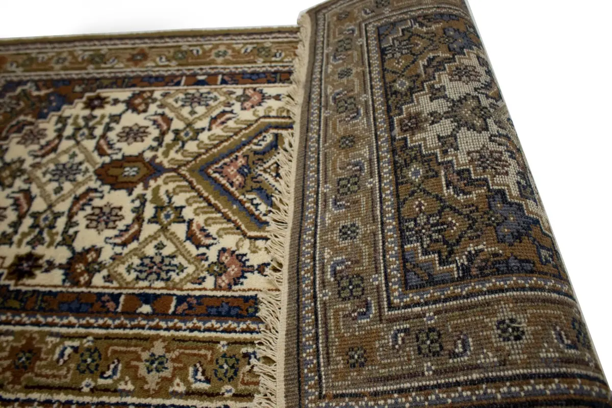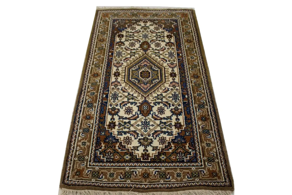 This authentic 3X5 cream new Oriental rug was masterly knotted by the hands of weavers inspired by a variety of wonderful artistic designs, to recreate the aged look of the original piece with a richness of color and intricate patterned background field. What set this vintage style Oriental area rug from the others are the material and dye used (wool pile and cotton foundation), knot count, antique designs, fantastic grades, and its regional historical connection: it has deep roots, from the story of the people who produced it to the meaning of the symbols and colors displayed across its canvas that have been praised for centuries. This Indian home décor carpet will be completely cozy and inviting that never will go out of style! Also, this Oriental rug would be among your most valuable treasures, it is a great investment that accrues value over time, and it will last for generations because was woven with high-quality, all-natural wool. Environmentally friendly, opulent yet affordable; this rug will give you a thorough amount of character to help define your living space with luxury and warmth that will capture the eyes and attention of your audience (homeowners, designers, decorators, family and friends). OT-4549