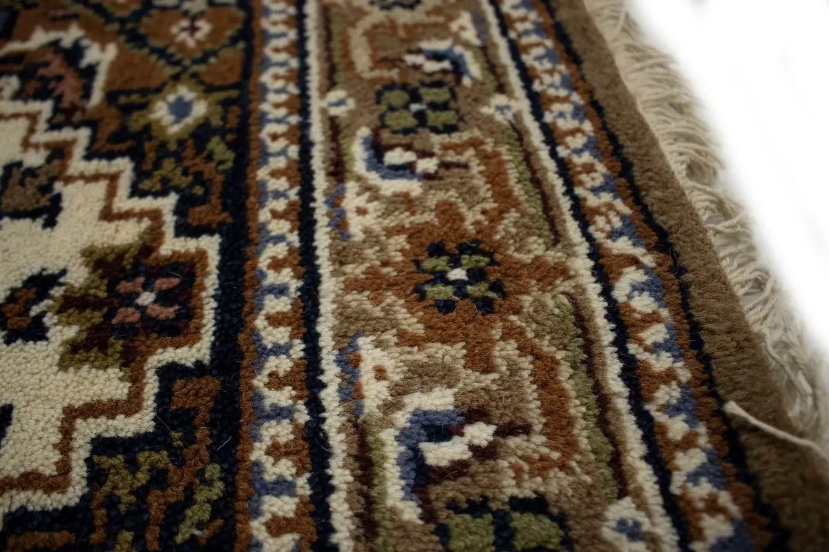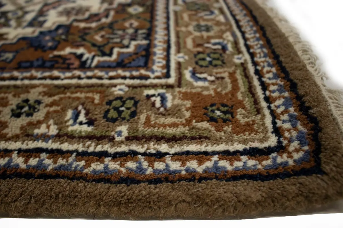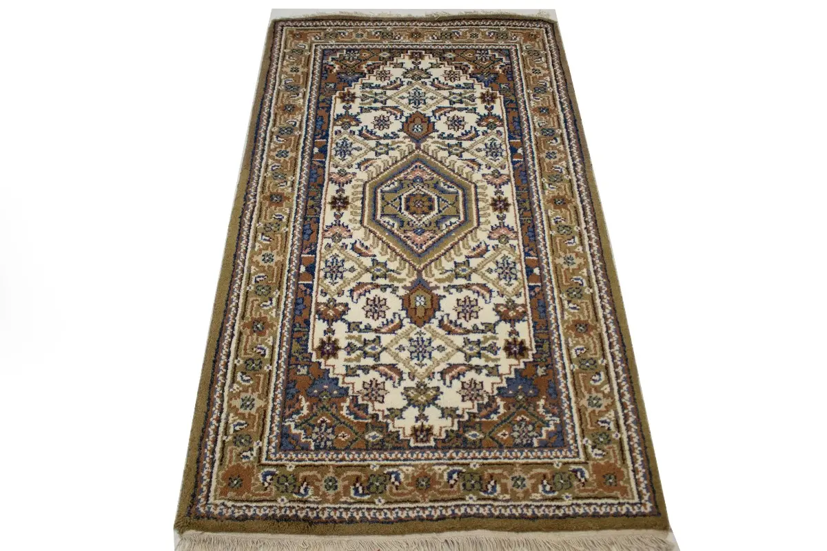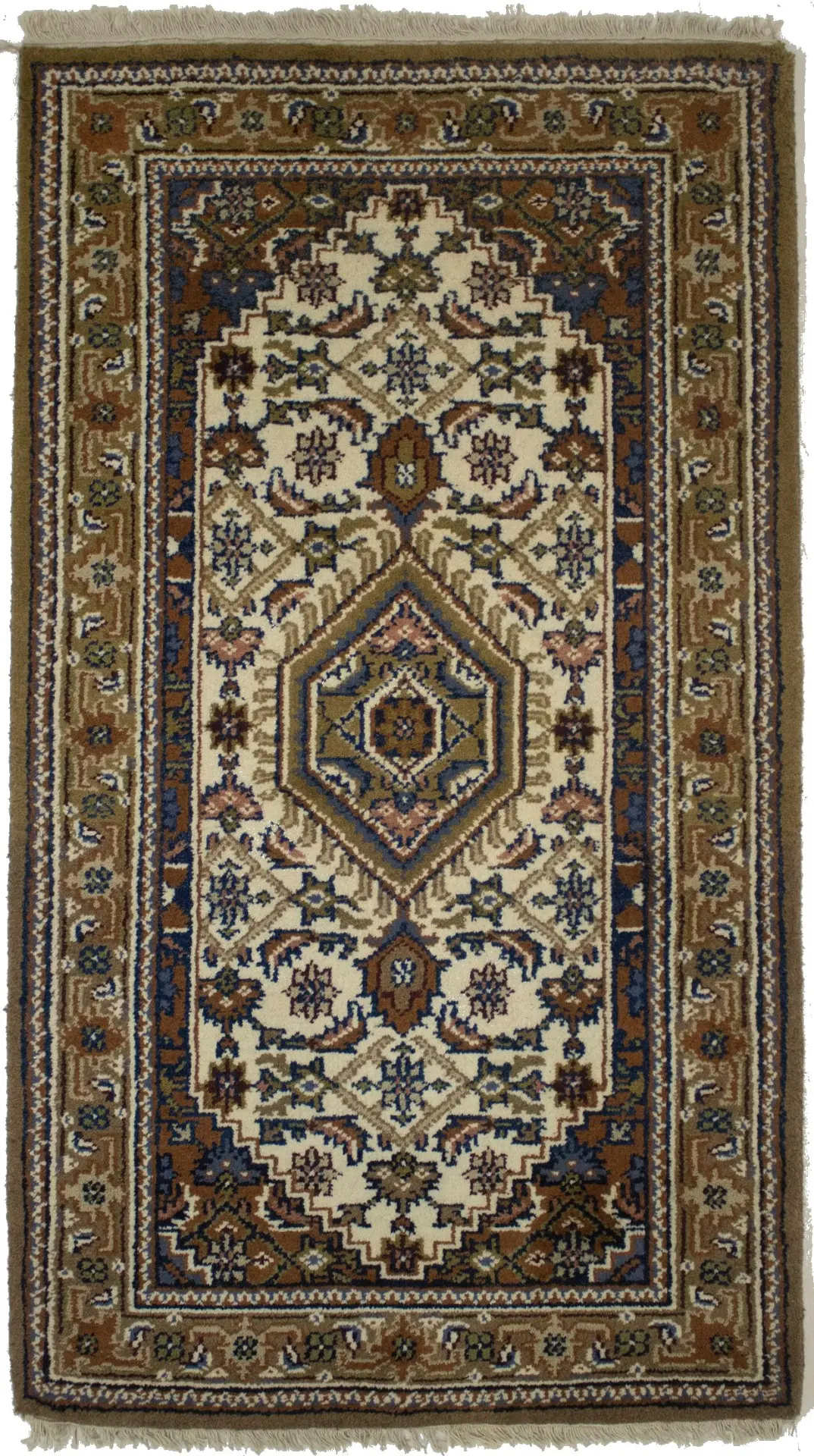 This authentic 3X5 cream new Oriental rug was masterly knotted by the hands of weavers inspired by a variety of wonderful artistic designs, to recreate the aged look of the original piece with a richness of color and intricate patterned background field. What set this vintage style Oriental area rug from the others are the material and dye used (wool pile and cotton foundation), knot count, antique designs, fantastic grades, and its regional historical connection: it has deep roots, from the story of the people who produced it to the meaning of the symbols and colors displayed across its canvas that have been praised for centuries. This Indian home décor carpet will be completely cozy and inviting that never will go out of style! Also, this Oriental rug would be among your most valuable treasures, it is a great investment that accrues value over time, and it will last for generations because was woven with high-quality, all-natural wool. Environmentally friendly, opulent yet affordable; this rug will give you a thorough amount of character to help define your living space with luxury and warmth that will capture the eyes and attention of your audience (homeowners, designers, decorators, family and friends). OT-4549