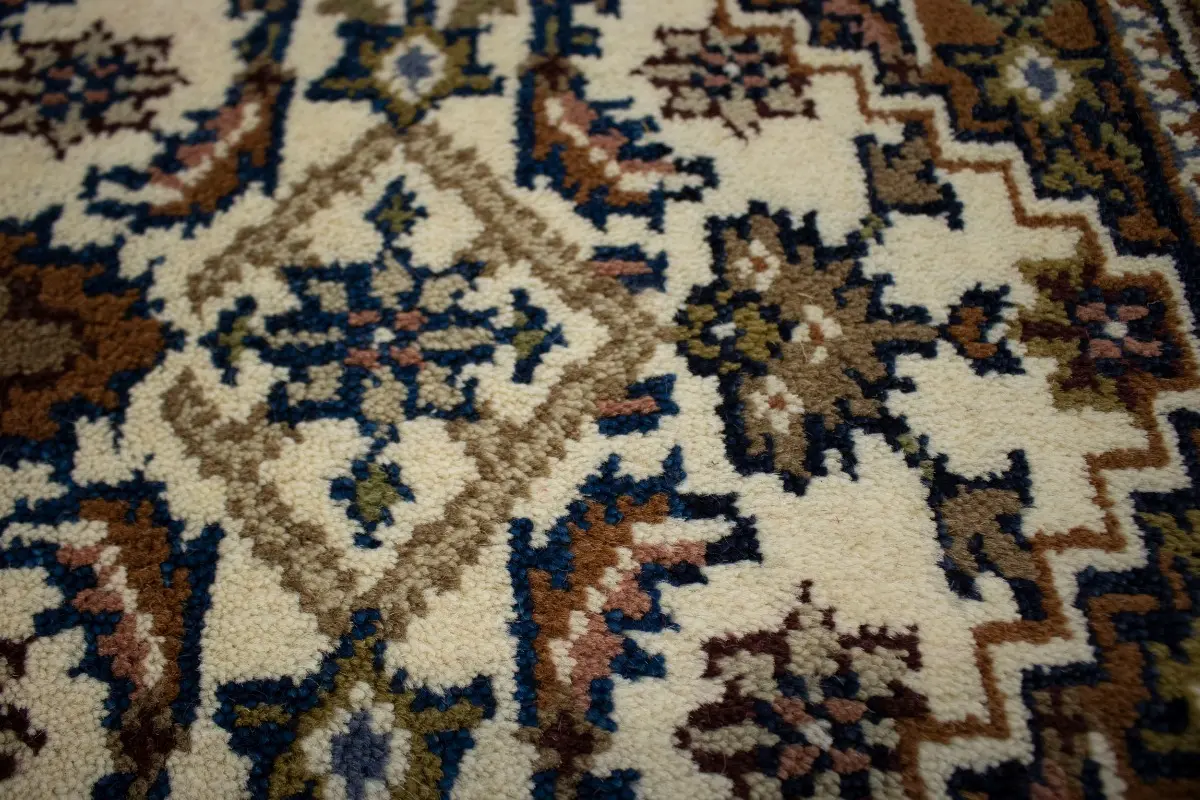 Handmade 3X5 cream oriental rug made with natural dyes (fine wool pile and cotton foundation), superior knot count, and appealing ancient designs. This Oriental rug never will go out of style and would be among your most valuable treasures.