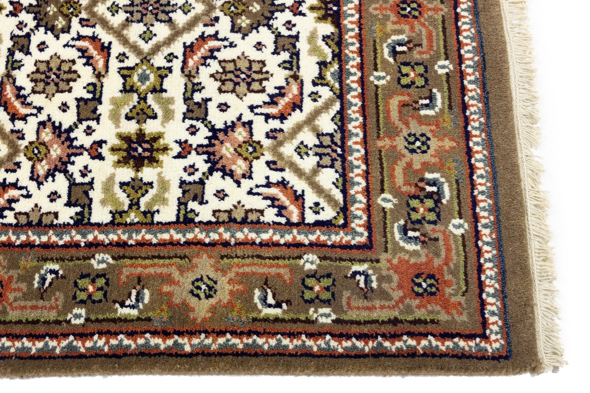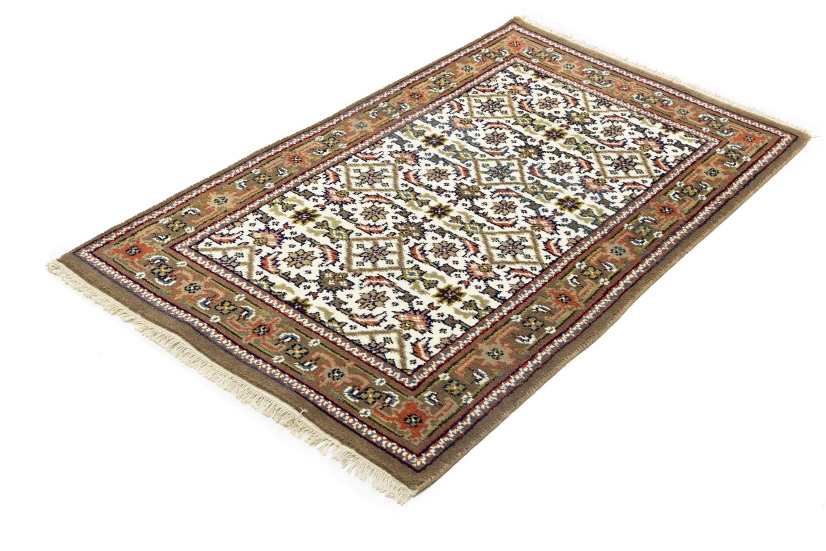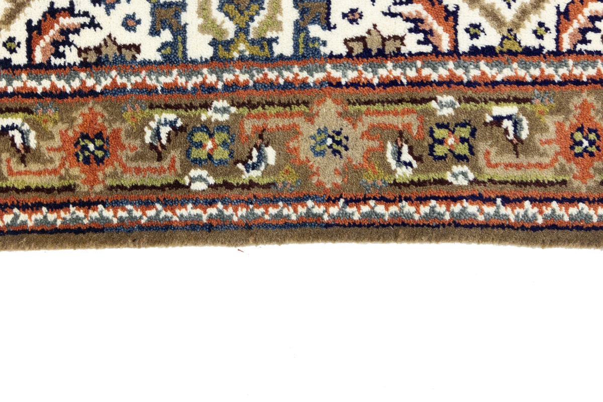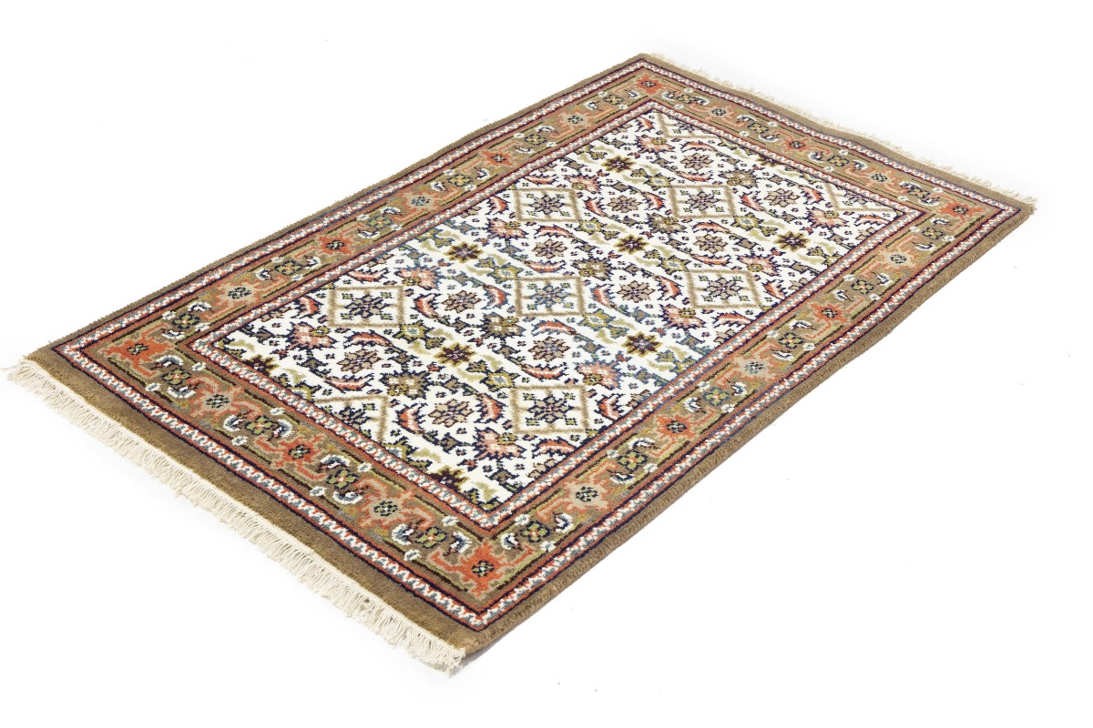 This genuine 3X5 cream new Oriental rug was made by the hands of gifted weavers inspired by a variety of spectacular artistic designs, to recreate the aged look of the original piece with a richness of color and ornately patterned background field. What set this vintage style Oriental area rug from the others are the material and dye used (wool pile and cotton foundation), knot count, ancient designs, fantastic grades, and its regional historical connection: it has deep roots, from the story of the people who produced it to the meaning of the symbols and colors displayed across its canvas that have been praised for centuries. This Indian home décor carpet will be completely cozy and inviting that never will go out of style! Also, this Oriental rug would be among your most valuable treasures, it is a great investment that accrues value over time, and it will last for generations because was woven with high-quality, all-natural wool. Environmentally friendly, opulent yet affordable; this rug will give you a thorough amount of character to help define your living space with elegance and warmth that will capture the eyes and attention of your audience (homeowners, designers, decorators, family and friends). OT-8583