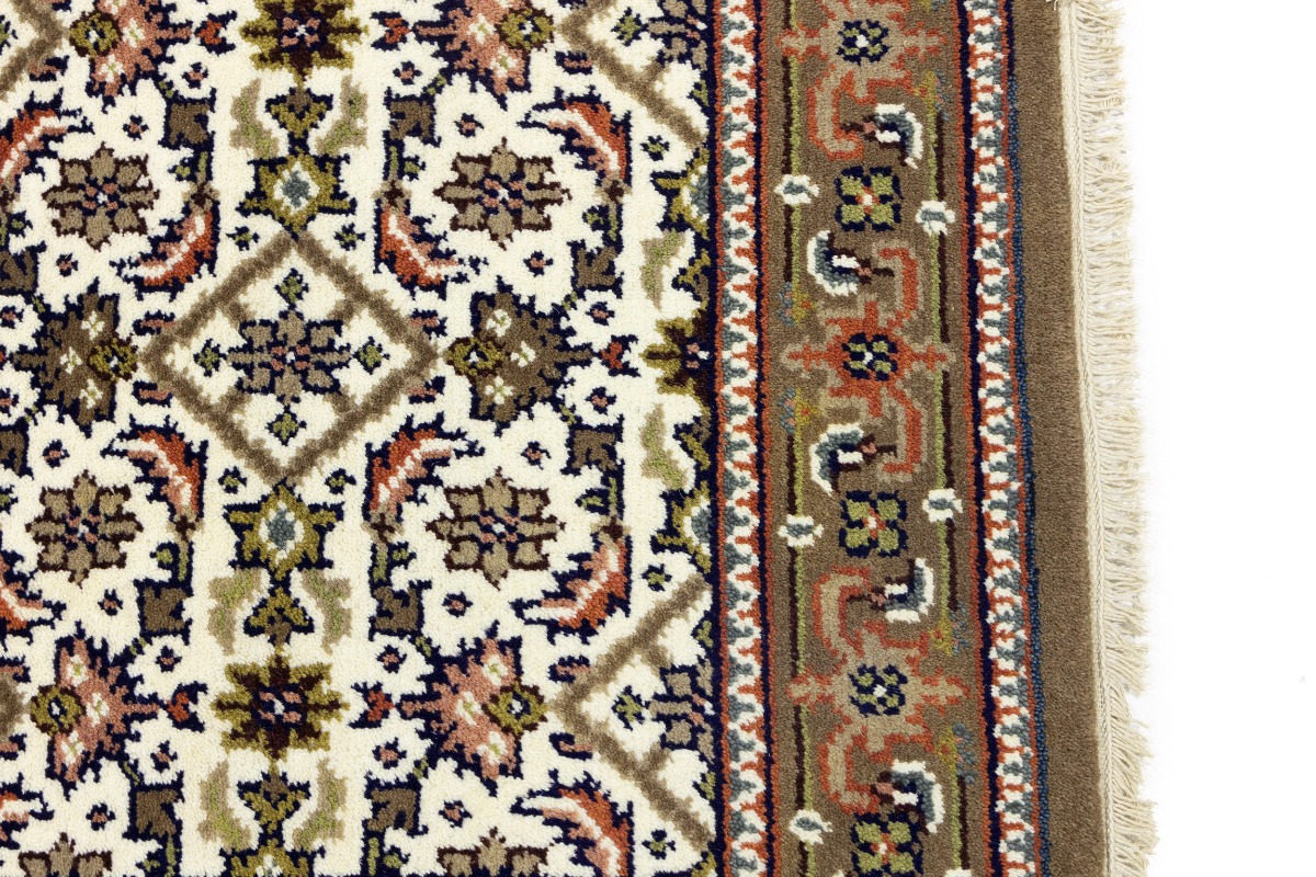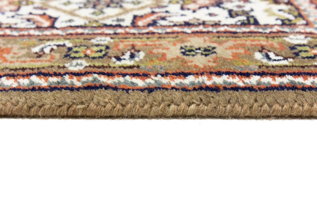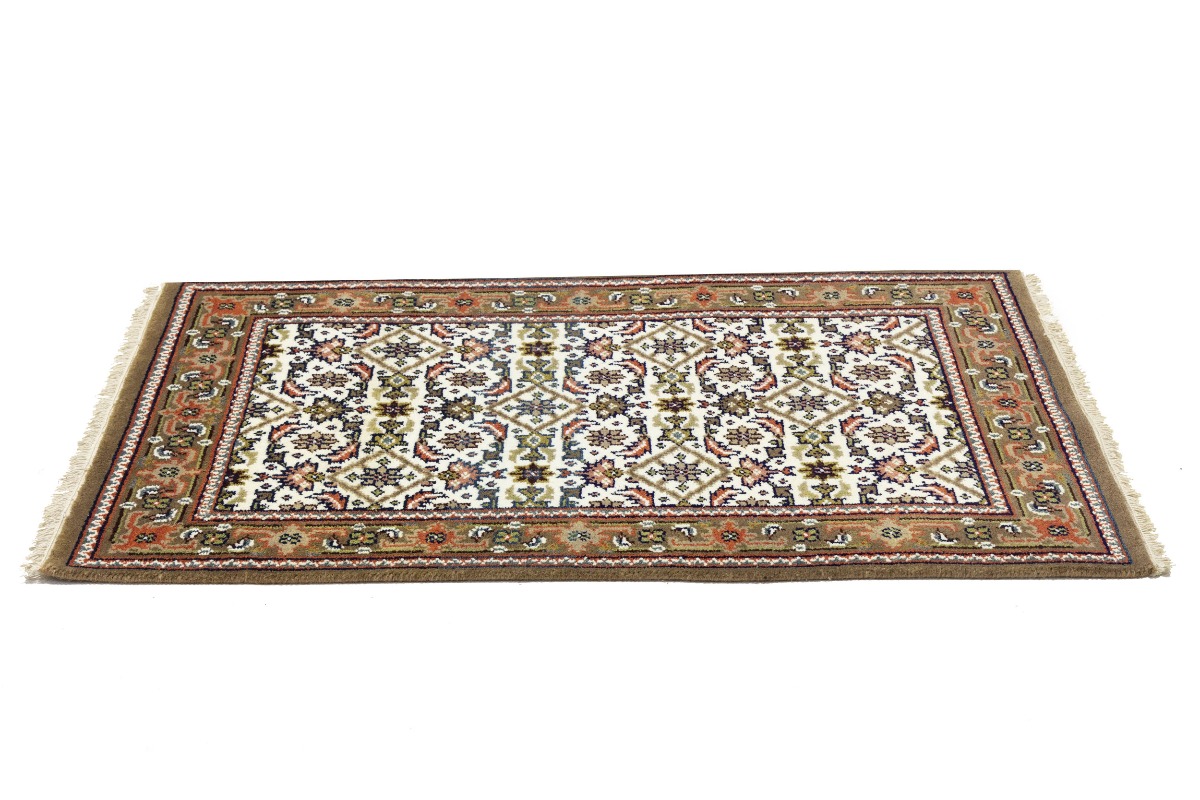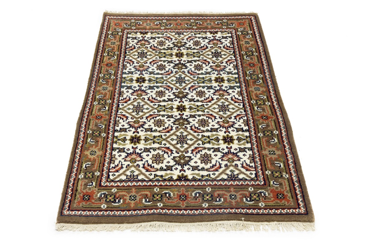 This genuine 3X5 cream new Oriental rug was made by the hands of gifted weavers inspired by a variety of spectacular artistic designs, to recreate the aged look of the original piece with a richness of color and ornately patterned background field. What set this vintage style Oriental area rug from the others are the material and dye used (wool pile and cotton foundation), knot count, ancient designs, fantastic grades, and its regional historical connection: it has deep roots, from the story of the people who produced it to the meaning of the symbols and colors displayed across its canvas that have been praised for centuries. This Indian home décor carpet will be completely cozy and inviting that never will go out of style! Also, this Oriental rug would be among your most valuable treasures, it is a great investment that accrues value over time, and it will last for generations because was woven with high-quality, all-natural wool. Environmentally friendly, opulent yet affordable; this rug will give you a thorough amount of character to help define your living space with elegance and warmth that will capture the eyes and attention of your audience (homeowners, designers, decorators, family and friends). OT-8583