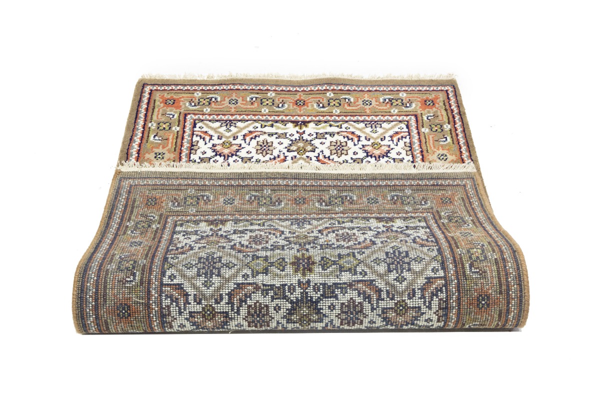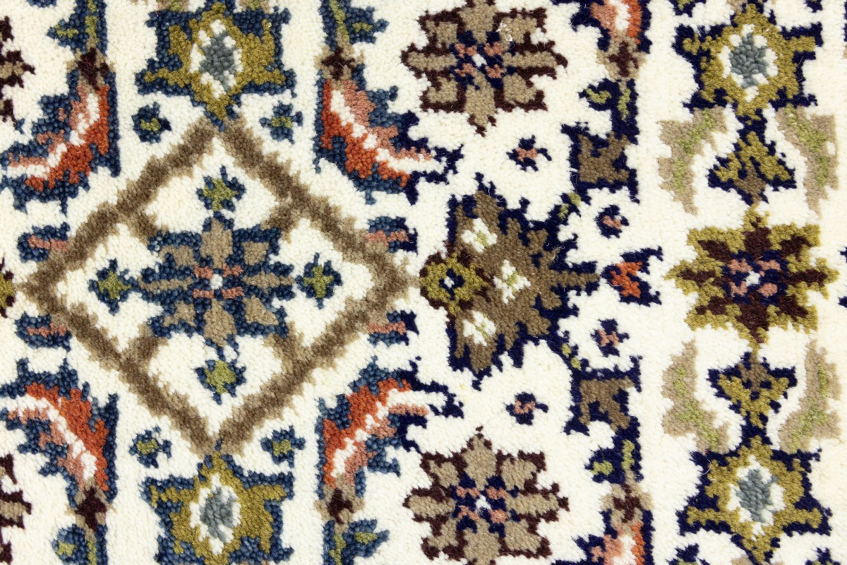 Handmade 3X5 cream oriental rug made with vegetable dyes (fine wool pile and cotton foundation), exceptional knot count, and appealing ancient designs. This Oriental rug never will go out of style and would be among your most valuable treasures.