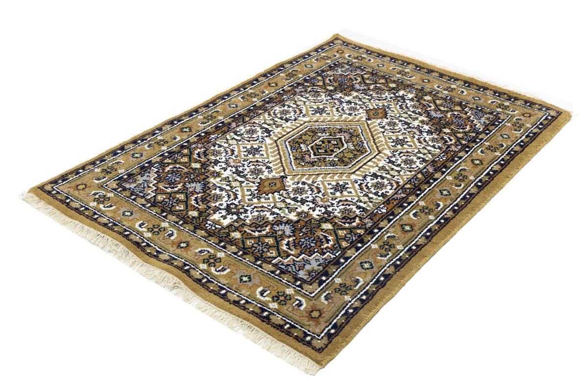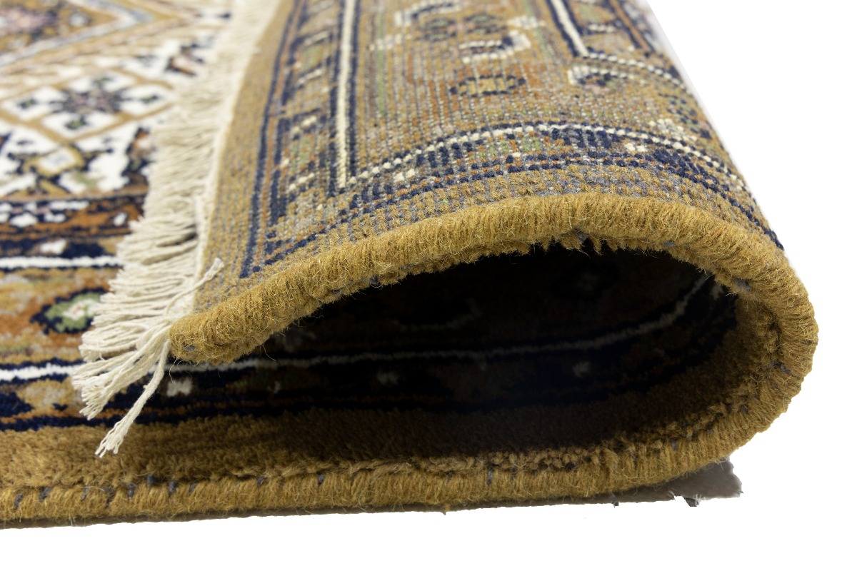 Handmade 4X6 cream oriental rug made with vegetable dyes (fine wool pile and cotton foundation), exceptional knot count, and appealing ancient designs. This Oriental rug never will go out of style and would be among your most valuable treasures.