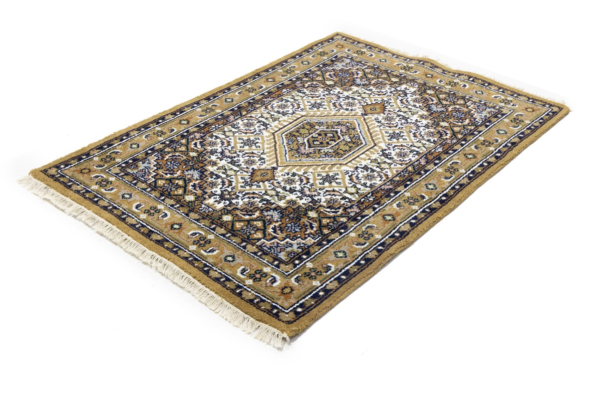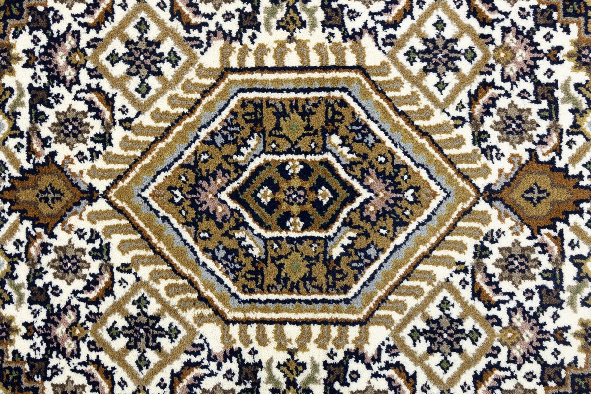 This genuine 4X6 cream new Oriental rug was made by the hands of gifted weavers inspired by a variety of spectacular artistic designs, to recreate the aged look of the original piece with a richness of color and ornately patterned background field. What set this vintage style Oriental area rug from the others are the material and dye used (wool pile and cotton foundation), knot count, ancient designs, fantastic grades, and its regional historical connection: it has deep roots, from the story of the people who produced it to the meaning of the symbols and colors displayed across its canvas that have been praised for centuries. This Indian home décor carpet will be completely cozy and inviting that never will go out of style! Also, this Oriental rug would be among your most valuable treasures, it is a great investment that accrues value over time, and it will last for generations because was woven with high-quality, all-natural wool. Environmentally friendly, opulent yet affordable; this rug will give you a thorough amount of character to help define your living space with elegance and warmth that will capture the eyes and attention of your audience (homeowners, designers, decorators, family and friends). OT-8661