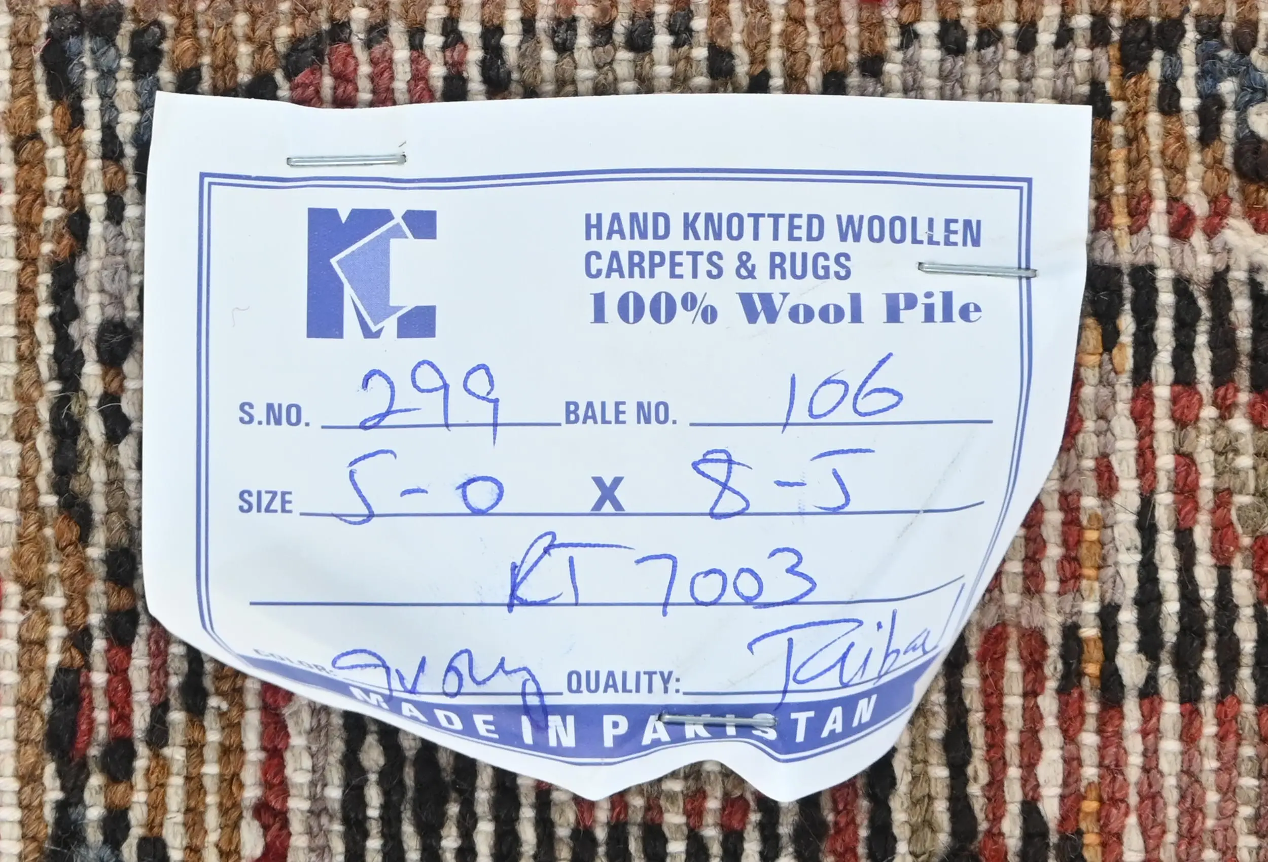 This original 5X8'5 Cream rug was crafted by the hands of skilled weavers enthused by a variety of lovely artistic designs, to recreate the aged look of the unique piece with a richness of color and beautifully elaborated background field. What set this tribal Oriental area rug from the others are the material and dye used (wool pile and cotton foundation), knot count, ancient designs, fantastic grades, and its regional historical connection: it has deep roots, from the story of the people who produced it to the meaning of the symbols and colors displayed across its canvas that have been praised for centuries. This home décor carpet will be completely cozy and inviting that never will go out of style! Also, this Oriental rug would be among your most valuable treasures, it is a great investment that increase in value over time, and it will last for generations because was woven with high-quality, all-natural wool; it won’t rip, tear, or shed. Environmentally friendly, opulent yet affordable; this Persian rug will give you a thorough amount of character to help define your living space with sophistication and warmth that will capture the eyes and attention of your audience (homeowners, designers, decorators, family and friends). RT-7003