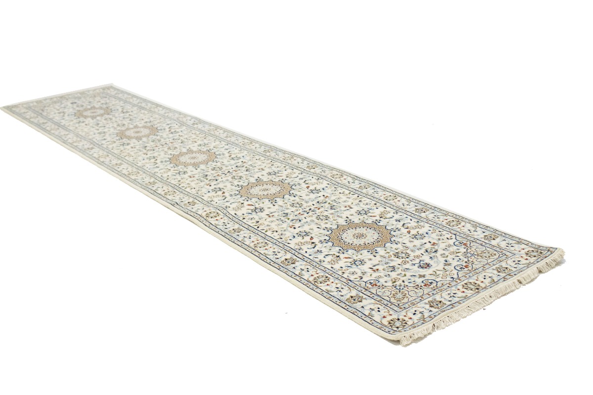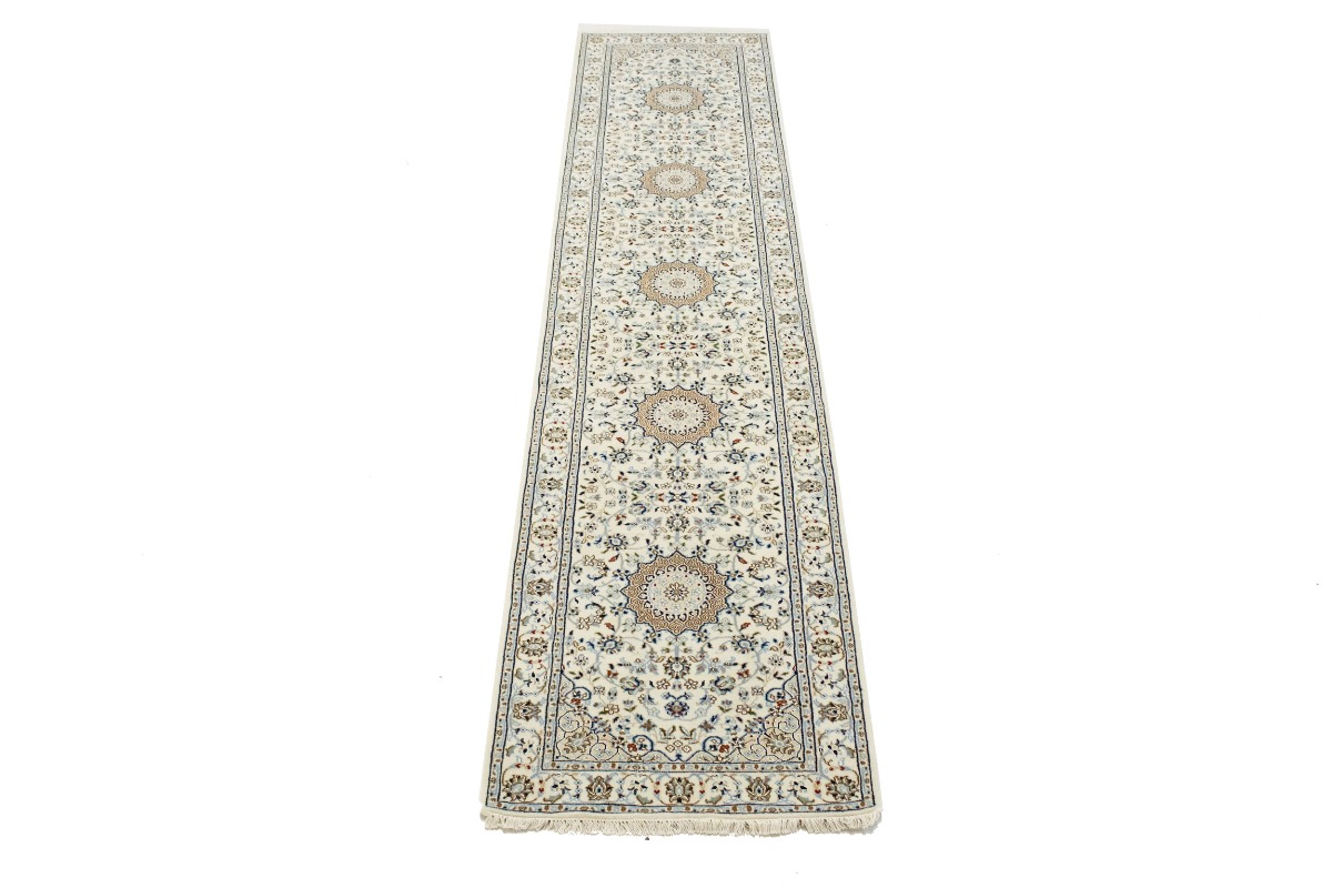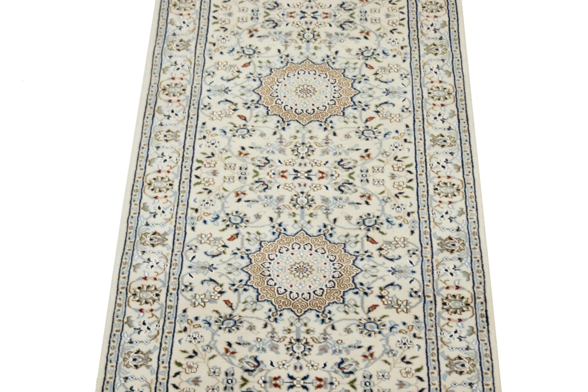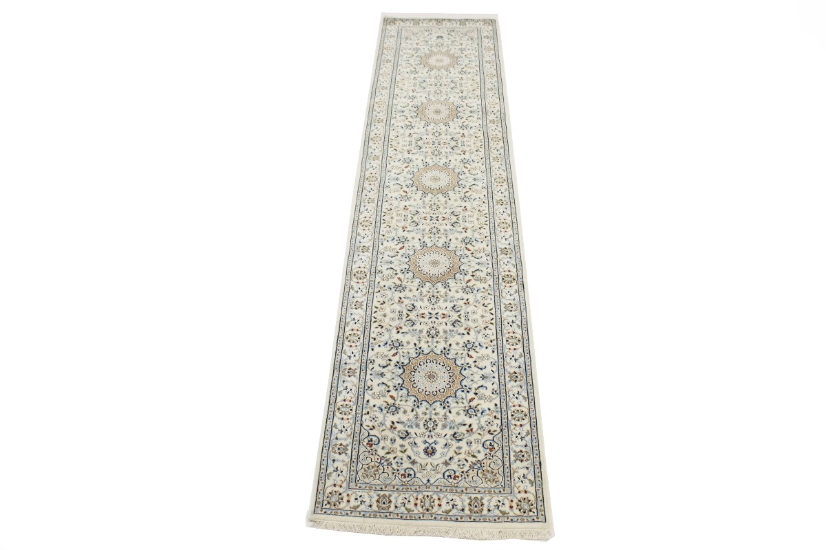 Cream Floral 2'9X12'6 Indo-Nain Oriental Runner Rug