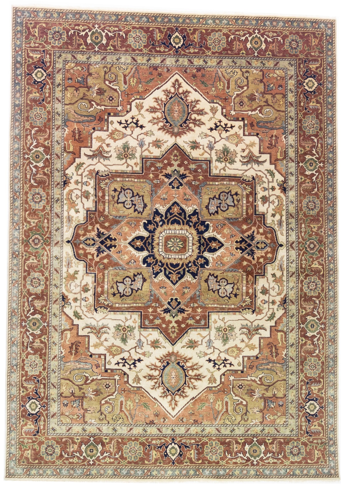Handmade 10X14 cream Oriental rug made with vegetable dyes (fine wool pile and cotton foundation), exceptional knot count, and appealing ancient designs. This Oriental rug never will go out of style and would be among your most valuable treasures.