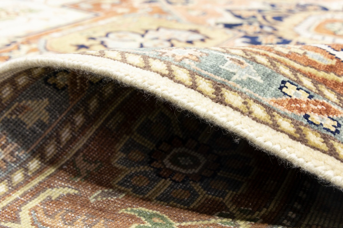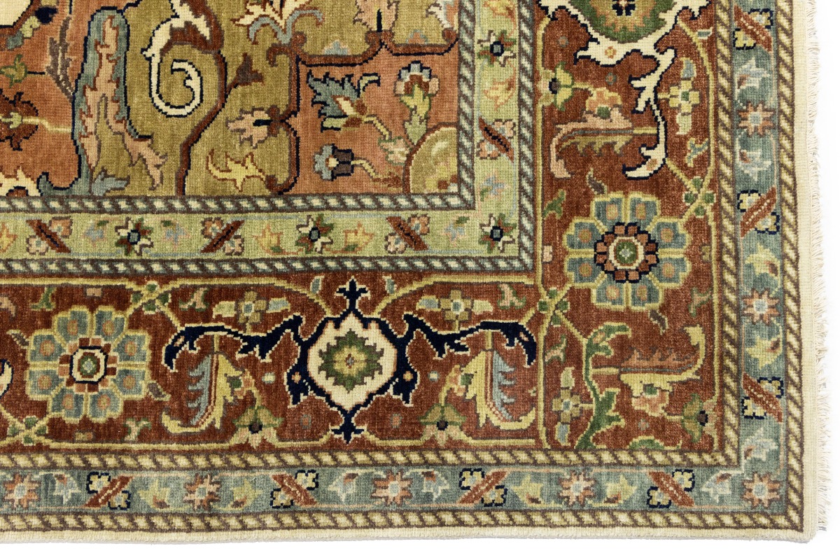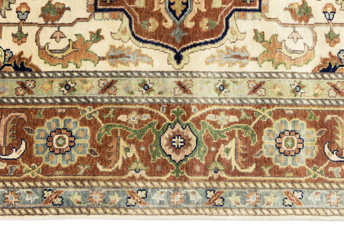 This genuine 10X14 cream new Oriental rug was well-constructed by the hands of master weavers motivated by a variety of stunning artistic designs, to recreate the aged look of the exceptional piece with a richness of color and developed decorative background field. What set this vintage style Oriental area rug from the others are the material and dye used (wool pile and cotton foundation), knot count, ancient designs, fantastic grades, and its regional historical connection: it has deep roots, from the story of the people who produced it to the meaning of the symbols and colors displayed across its canvas that have been praised for centuries. This Indian home décor carpet will be completely cozy and inviting that never will go out of style! Also, this Oriental rug would be among your most valuable treasures, it is a great investment that increase in value over time, and it will last a lifetime because was woven with high-quality, all-natural wool. Eco-friendly, opulent yet affordable; this rug give you an extra pop of character to help define your home environment with elegance and warmth that will capture the eyes and attention of your audience (homeowners, designers, decorators, family and friends). OT-8225