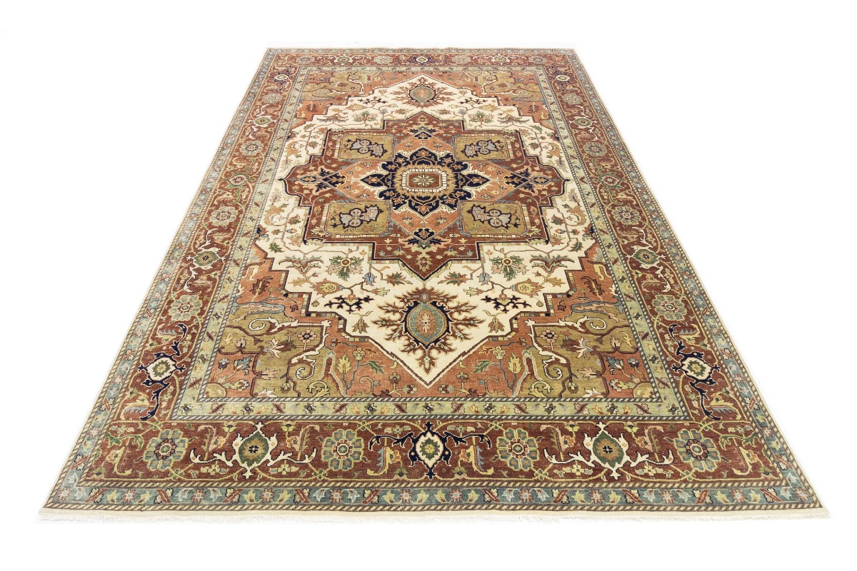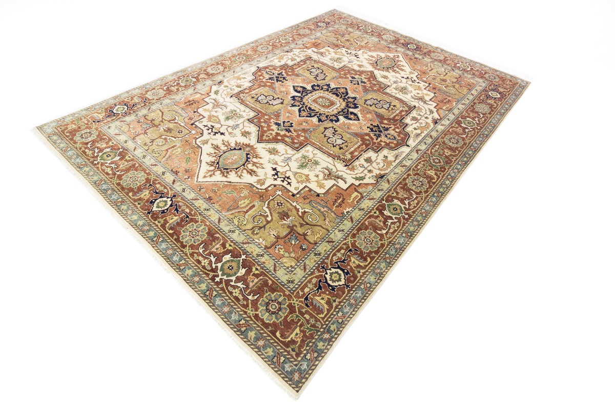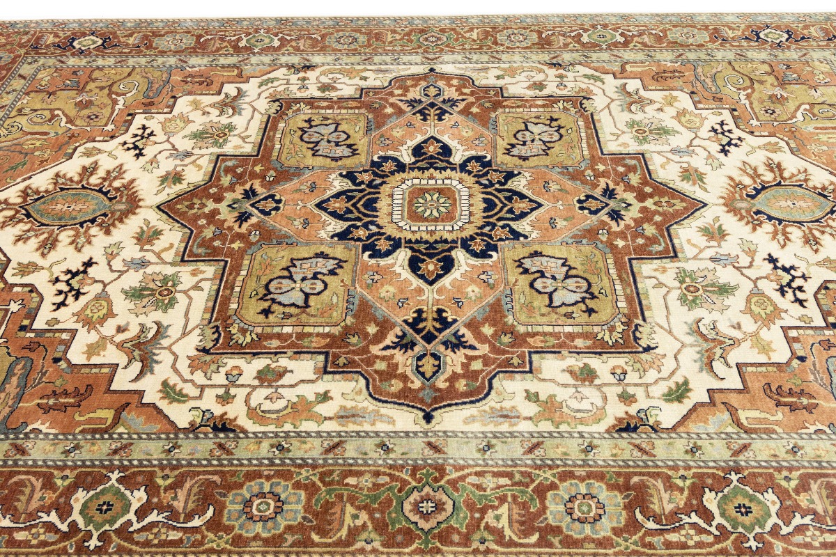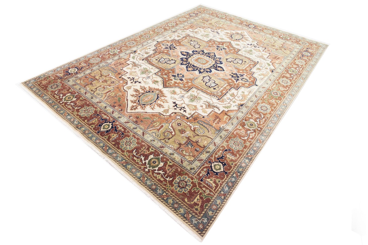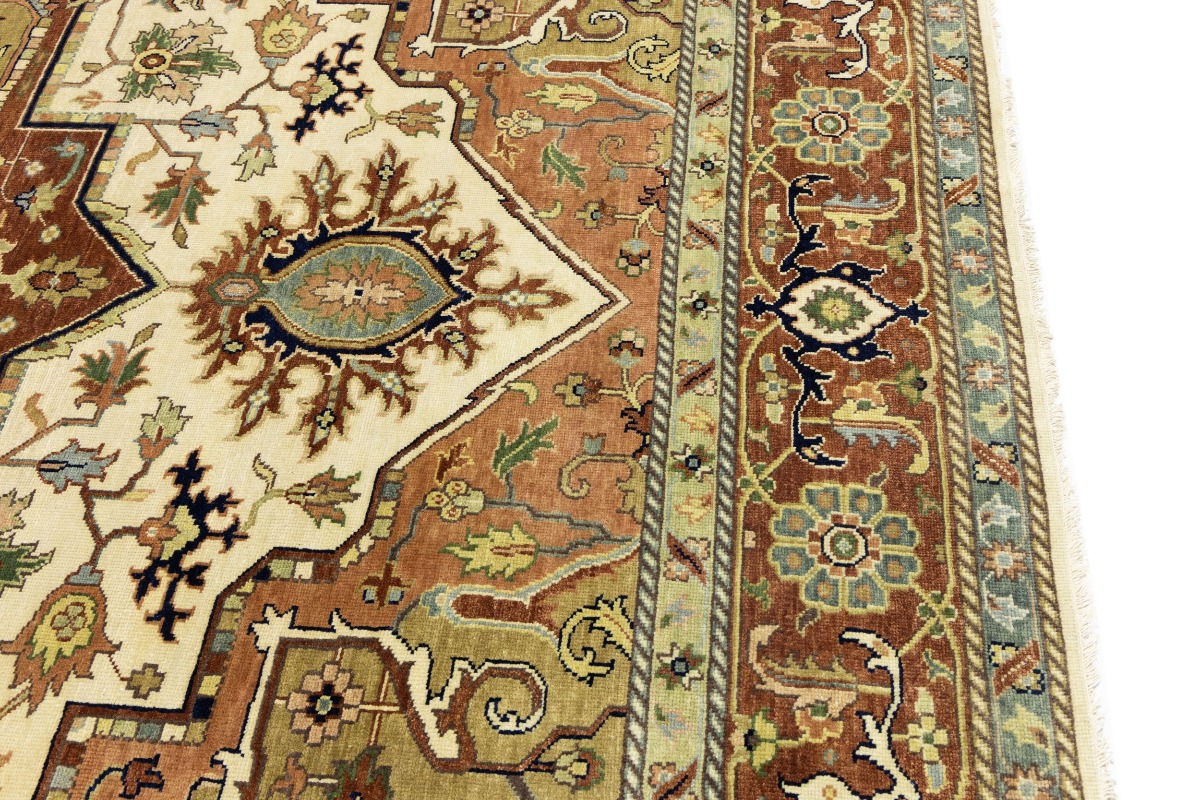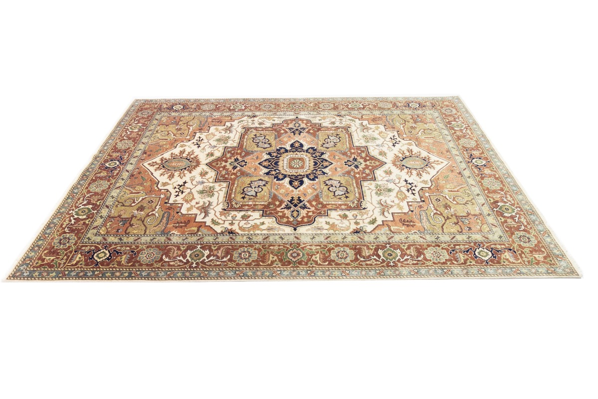 Cream Geometric 10X14 Heriz Serapi Oriental Rug