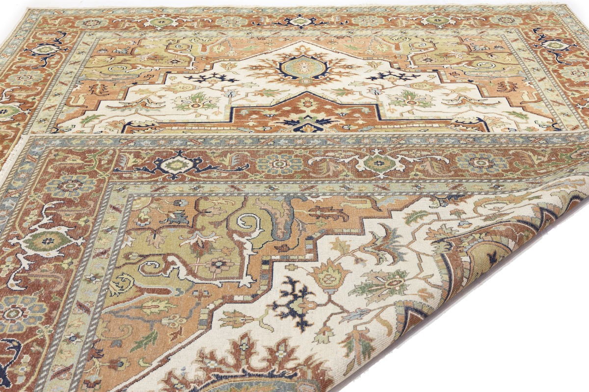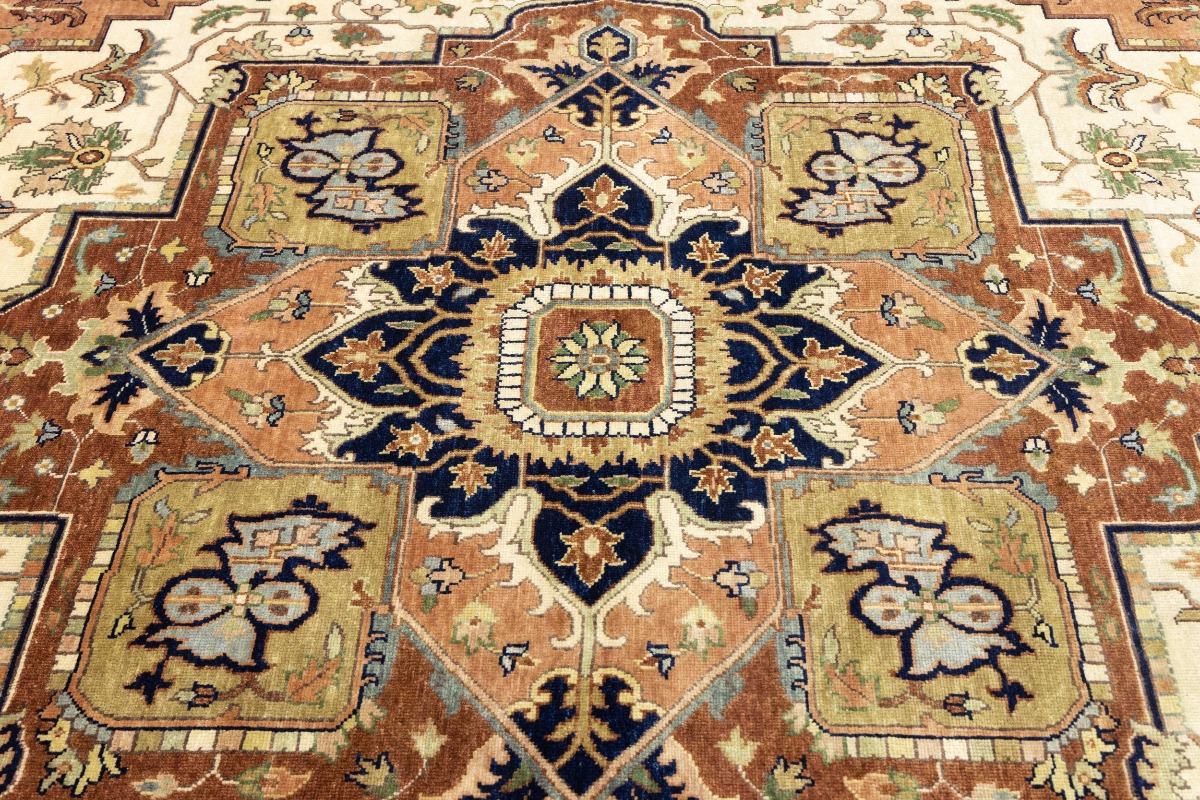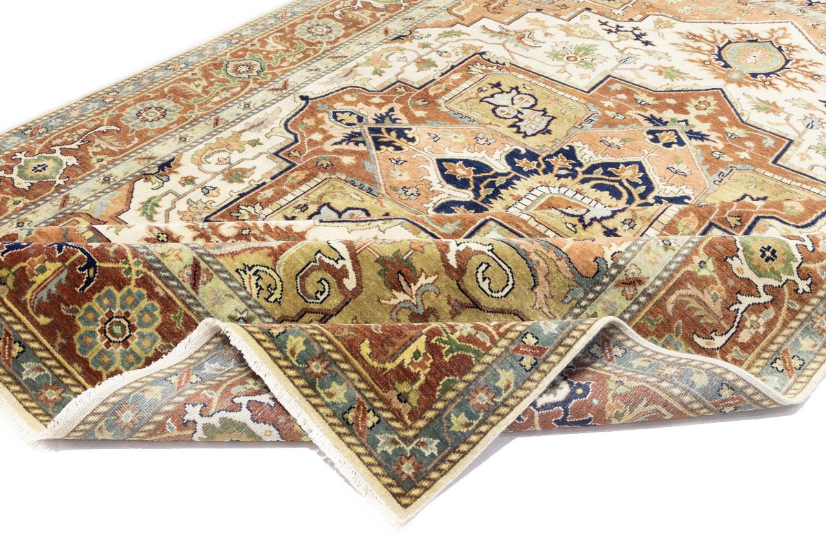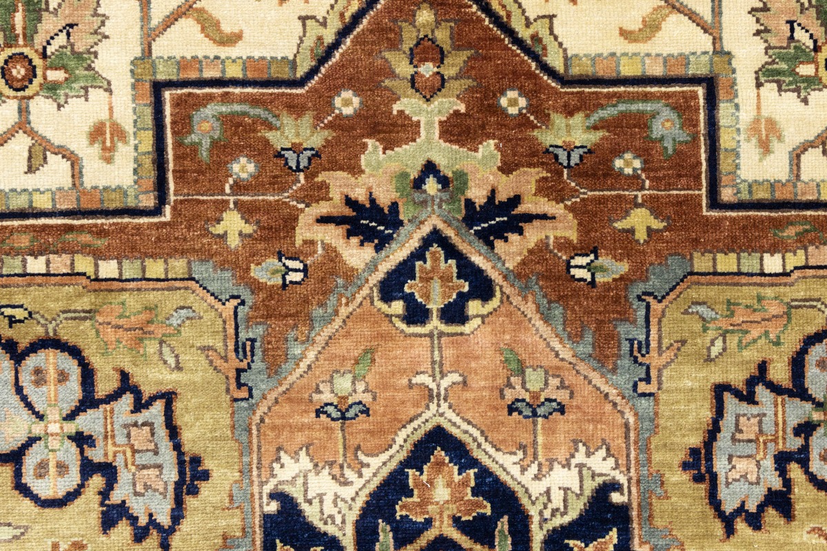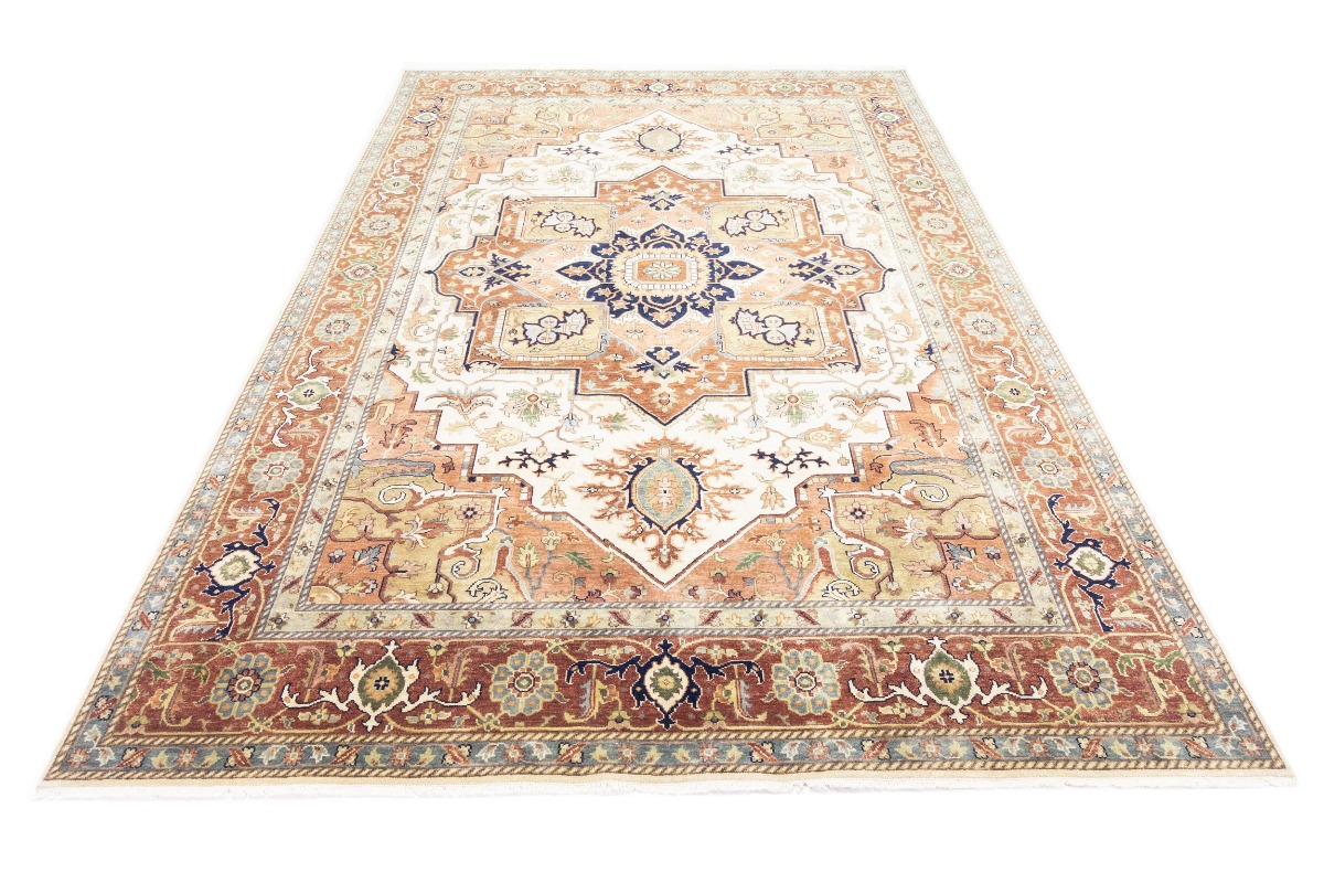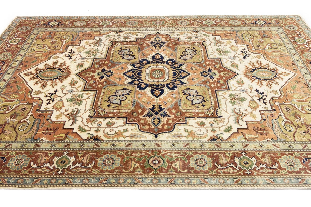 Cream Geometric 10X14 Heriz Serapi Oriental Rug