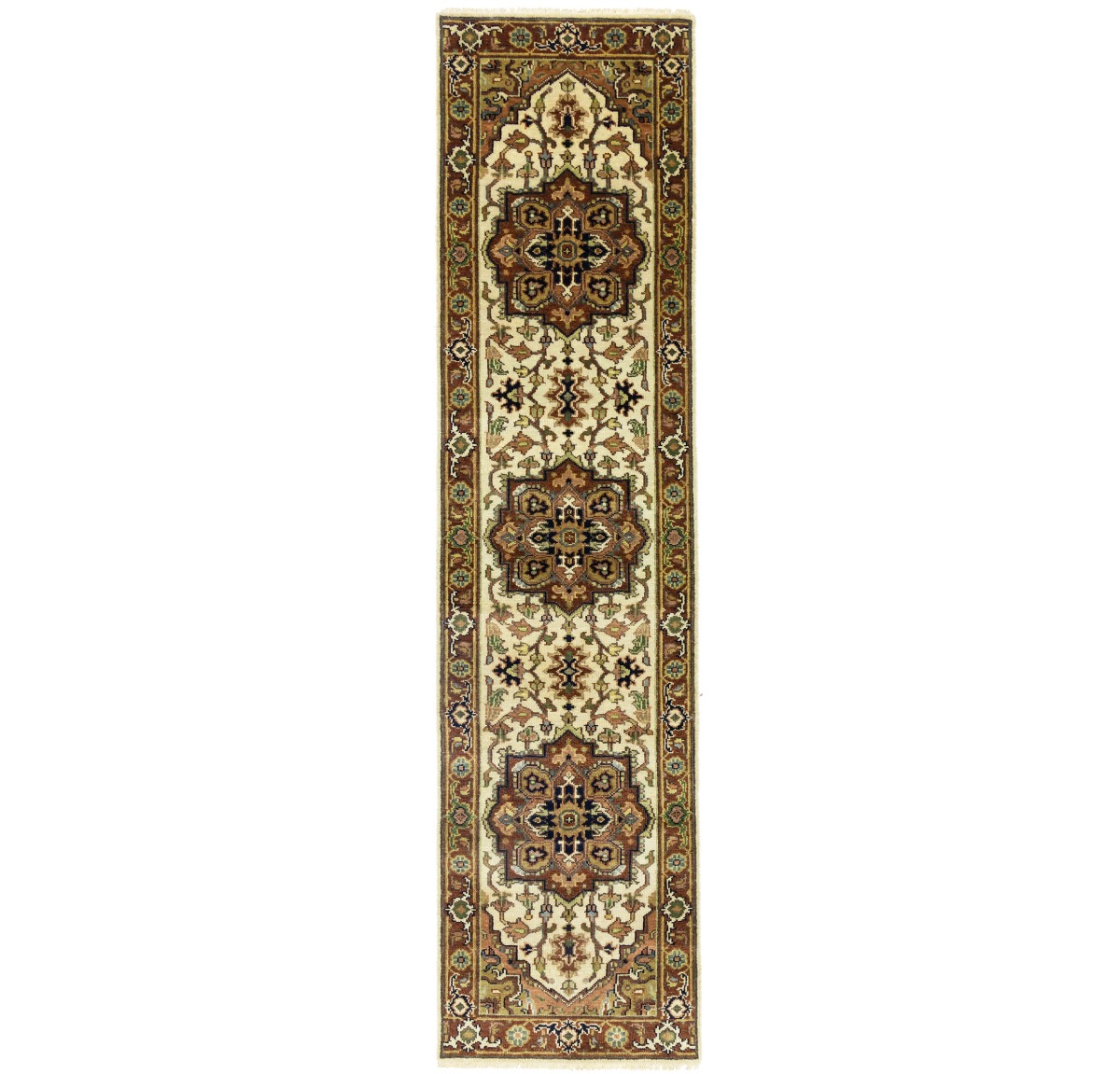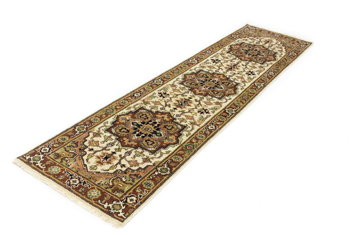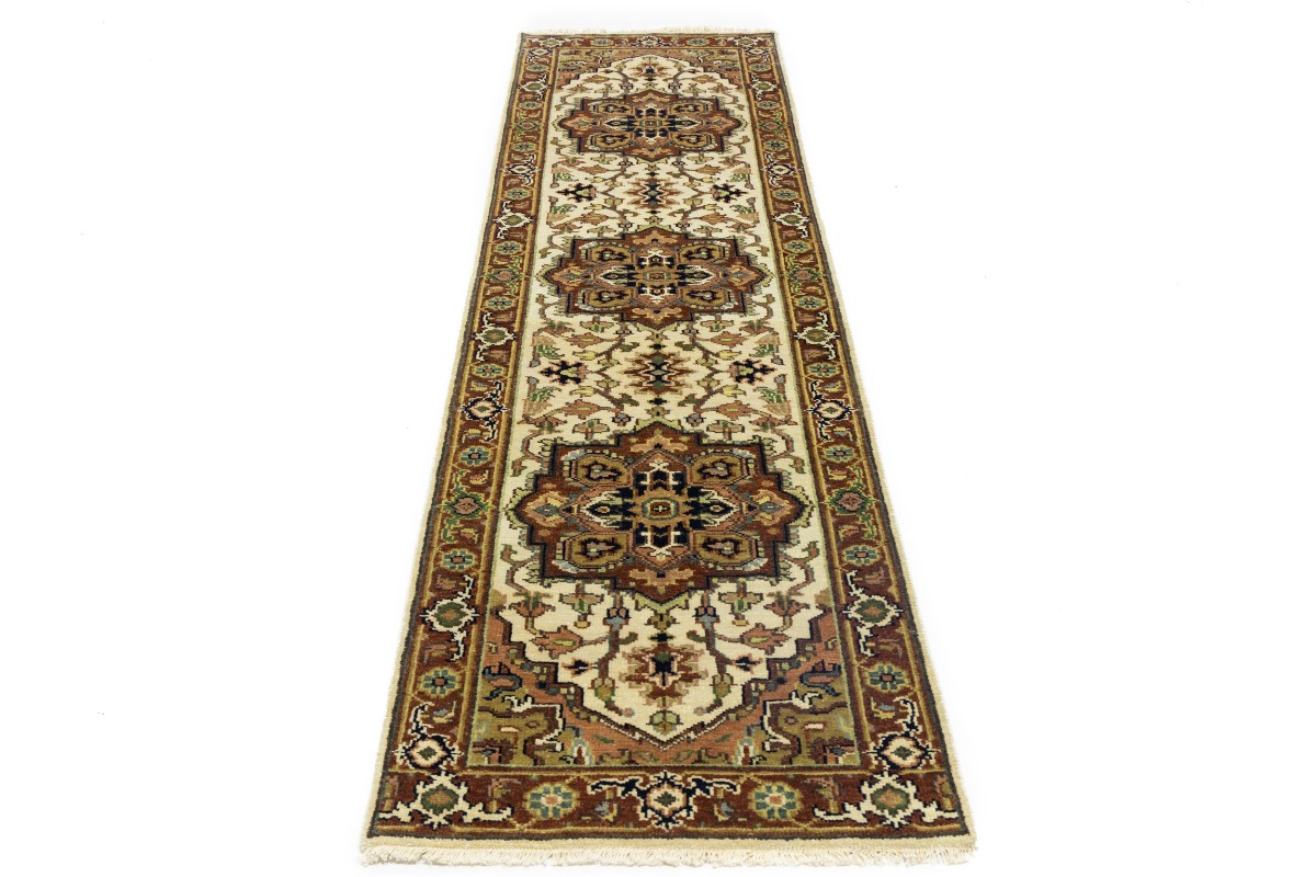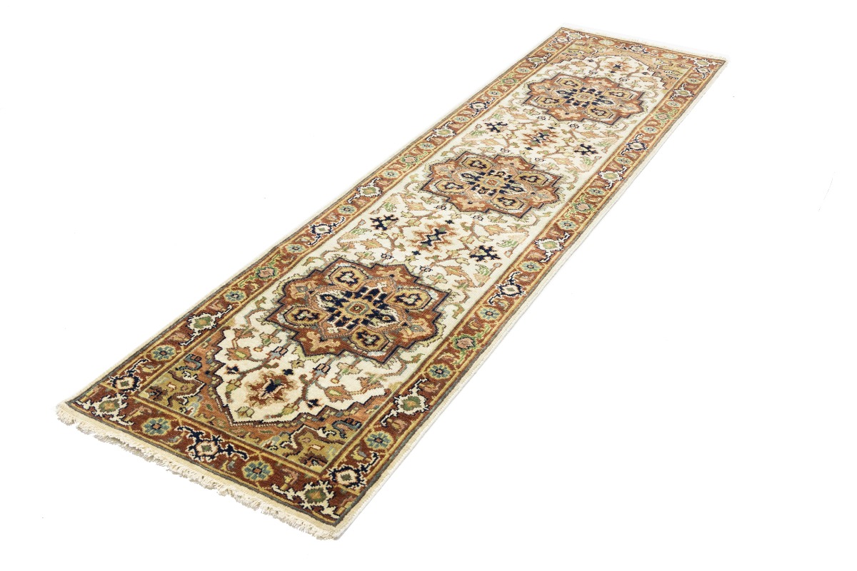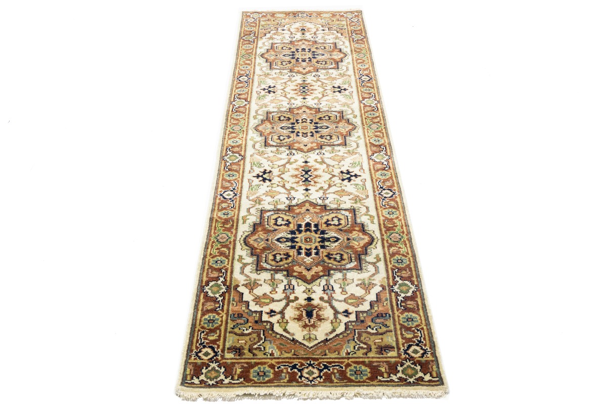 Hand Knotted 3X10 cream oriental runner made with vegetable dyes (fine wool pile and cotton foundation), superior knot count, and appealing ancient designs. This Oriental runner never will go out of style and would be among your most valuable treasures.