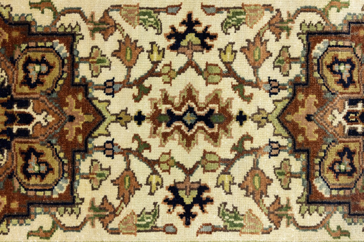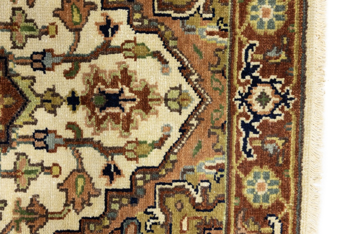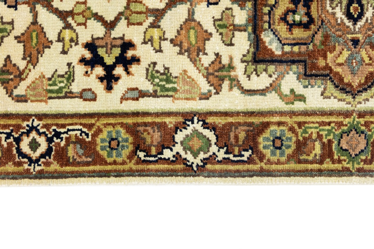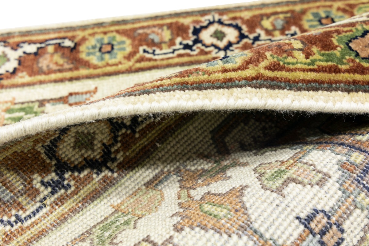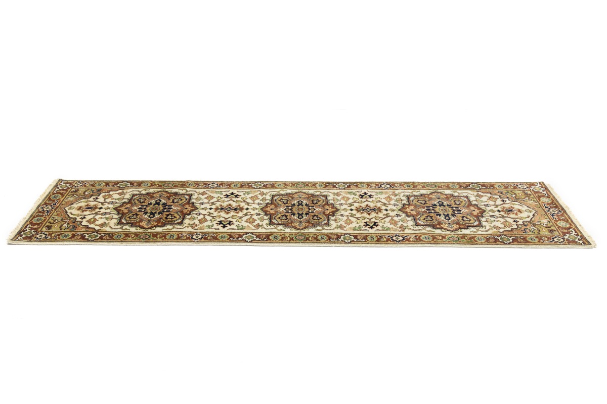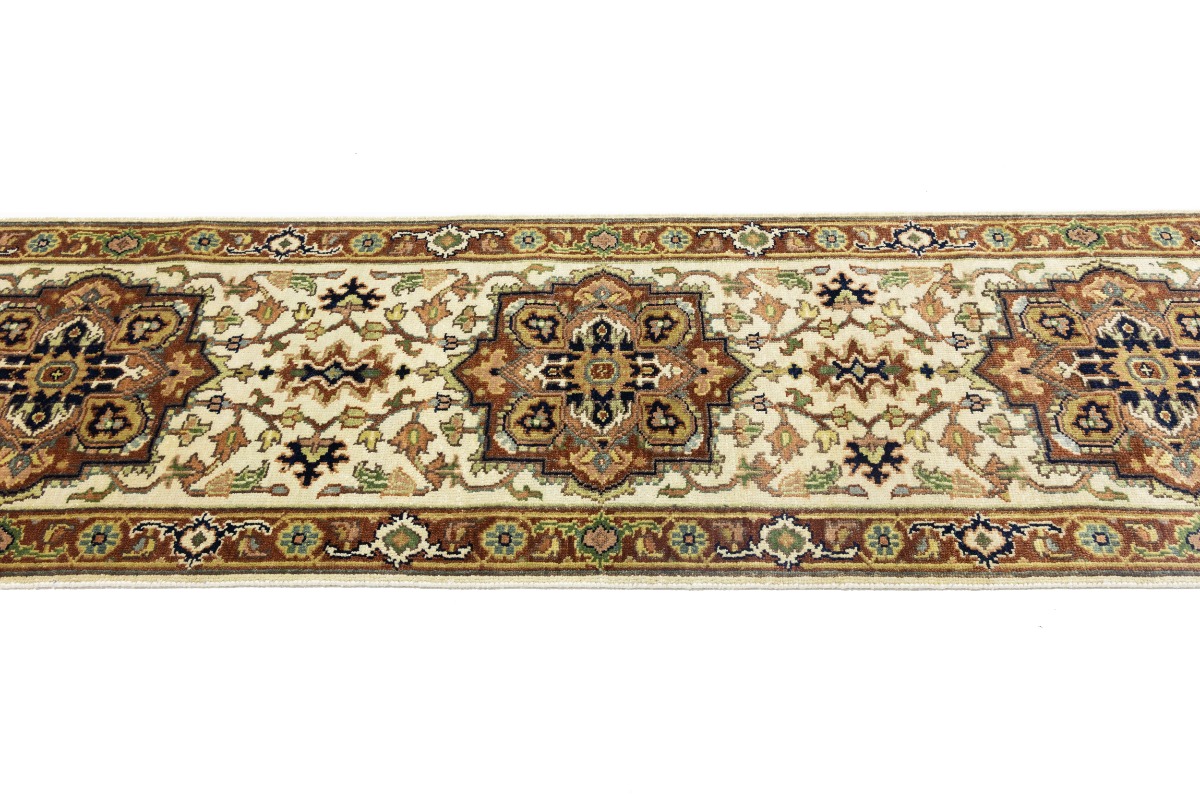 This authentic 3X10 cream new Oriental runner was crafted by the hands of skilled weavers enthused by a variety of lovely artistic designs, to recreate the aged look of the unique piece with a richness of color and beautifully elaborated background field. What set this vintage style Oriental area runner from the others are the material and dye used (wool pile and cotton foundation), knot count, ancient designs, fantastic grades, and its regional historical connection: it has deep roots, from the story of the people who produced it to the meaning of the symbols and colors displayed across its canvas that have been praised for centuries. This Indian home décor carpet will be completely cozy and inviting that never will go out of style! Also, this Oriental rug would be among your most valuable treasures, it is a great investment that increase in value over time, and it will last for generations because was woven with high-quality, all-natural wool. Environmentally friendly, opulent yet affordable; this runner will give you a thorough amount of character to help define your living space with sophistication and warmth that will capture the eyes and attention of your audience (homeowners, designers, decorators, family and friends). OT-8229