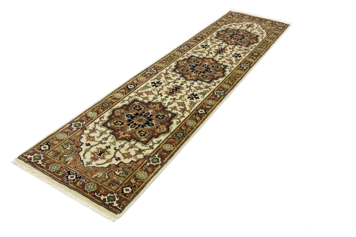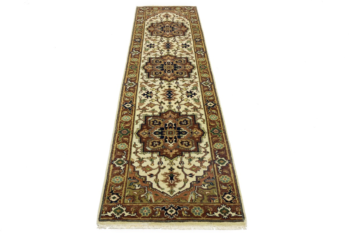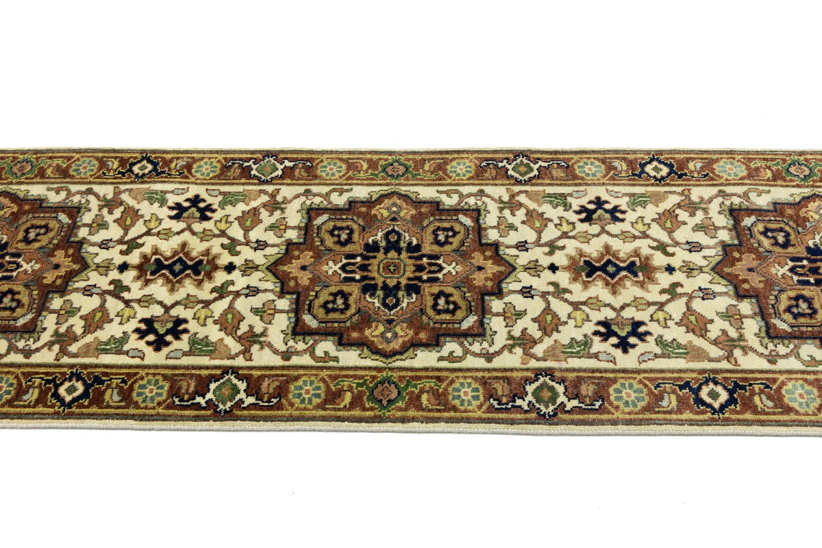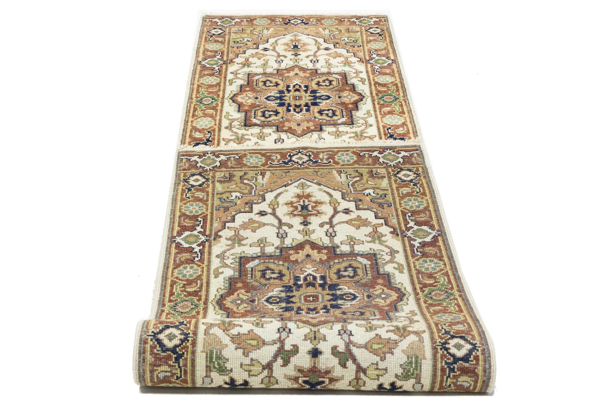 Cream Geometric 3X10 Heriz Serapi Oriental Runner Rug