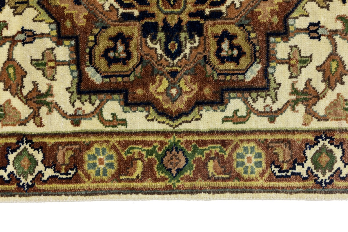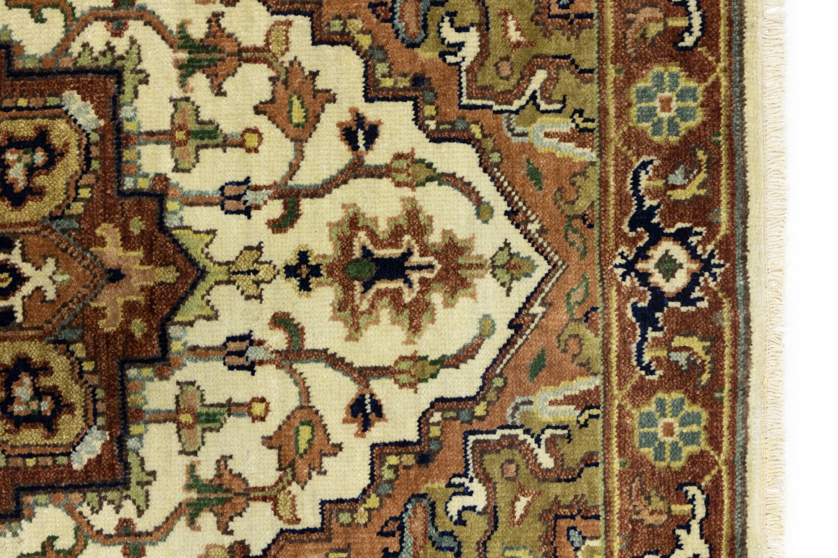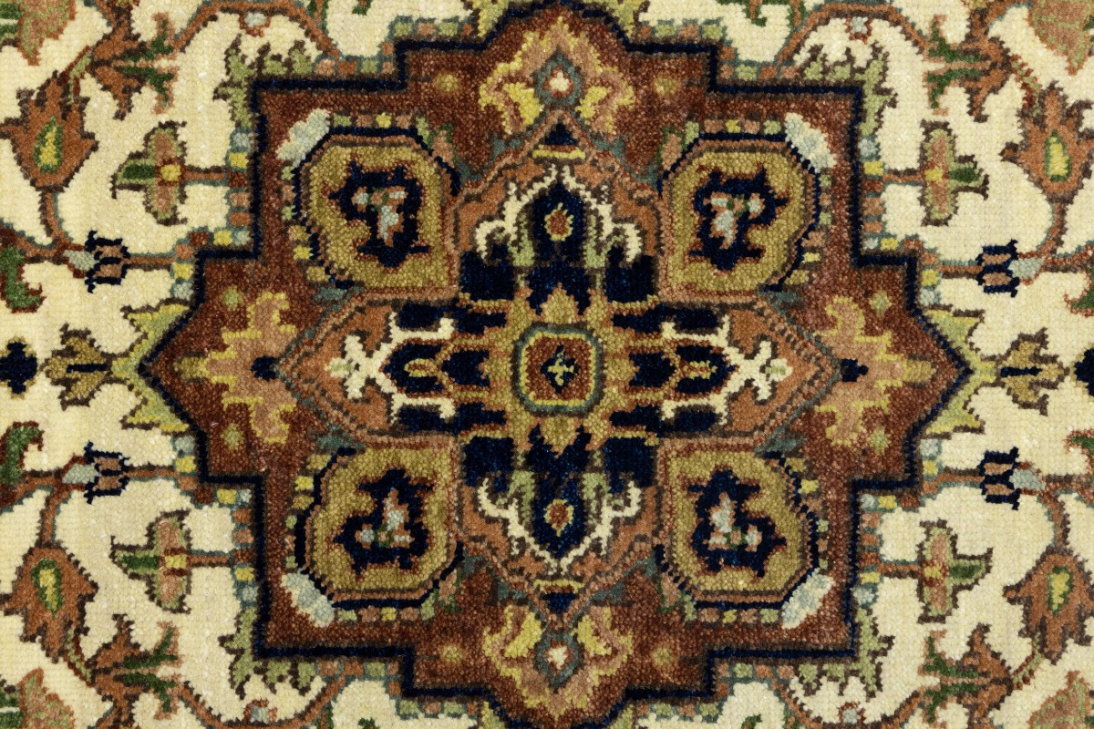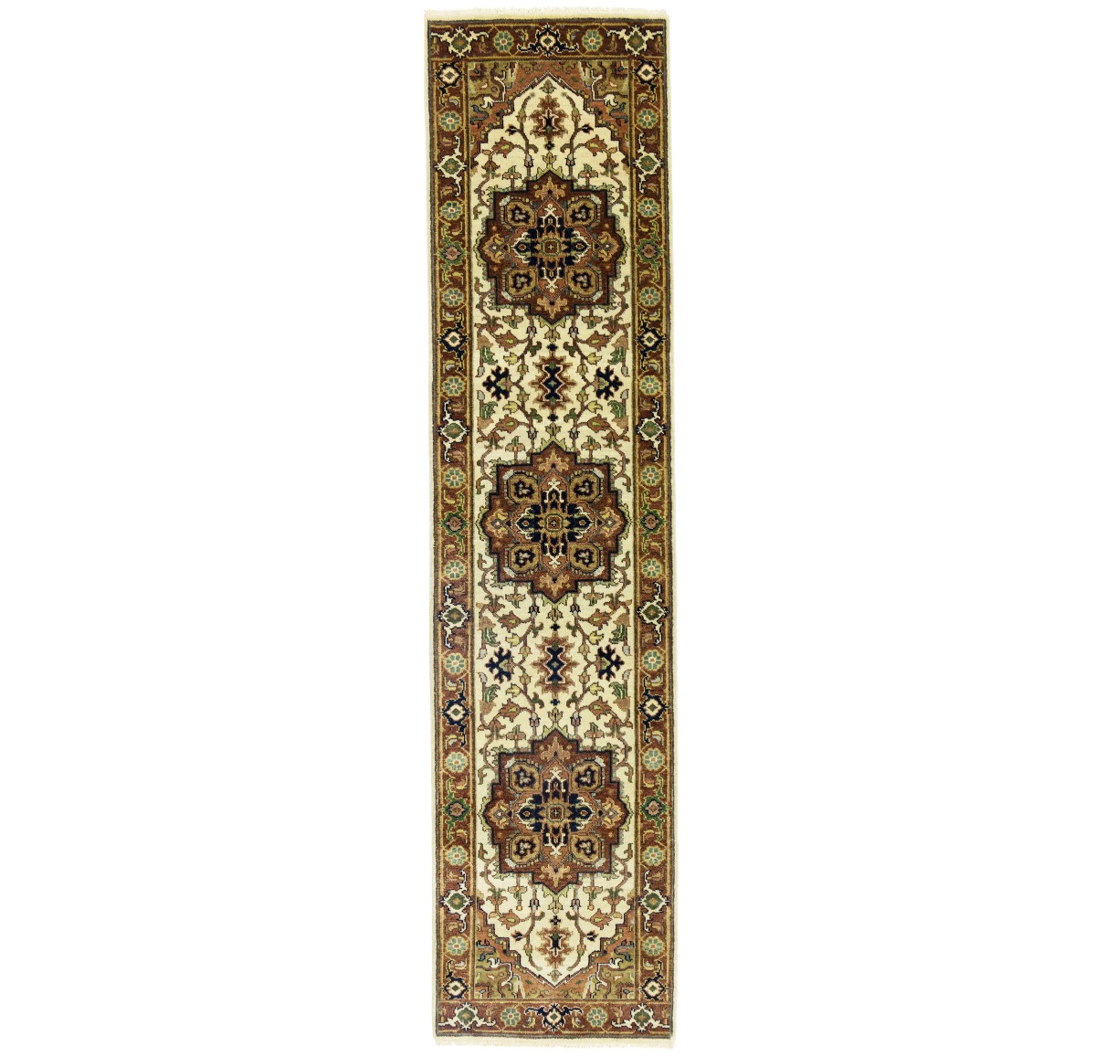 Cream Geometric 3X10 Heriz Serapi Oriental Runner Rug