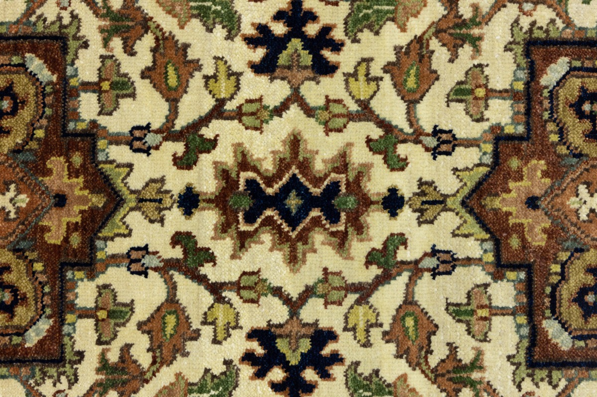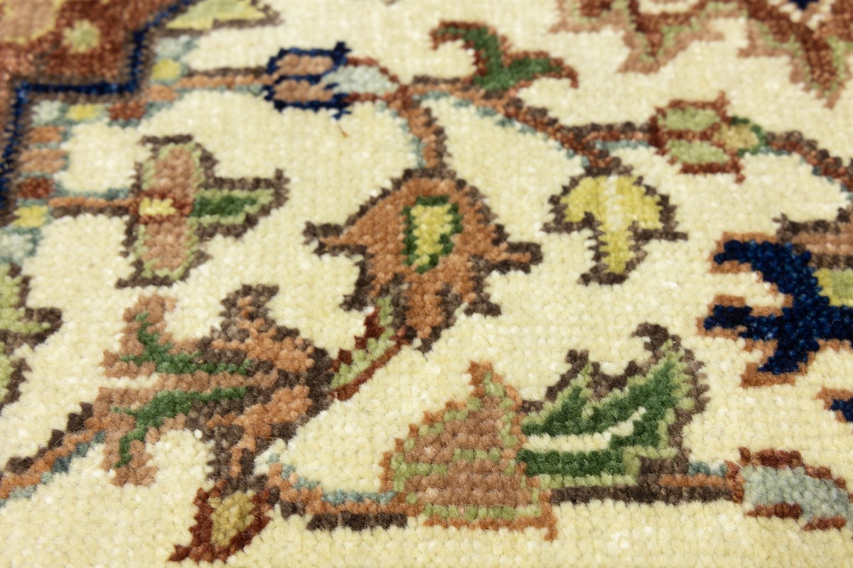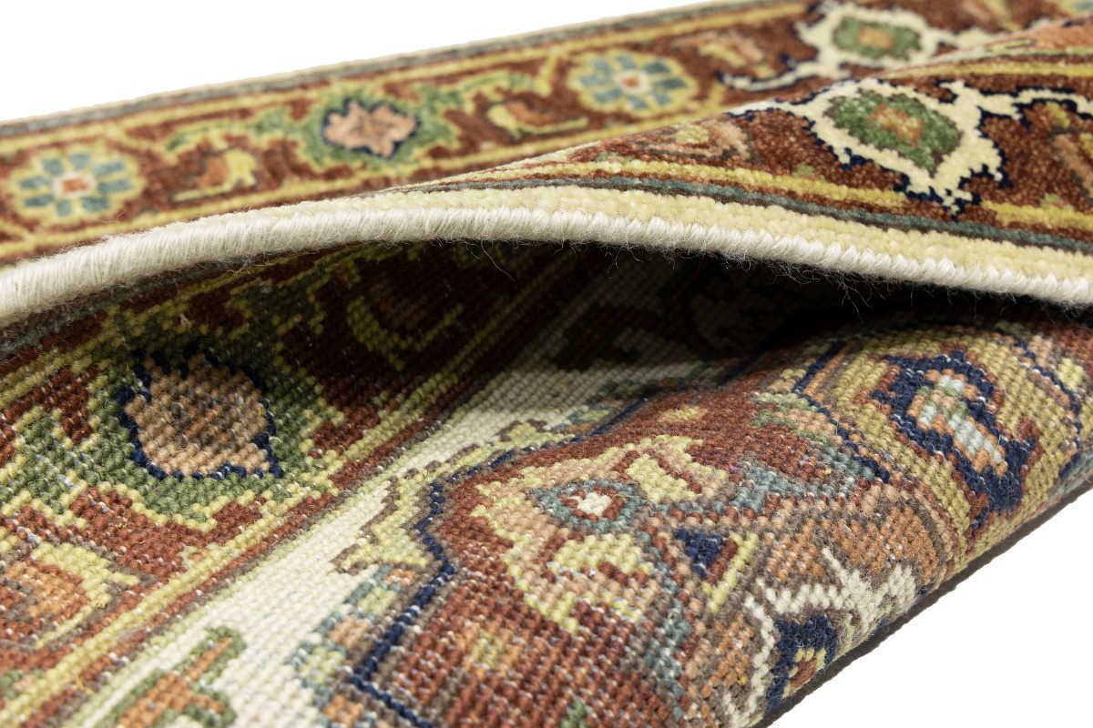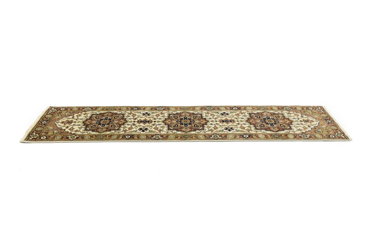 This authentic 3X10 cream new Oriental runner was crafted by the hands of skilled weavers enthused by a variety of lovely artistic designs, to recreate the aged look of the unique piece with a richness of color and beautifully elaborated background field. What set this vintage style Oriental area runner from the others are the material and dye used (wool pile and cotton foundation), knot count, ancient designs, fantastic grades, and its regional historical connection: it has deep roots, from the story of the people who produced it to the meaning of the symbols and colors displayed across its canvas that have been praised for centuries. This Indian home décor carpet will be completely cozy and inviting that never will go out of style! Also, this Oriental rug would be among your most valuable treasures, it is a great investment that increase in value over time, and it will last for generations because was woven with high-quality, all-natural wool. Environmentally friendly, opulent yet affordable; this runner will give you a thorough amount of character to help define your living space with sophistication and warmth that will capture the eyes and attention of your audience (homeowners, designers, decorators, family and friends). OT-8230