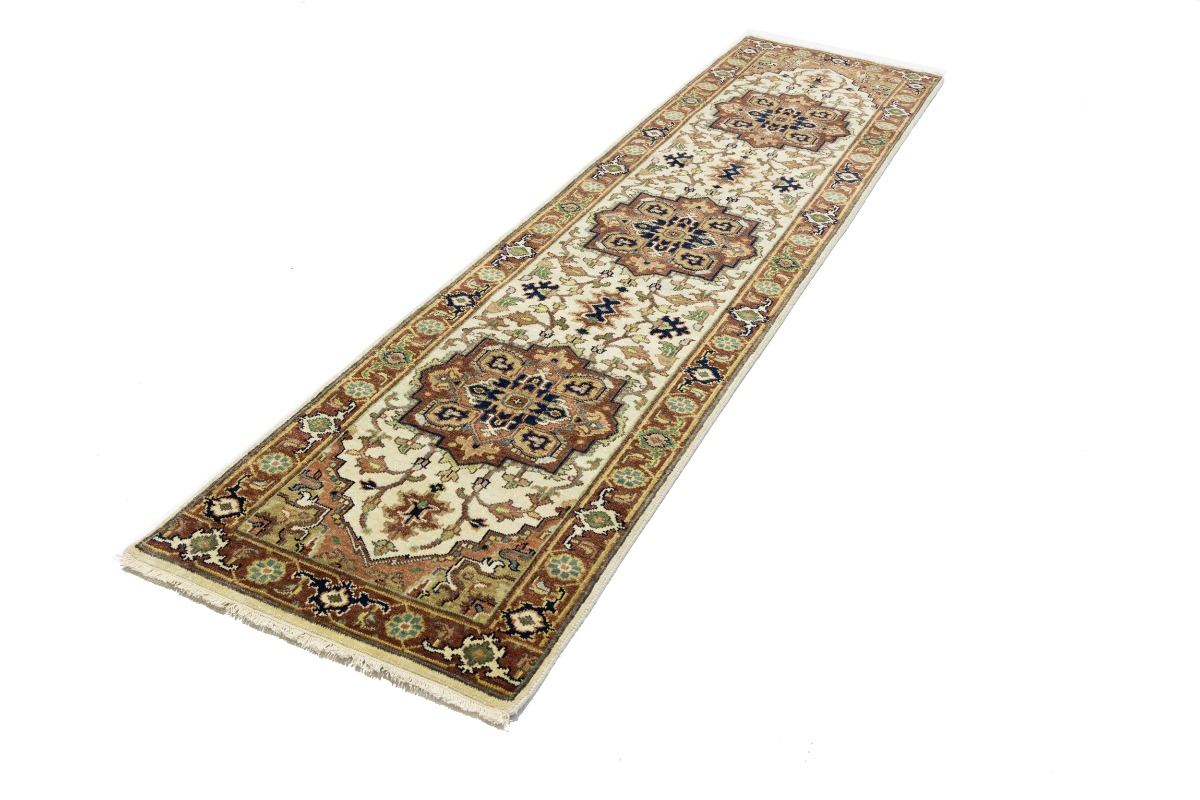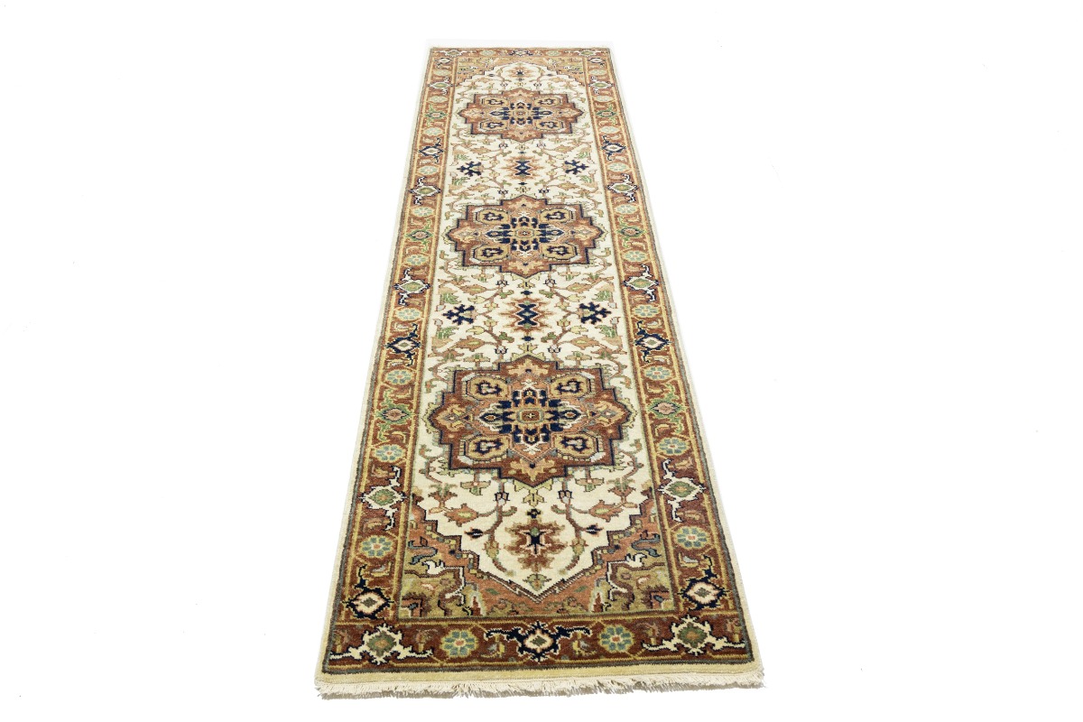Hand Knotted 3X10 cream oriental runner made with vegetable dyes (fine wool pile and cotton foundation), superior knot count, and appealing ancient designs. This Oriental runner never will go out of style and would be among your most valuable treasures.