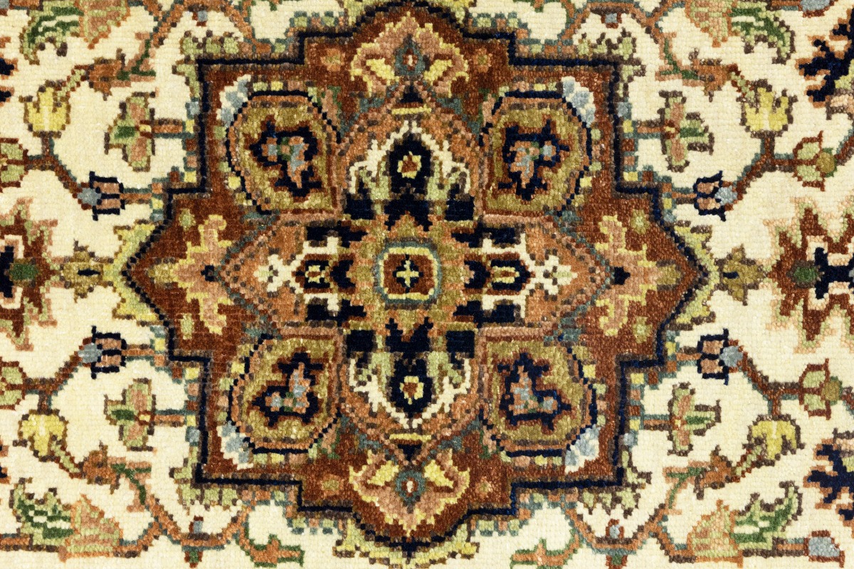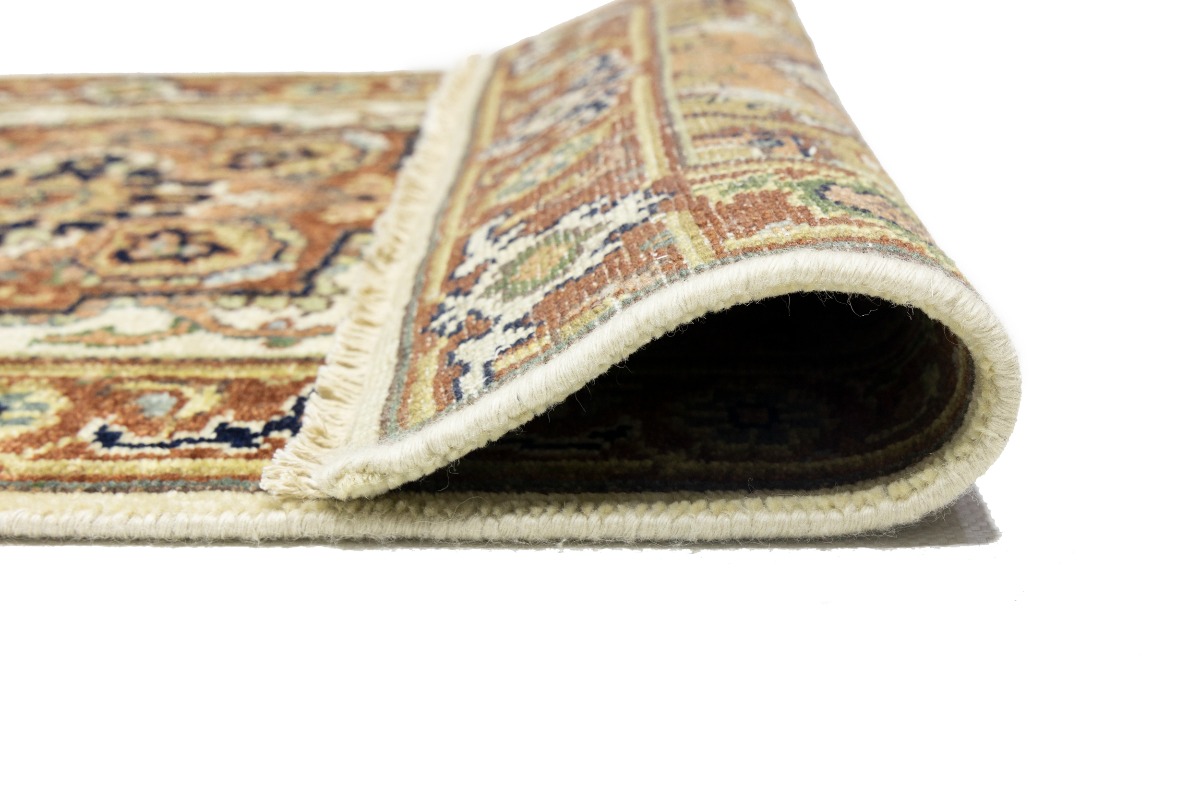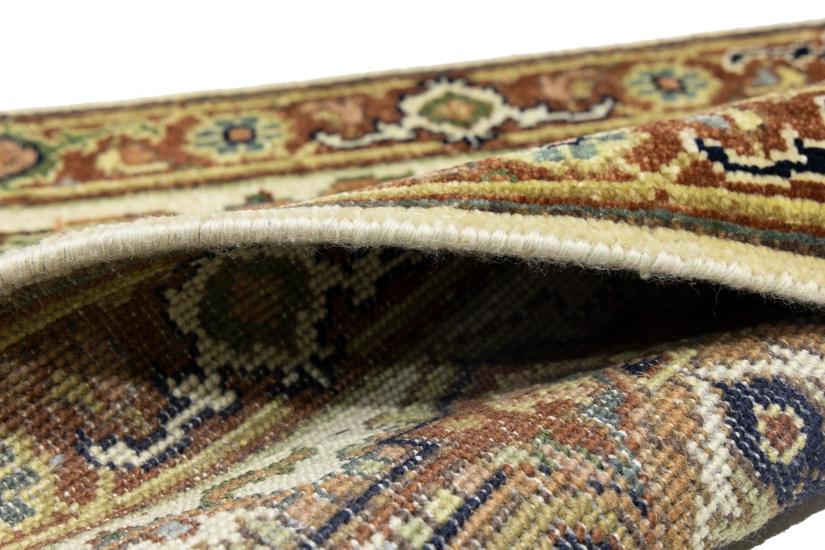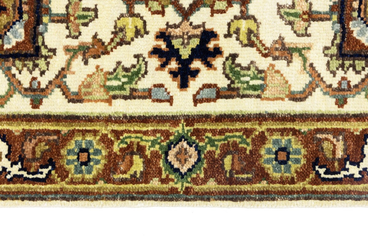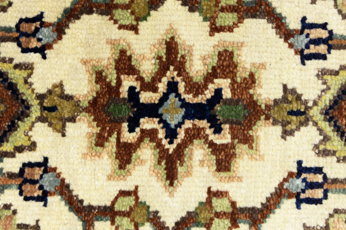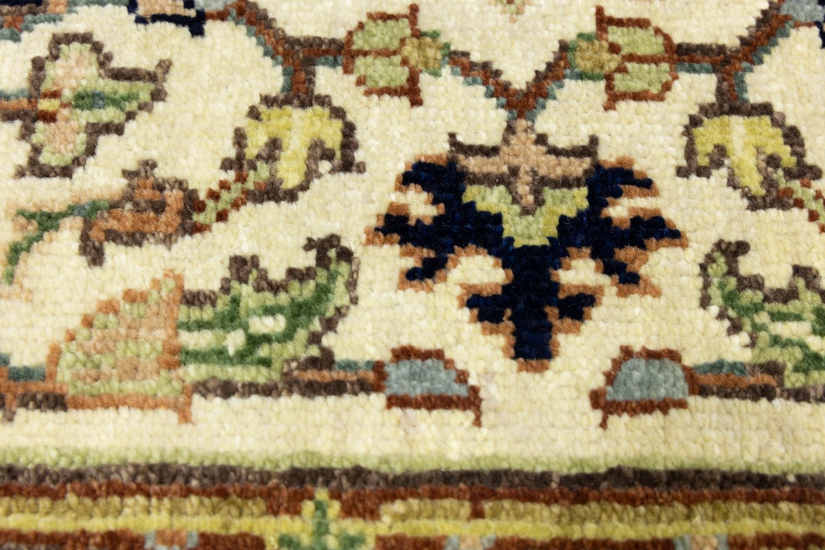 This authentic 3X12 cream new Oriental runner was crafted by the hands of skilled weavers enthused by a variety of lovely artistic designs, to recreate the aged look of the unique piece with a richness of color and beautifully elaborated background field. What set this vintage style Oriental area runner from the others are the material and dye used (wool pile and cotton foundation), knot count, ancient designs, fantastic grades, and its regional historical connection: it has deep roots, from the story of the people who produced it to the meaning of the symbols and colors displayed across its canvas that have been praised for centuries. This Indian home décor carpet will be completely cozy and inviting that never will go out of style! Also, this Oriental rug would be among your most valuable treasures, it is a great investment that increase in value over time, and it will last for generations because was woven with high-quality, all-natural wool. Environmentally friendly, opulent yet affordable; this runner will give you a thorough amount of character to help define your living space with sophistication and warmth that will capture the eyes and attention of your audience (homeowners, designers, decorators, family and friends). OT-8231