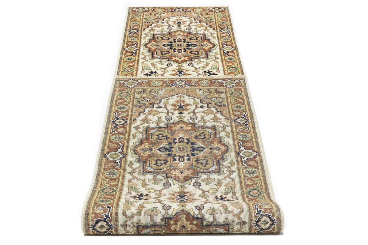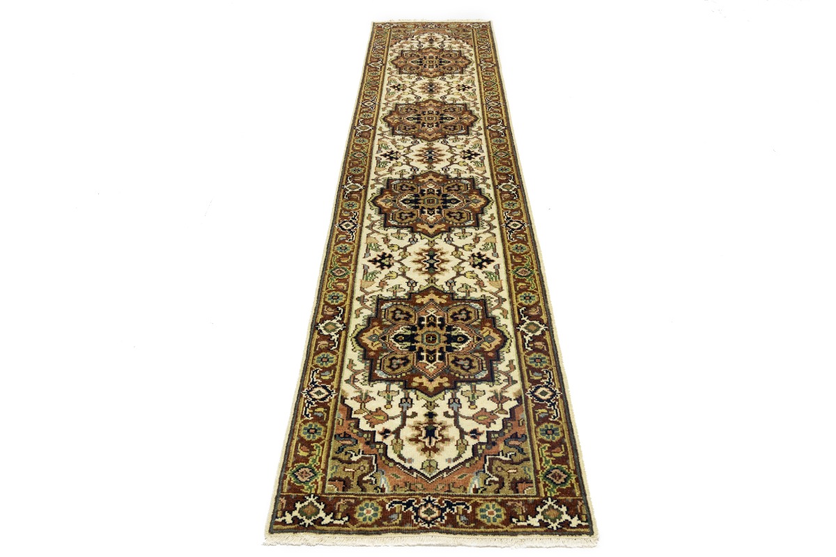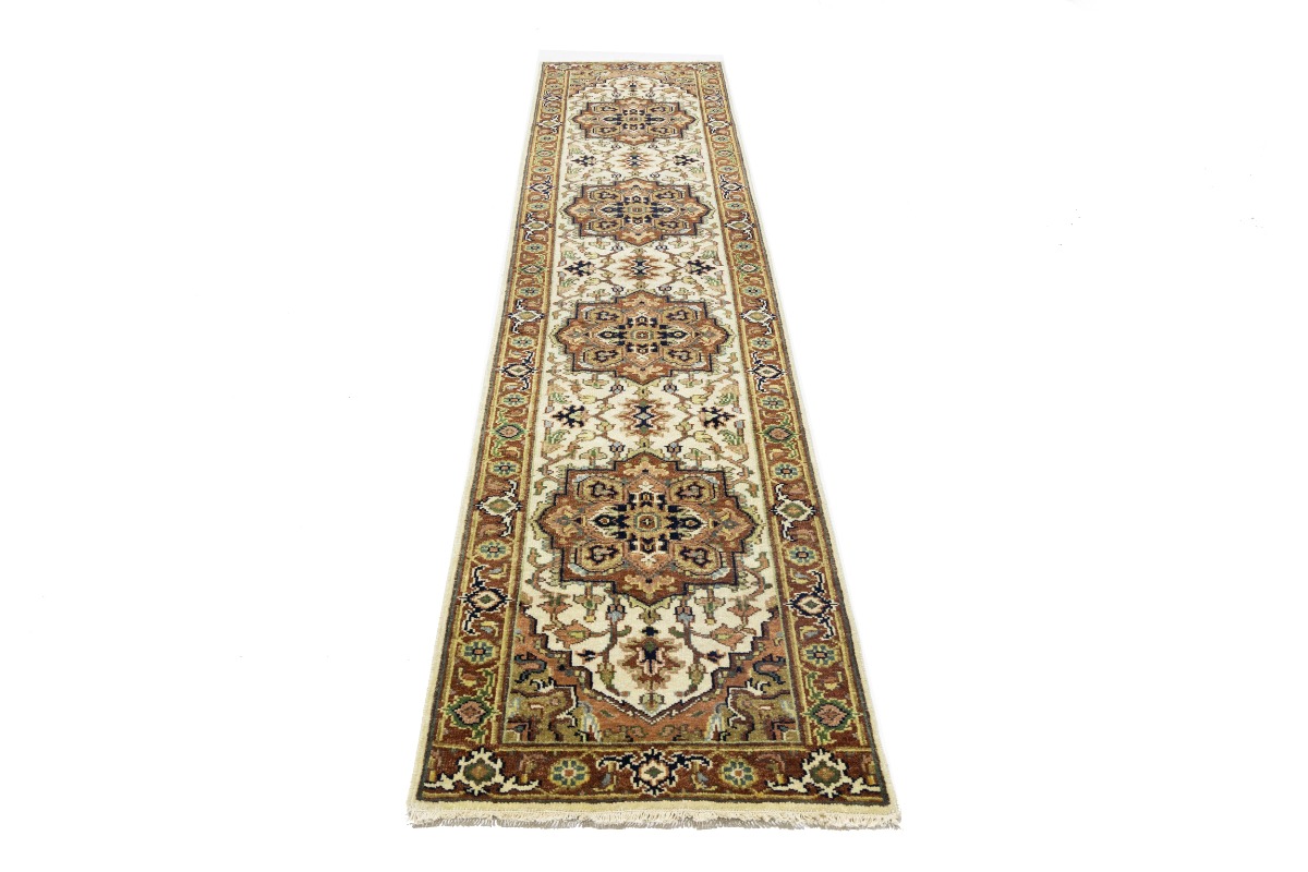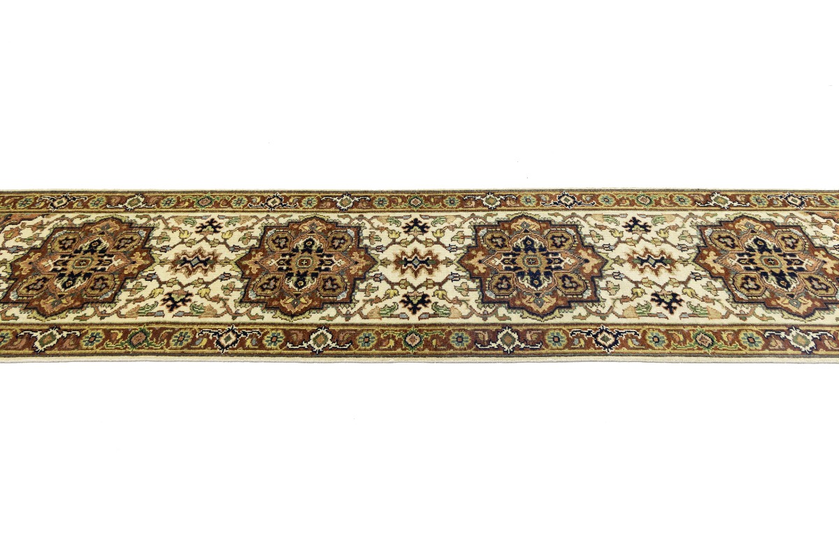 Cream Geometric 3X12 Heriz Serapi Oriental Runner Rug
