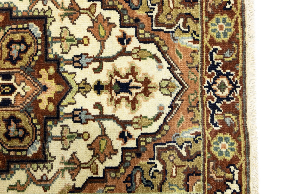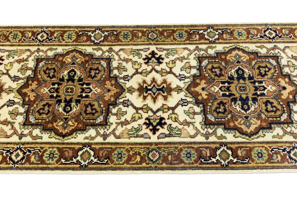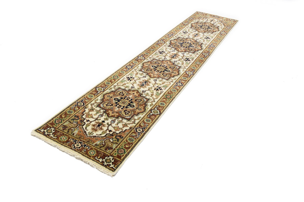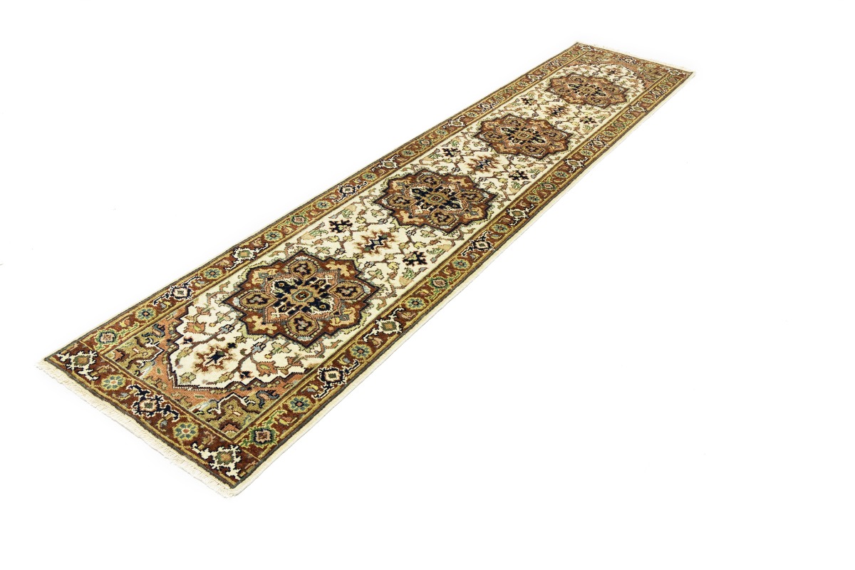 Cream Geometric 3X12 Heriz Serapi Oriental Runner Rug