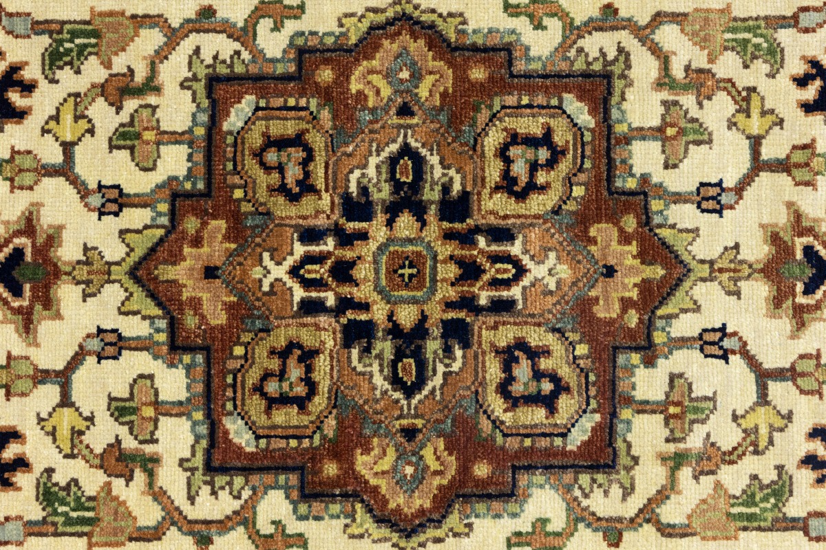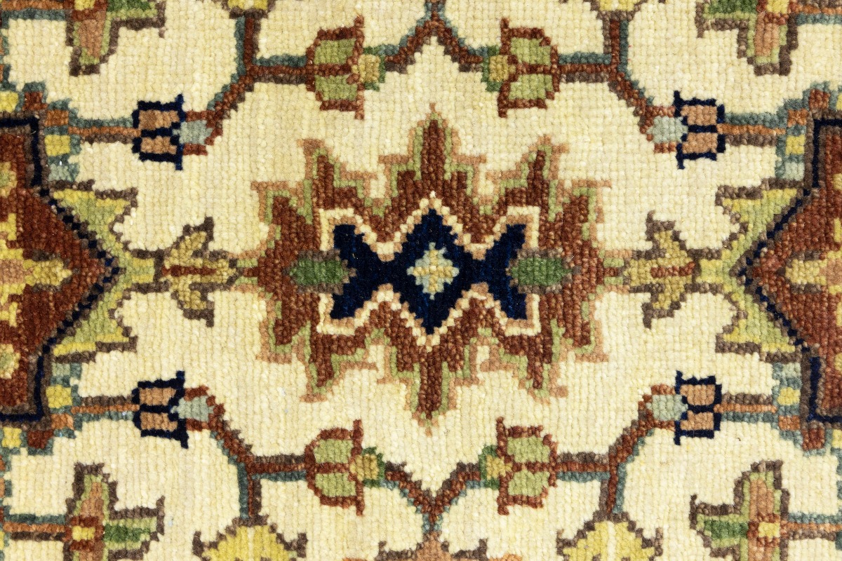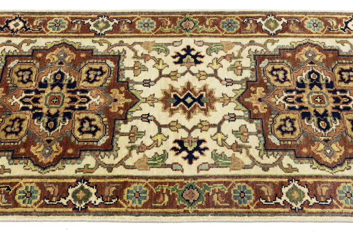 This original 3X12 cream new Oriental runner was made by the hands of talented weavers influenced by a variety of gorgeous symmetrical artistic designs, to recreate the aged look of the unique piece with a richness of color and very balanced background field. What set this vintage style Oriental area runner from the others are the material and dye used (wool pile and cotton foundation), knot count, antique designs, fantastic grades, and its regional historical connection: it has deep roots, from the story of the people who produced it to the meaning of the symbols and colors displayed across its canvas that have been praised for centuries. This Indian home décor carpet will be completely cozy and inviting that never will go out of style! Also, this Oriental rug would be among your most valuable treasures, it is a great investment that accrues value over time, and it will last a lifetime because was woven with high-quality, all-natural wool. Eco-friendly, opulent yet affordable; this runner will give you an extra pop of character to help define your home environment with sophistication and warmth that will capture the eyes and attention of your audience (homeowners, designers, decorators, family and friends). OT-8232