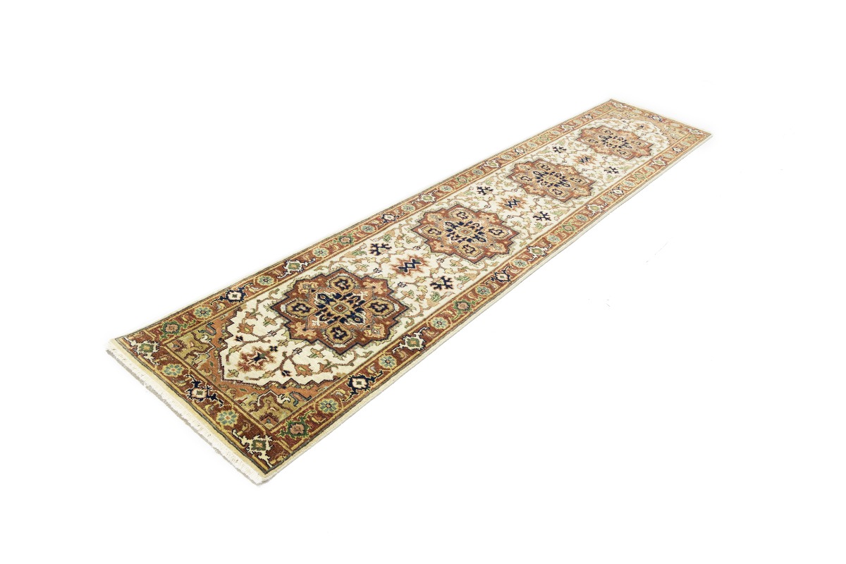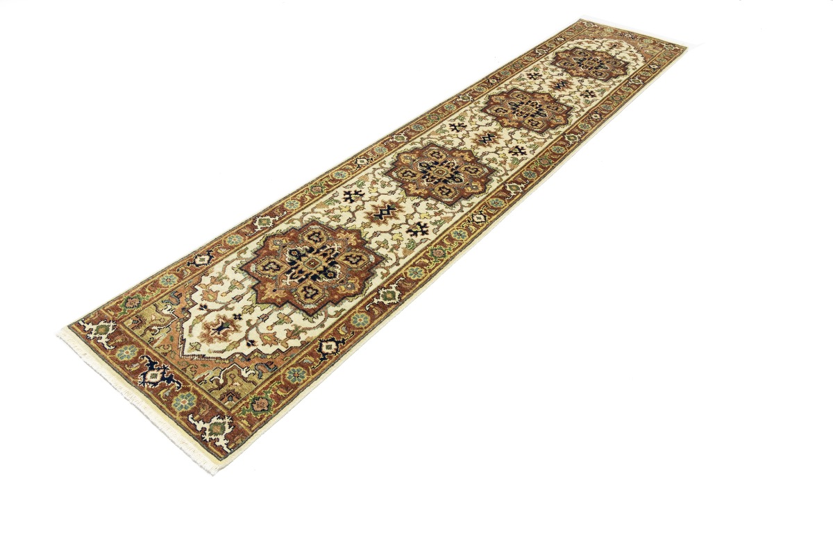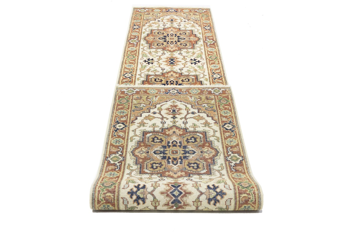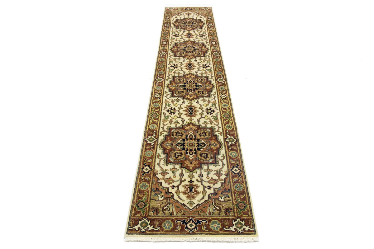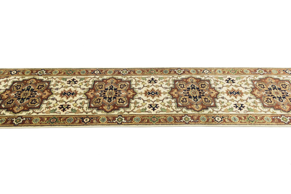 Cream Geometric 3X12 Heriz Serapi Oriental Runner Rug