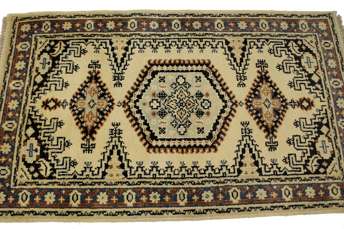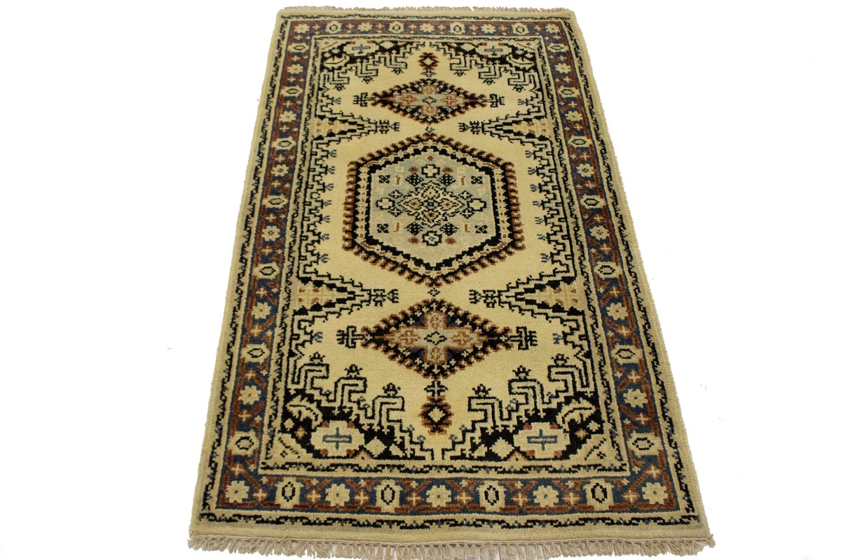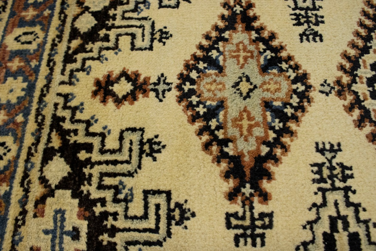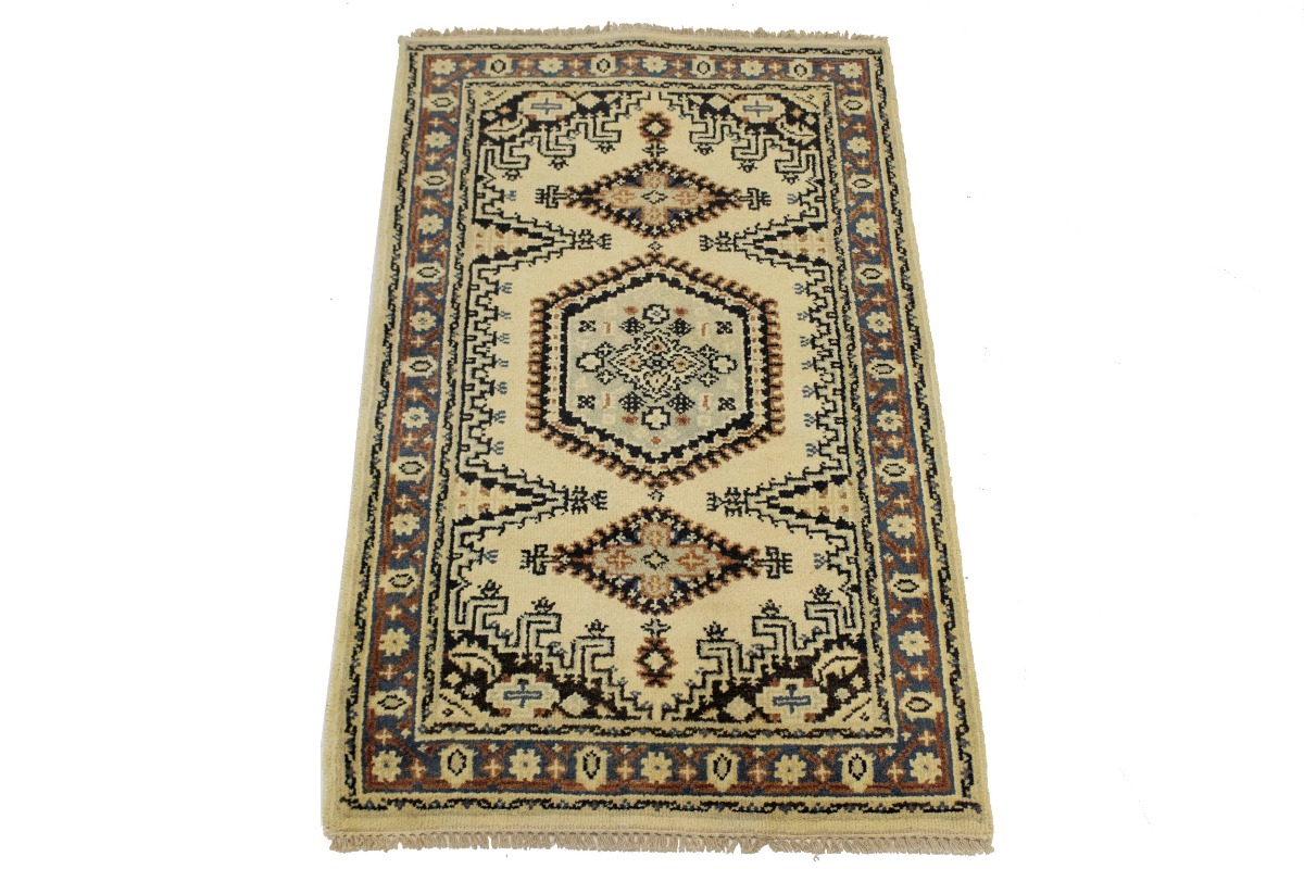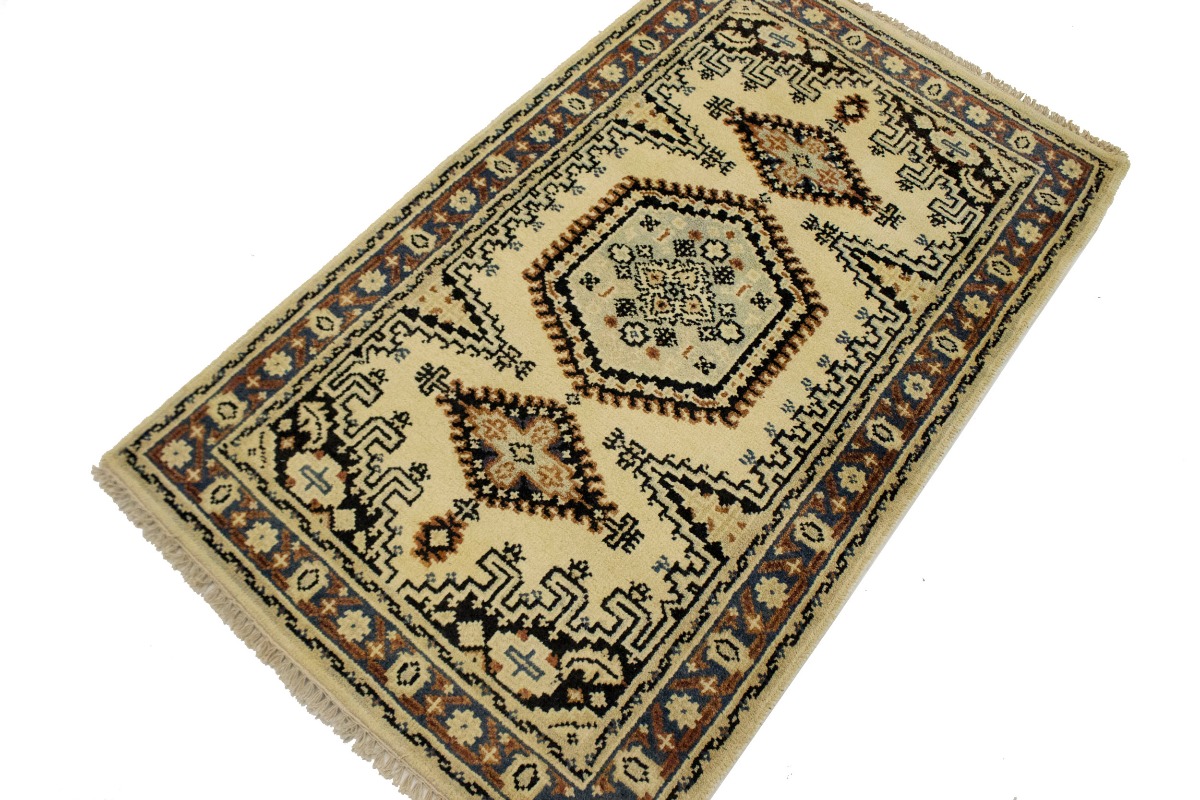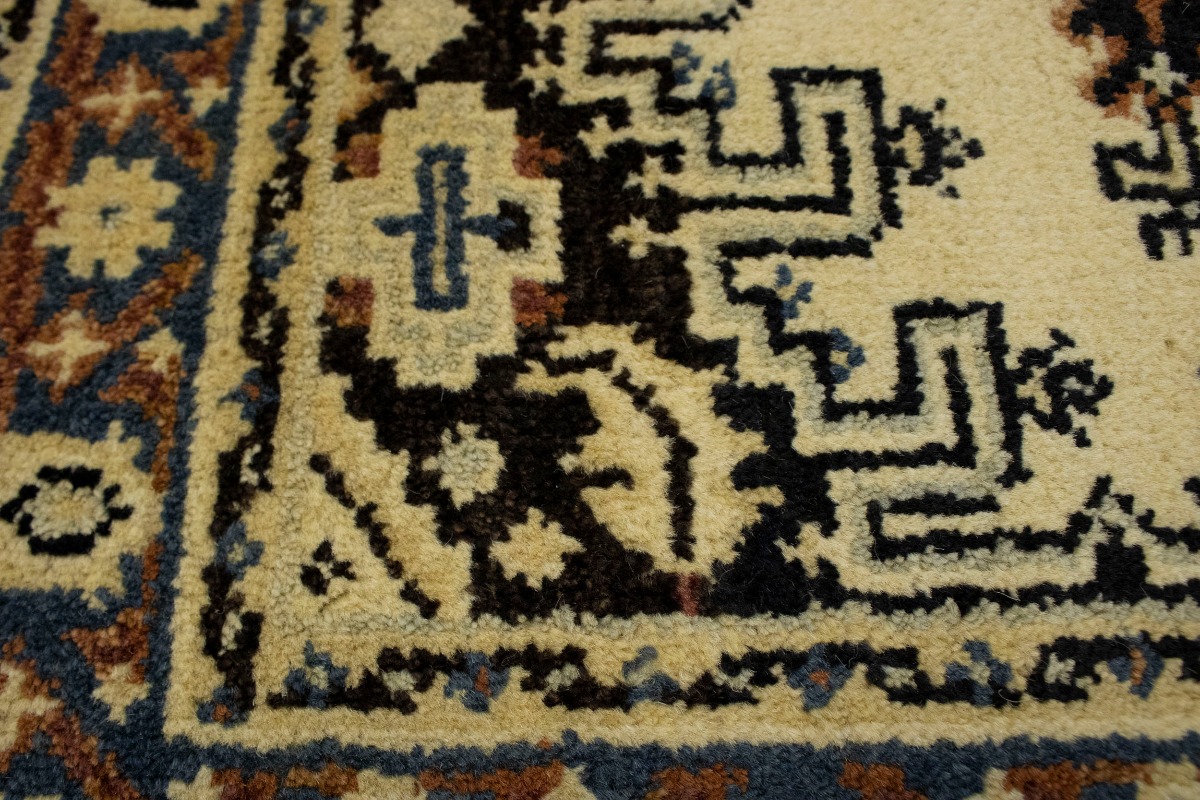 Handmade 3X5 cream oriental rug made with natural dyes (fine wool pile and cotton foundation), superior knot count, and appealing ancient designs. This Oriental rug never will go out of style and would be among your most valuable treasures.