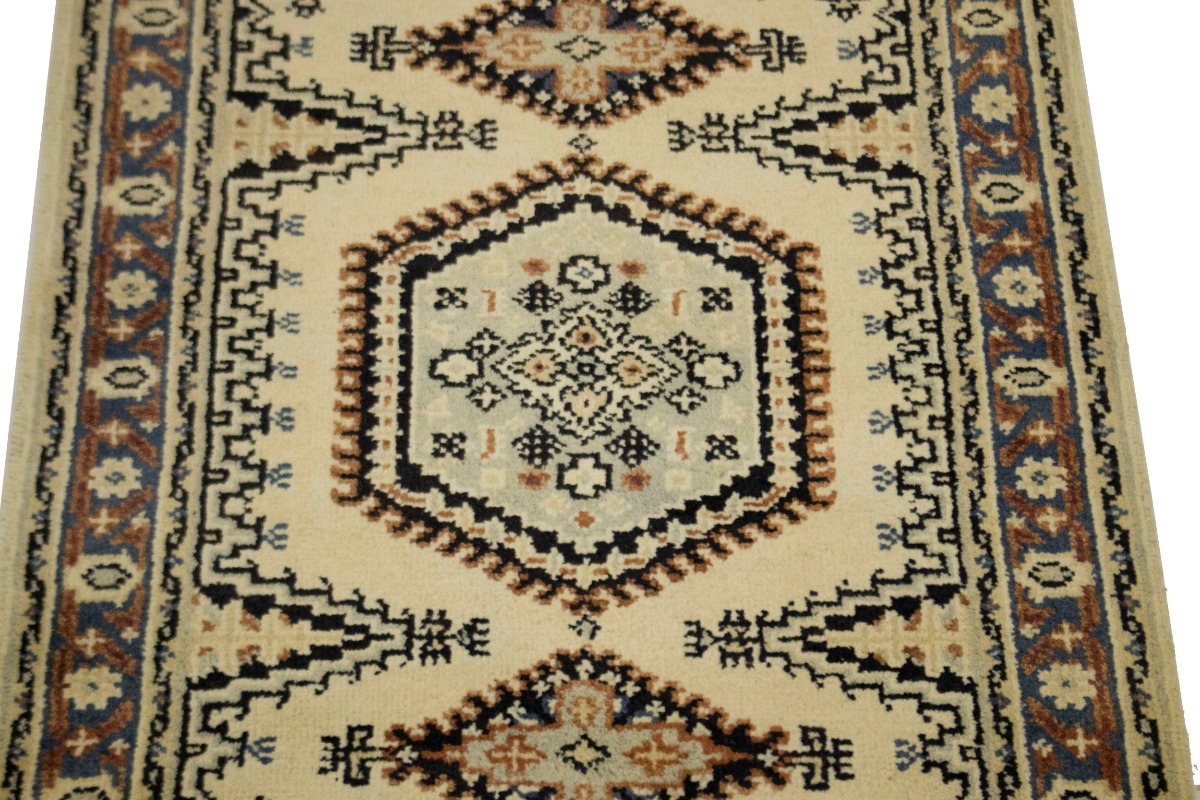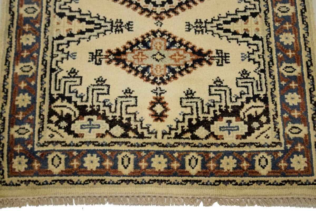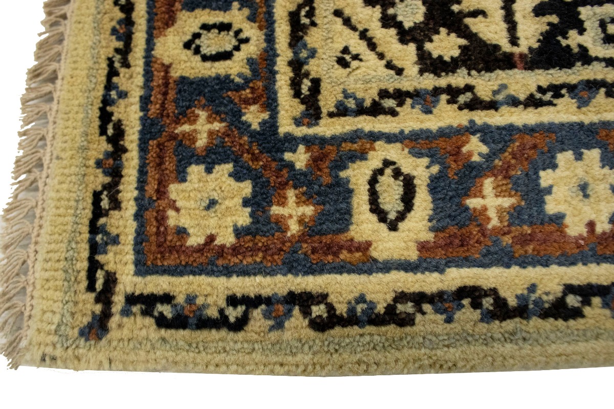 This original 3X5 crea new Oriental rug was made by the hands of talented weavers influenced by a variety of gorgeous symmetrical artistic designs, to recreate the aged look of the unique piece with a richness of color and very balanced background field. What set this vintage style Oriental area rug from the others are the material and dye used (wool pile and cotton foundation), knot count, antique designs, fantastic grades, and its regional historical connection: it has deep roots, from the story of the people who produced it to the meaning of the symbols and colors displayed across its canvas that have been praised for centuries. This Indian home décor carpet will be completely cozy and inviting that never will go out of style! Also, this Oriental rug would be among your most valuable treasures, it is a great investment that accrues value over time, and it will last a lifetime because was woven with high-quality, all-natural wool. Eco-friendly, opulent yet affordable; this rug/runner will give you an extra pop of character to help define your home environment with sophistication and warmth that will capture the eyes and attention of your audience (homeowners, designers, decorators, family and friends). OT-3325