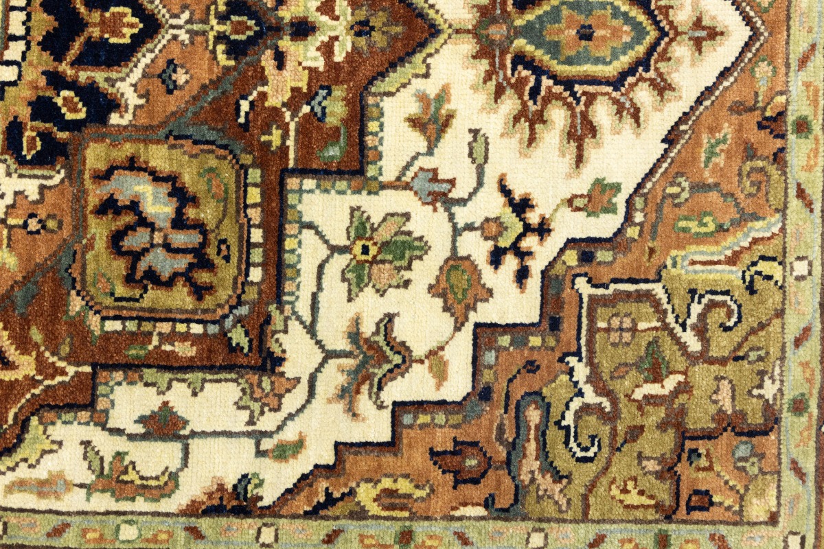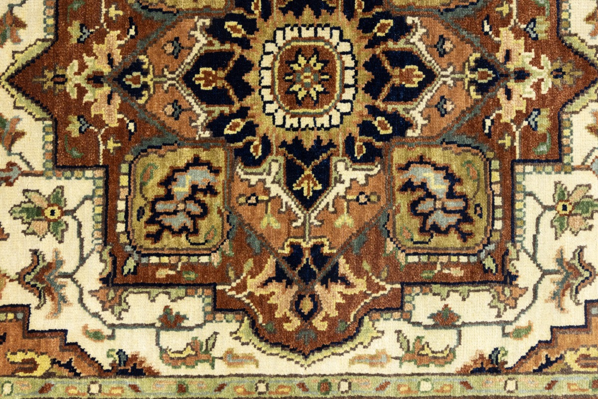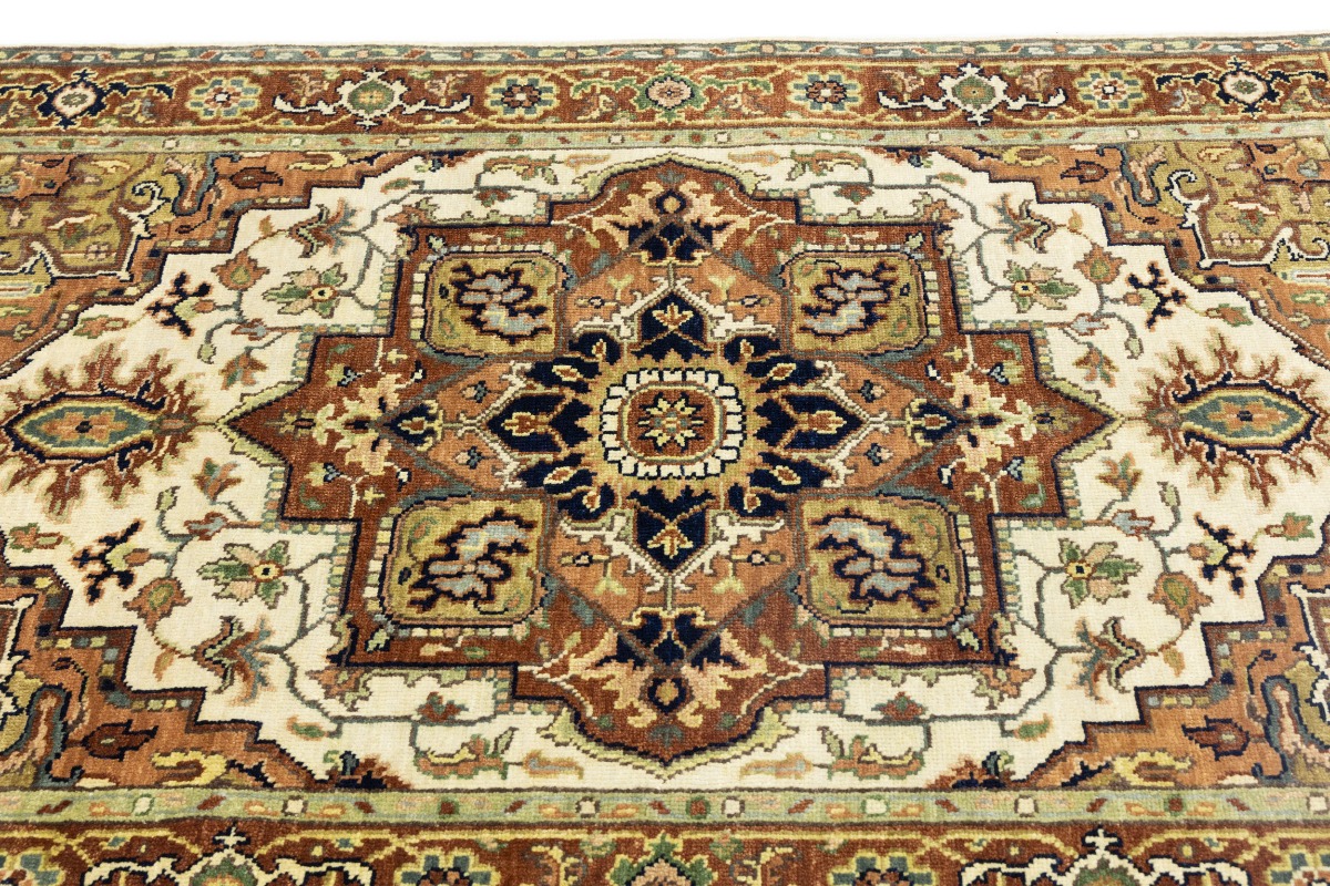 Cream Geometric 4X6 Heriz Serapi Oriental Rug