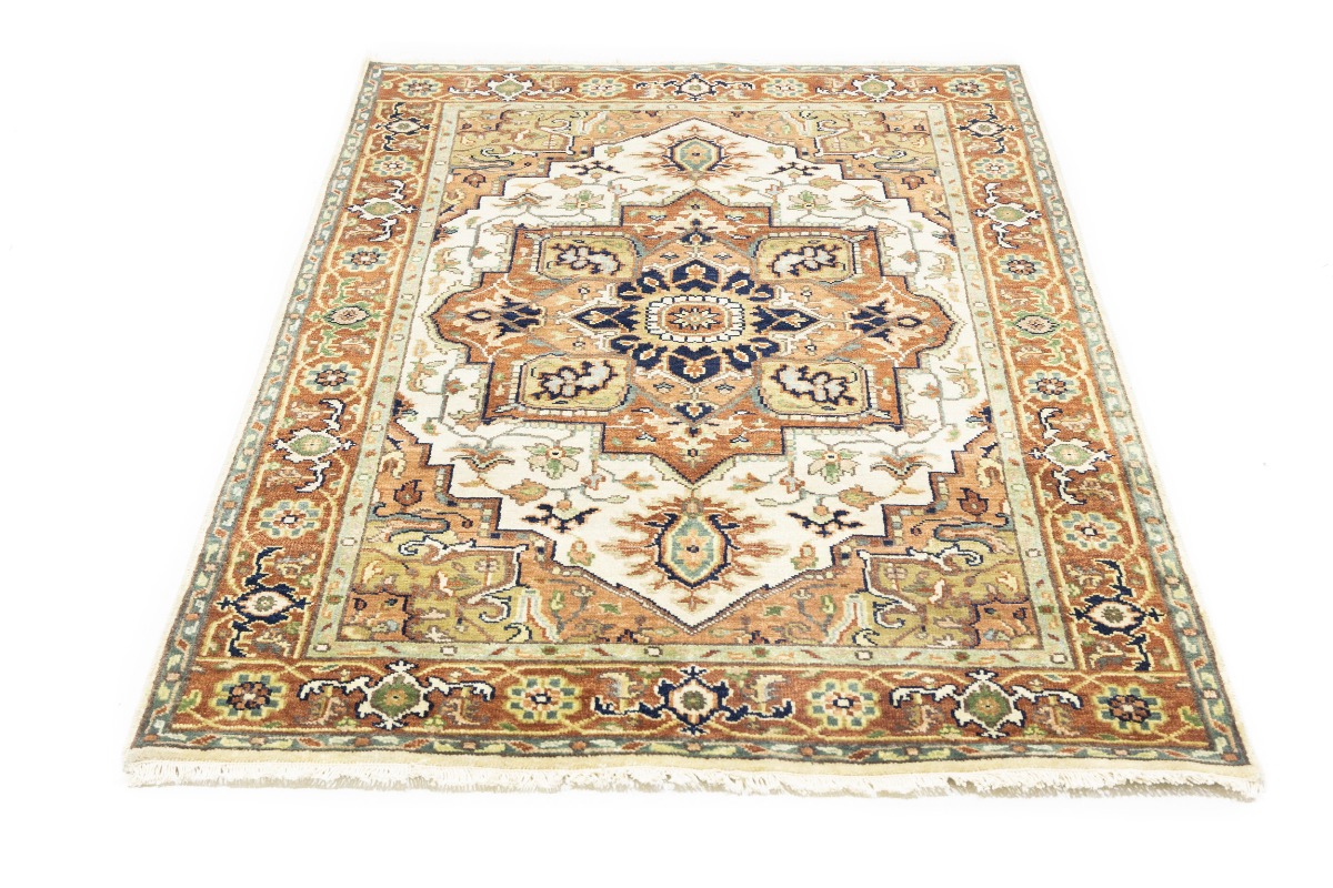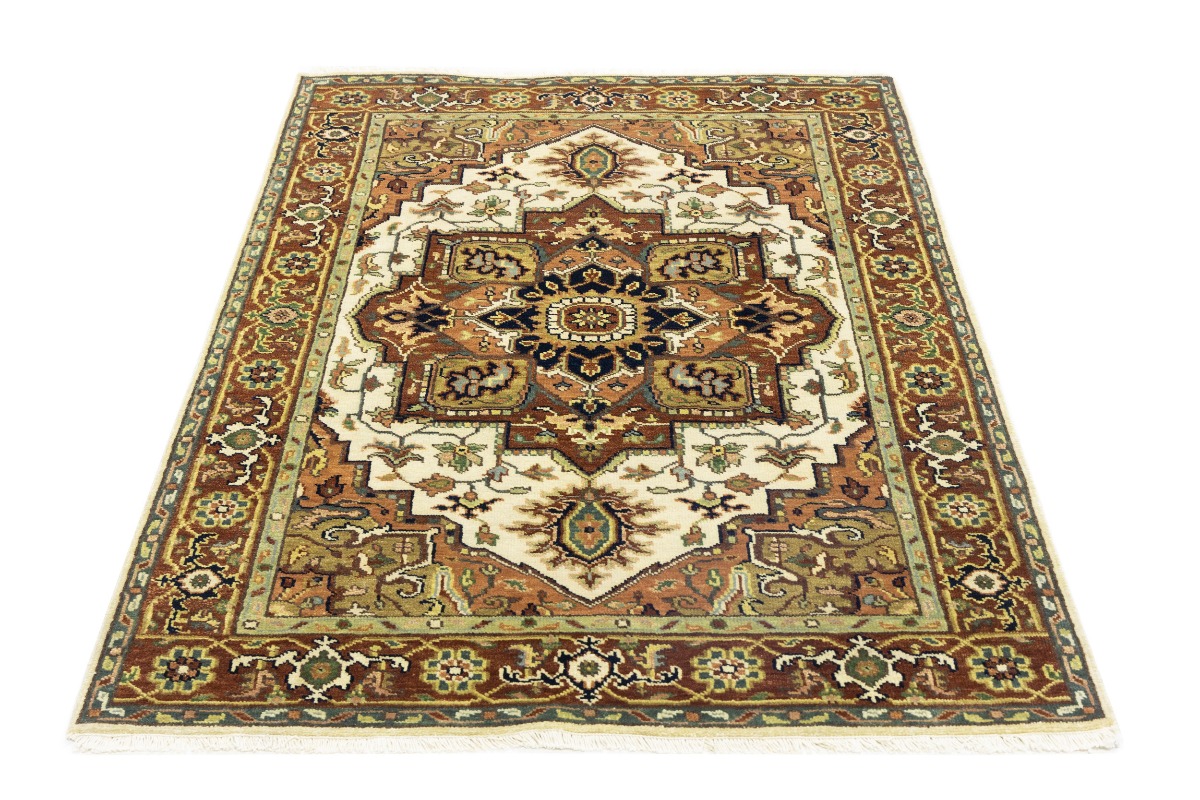 Handmade 4X6 cream oriental rug made with vegetable dyes (fine wool pile and cotton foundation), superior knot count, and appealing ancient designs. This Oriental rug never will go out of style and would be among your most valuable treasures.