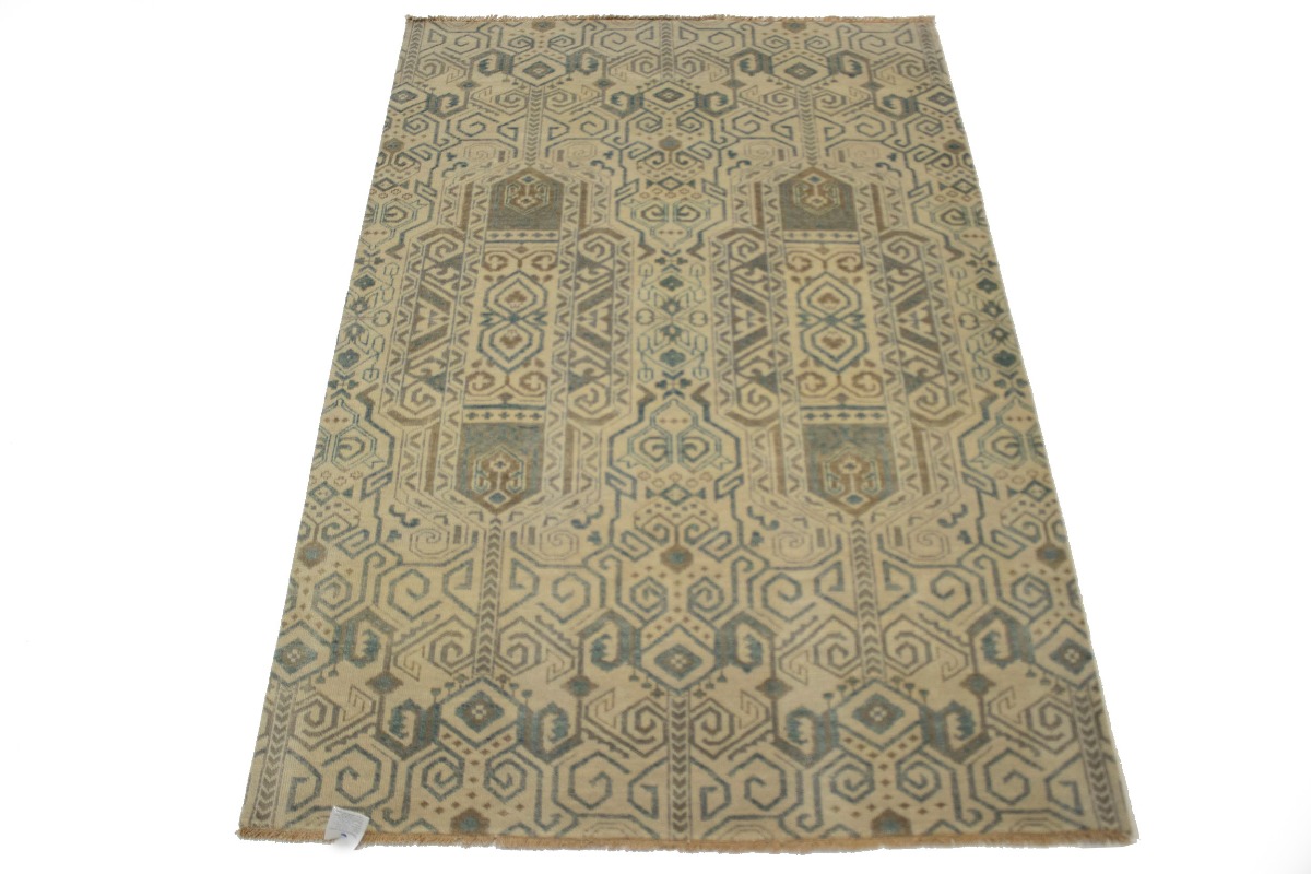 Handmade 5X8 cream oriental rug made with natural dyes (fine wool pile and cotton foundation), superior knot count, and appealing ancient designs. This Oriental rug never will go out of style and would be among your most valuable treasures.
