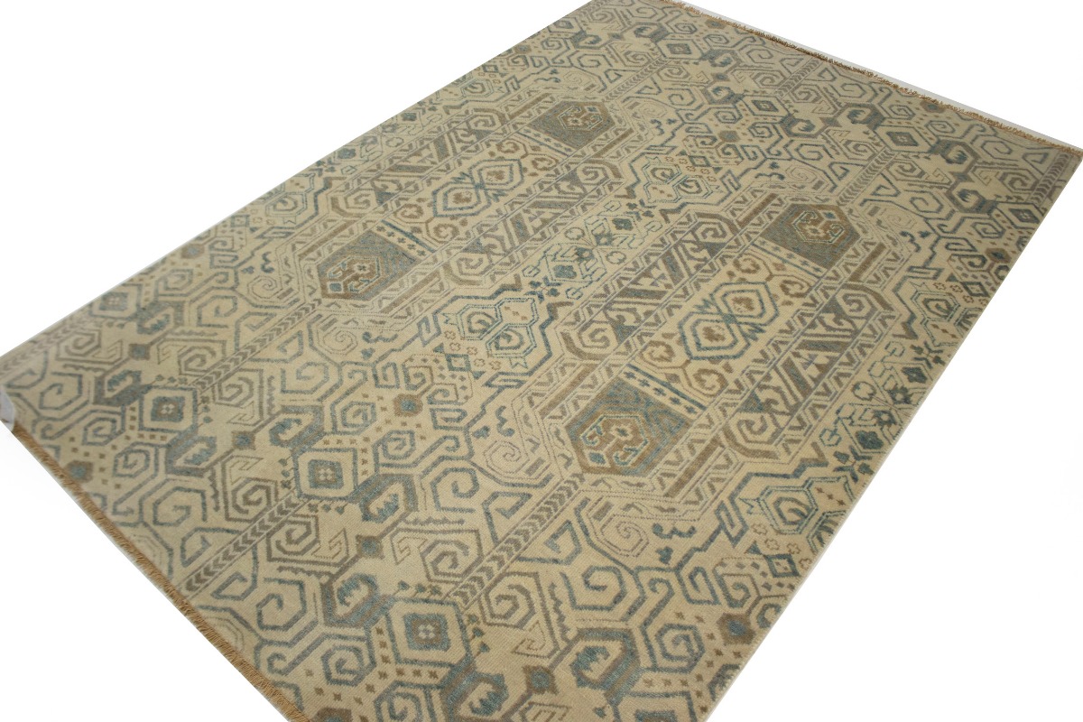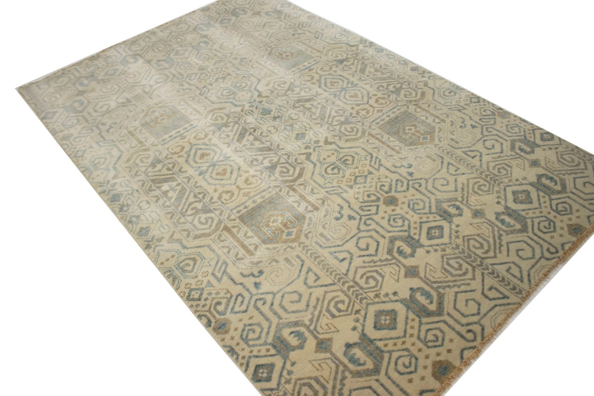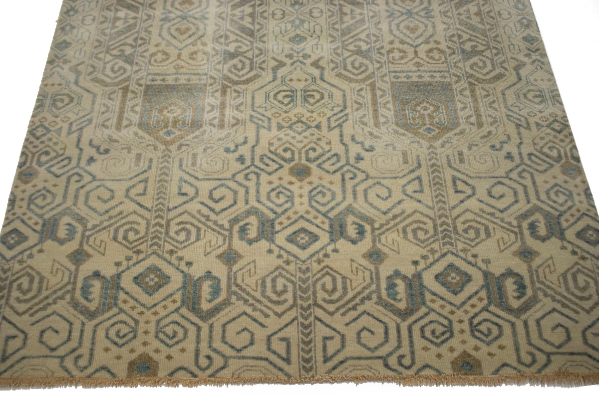 This original 5X8 cream new Oriental rug was made by the hands of talented weavers influenced by a variety of gorgeous symmetrical artistic designs, to recreate the aged look of the unique piece with a richness of color and very balanced background field. What set this vintage style Oriental area rug from the others are the material and dye used (wool pile and cotton foundation), knot count, antique designs, fantastic grades, and its regional historical connection: it has deep roots, from the story of the people who produced it to the meaning of the symbols and colors displayed across its canvas that have been praised for centuries. This Indian home décor carpet will be completely cozy and inviting that never will go out of style! Also, this Oriental rug would be among your most valuable treasures, it is a great investment that accrues value over time, and it will last a lifetime because was woven with high-quality, all-natural wool. Eco-friendly, opulent yet affordable; this rug will give you an extra pop of character to help define your home environment with sophistication and warmth that will capture the eyes and attention of your audience (homeowners, designers, decorators, family and friends). OT-4985