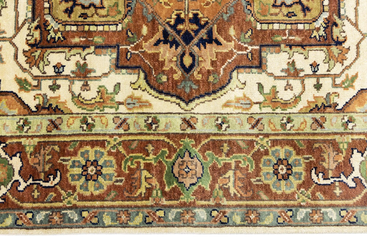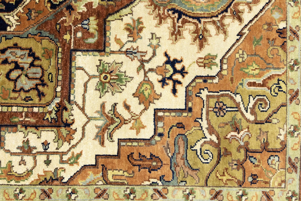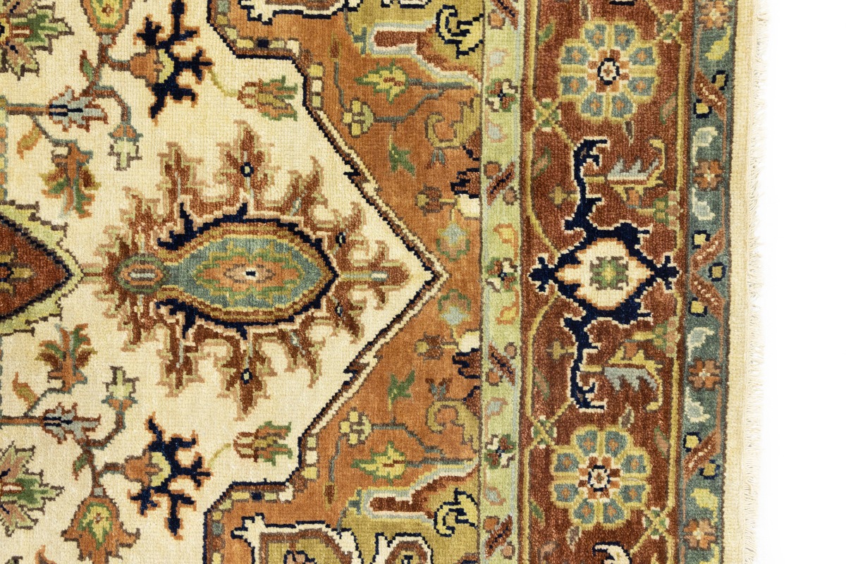 This genuine 6X9 cream new Oriental rug was well-constructed by the hands of master weavers motivated by a variety of stunning artistic designs, to recreate the aged look of the exceptional piece with a richness of color and developed decorative background field. What set this vintage style Oriental area rug from the others are the material and dye used (wool pile and cotton foundation), knot count, ancient designs, fantastic grades, and its regional historical connection: it has deep roots, from the story of the people who produced it to the meaning of the symbols and colors displayed across its canvas that have been praised for centuries. This Indian home décor carpet will be completely cozy and inviting that never will go out of style! Also, this Oriental rug would be among your most valuable treasures, it is a great investment that increase in value over time, and it will last a lifetime because was woven with high-quality, all-natural wool. Eco-friendly, opulent yet affordable; this rug give you an extra pop of character to help define your home environment with elegance and warmth that will capture the eyes and attention of your audience (homeowners, designers, decorators, family and friends). OT-8221