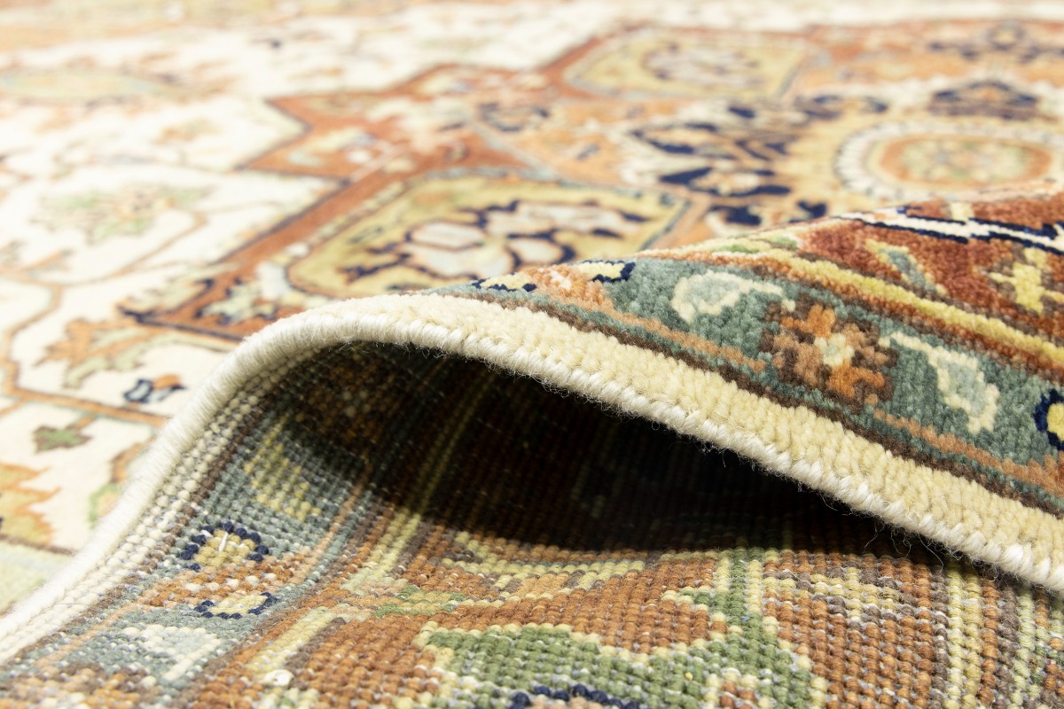 Handmade 6X9 cream Oriental rug made with vegetable dyes (fine wool pile and cotton foundation), exceptional knot count, and appealing ancient designs. This Oriental rug never will go out of style and would be among your most valuable treasures.