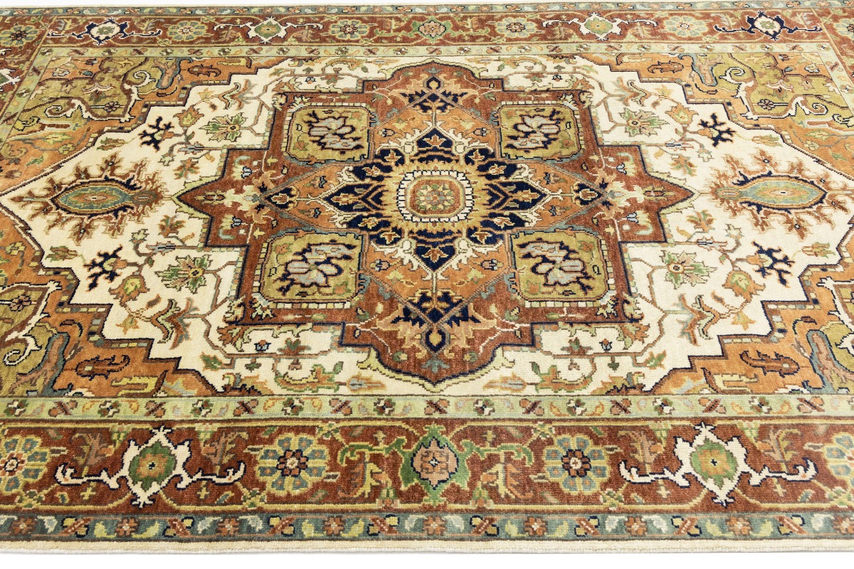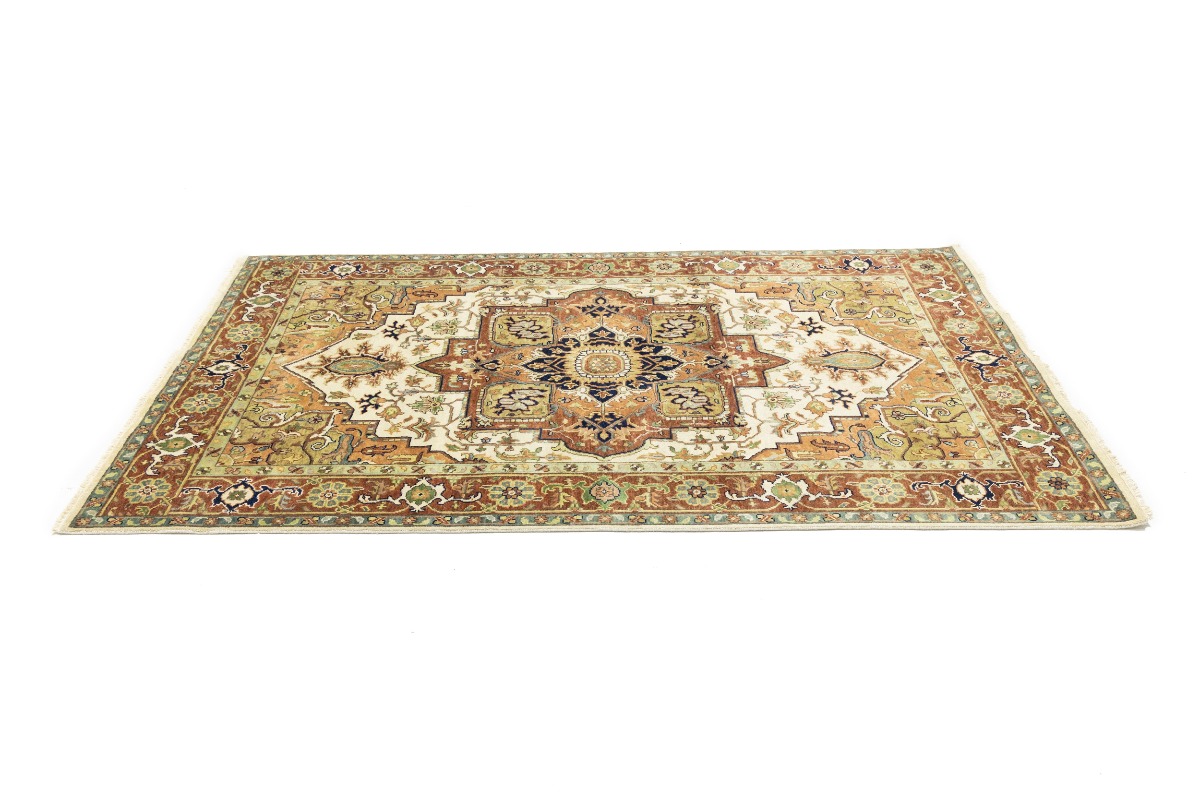 Cream Geometric 6X9 Heriz Serapi Oriental Rug
