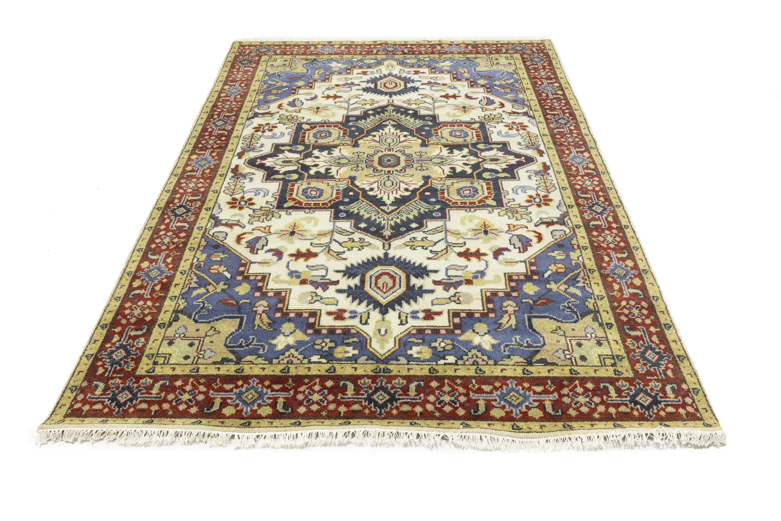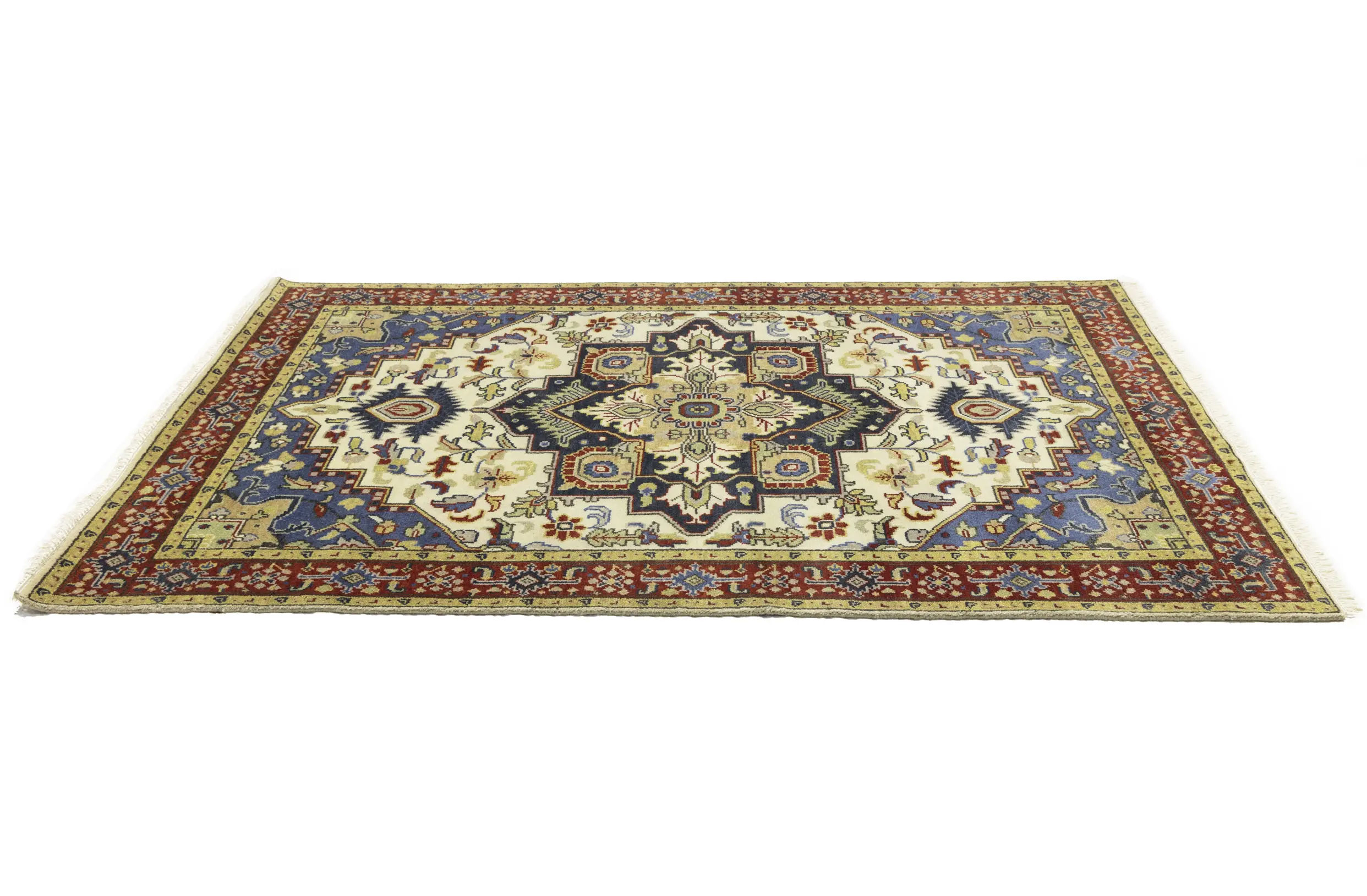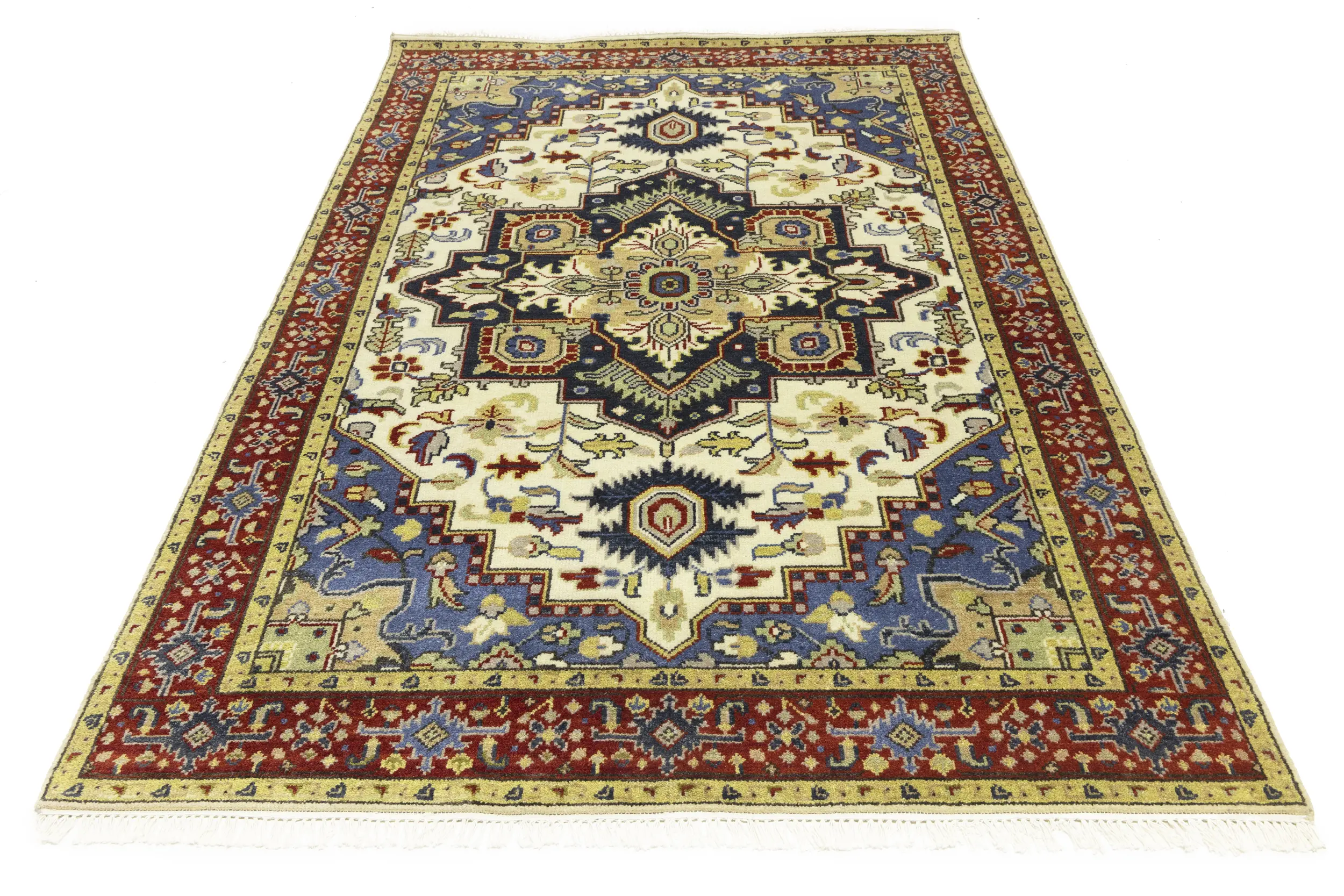 Cream Geometric 6X9 Heriz Serapi Oriental Rug