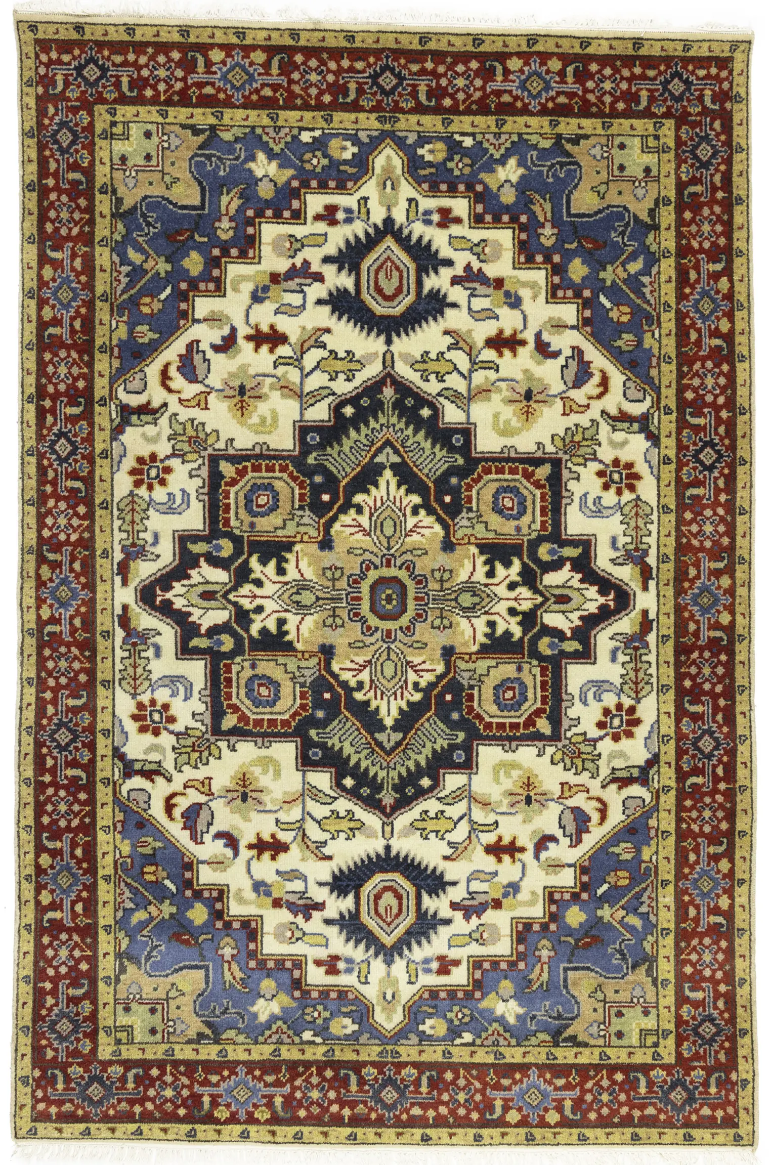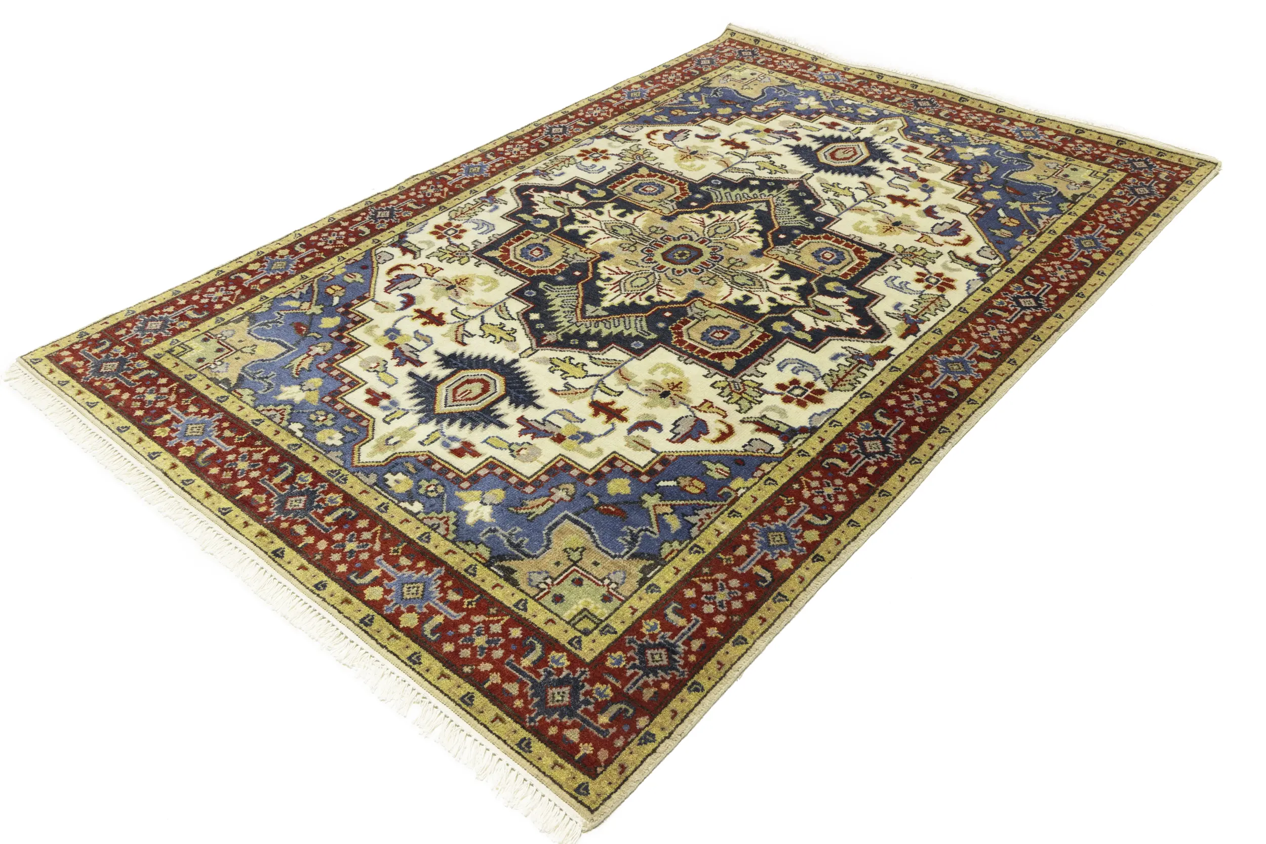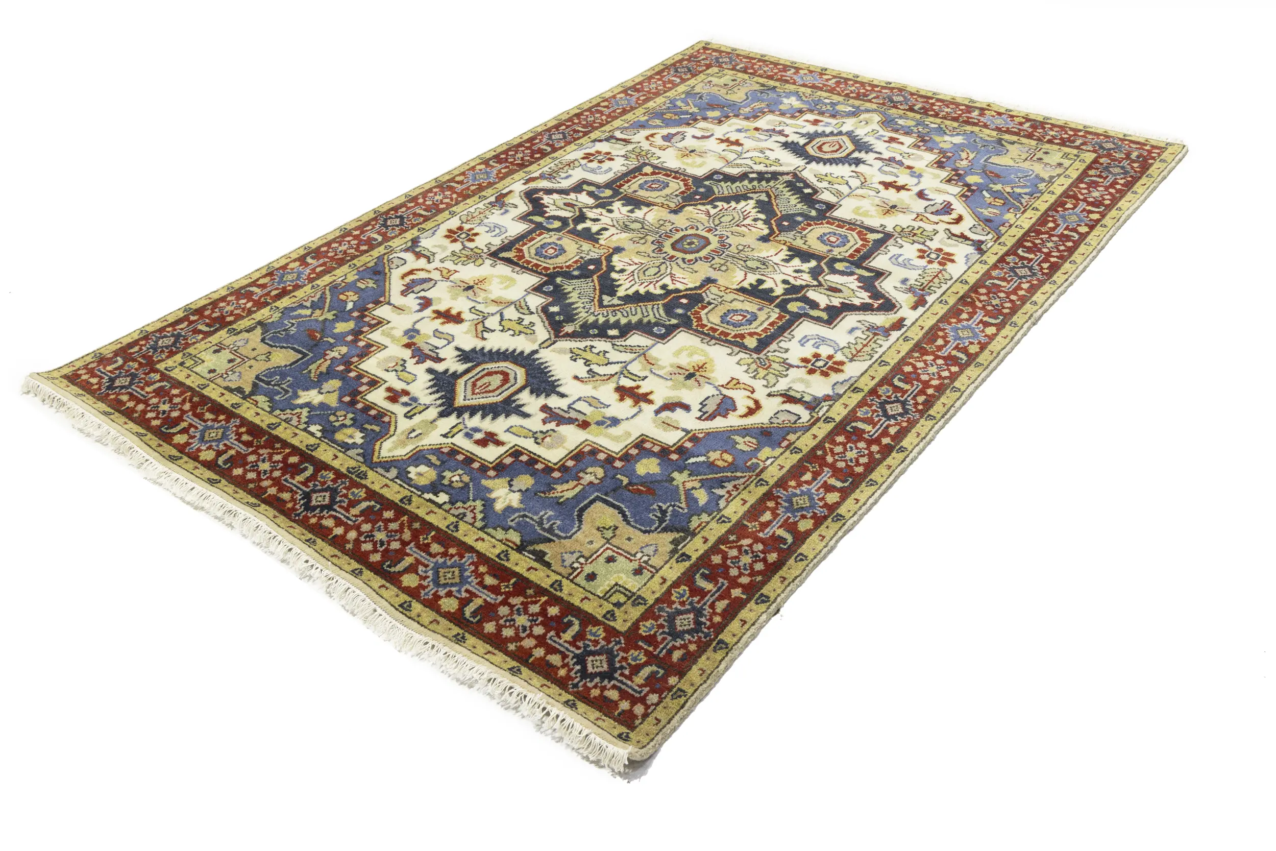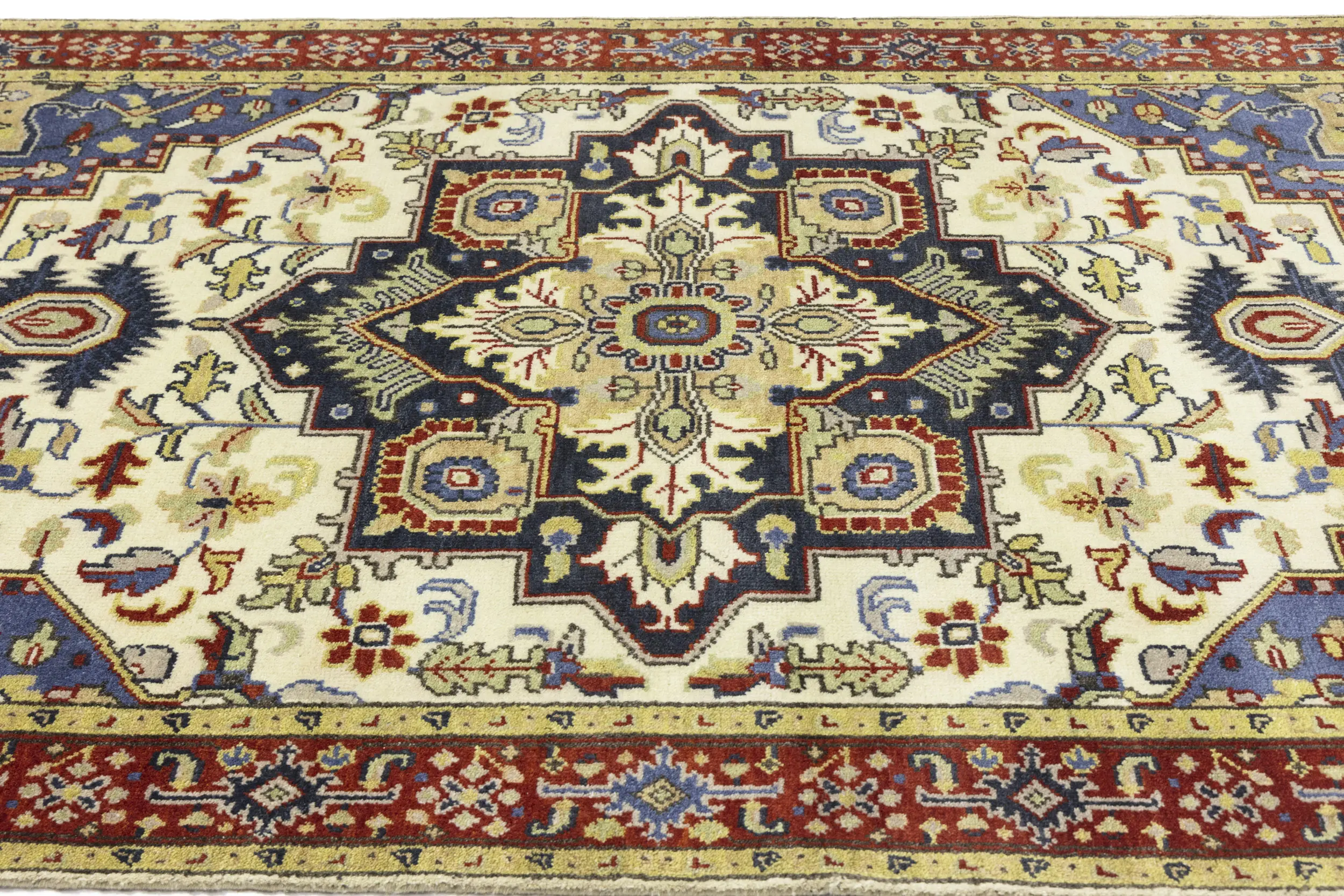 Cream Geometric 6X9 Heriz Serapi Oriental Rug