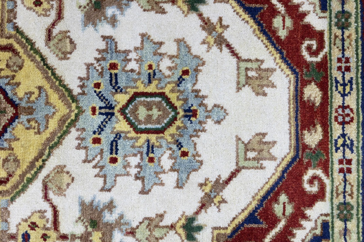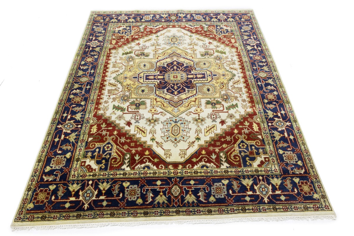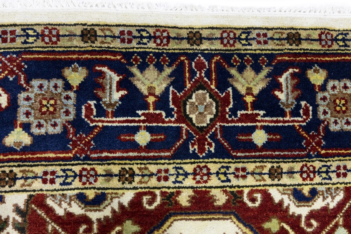 This genuine 8X10 cream new Oriental rug was made by the hands of gifted weavers inspired by a variety of spectacular artistic designs, to recreate the aged look of the original piece with a richness of color and ornately patterned background field. What set this vintage style Oriental area rug from the others are the material and dye used (wool pile and cotton foundation), knot count, ancient designs, fantastic grades, and its regional historical connection: it has deep roots, from the story of the people who produced it to the meaning of the symbols and colors displayed across its canvas that have been praised for centuries. This Indian home décor carpet will be completely cozy and inviting that never will go out of style! Also, this Oriental rug would be among your most valuable treasures, it is a great investment that accrues value over time, and it will last for generations because was woven with high-quality, all-natural wool. Environmentally friendly, opulent yet affordable; this rug will give you a thorough amount of character to help define your living space with elegance and warmth that will capture the eyes and attention of your audience (homeowners, designers, decorators, family and friends). OT-7515