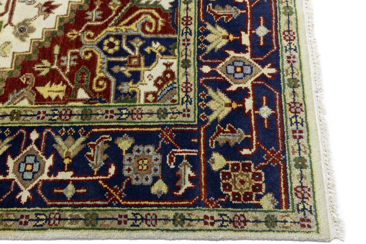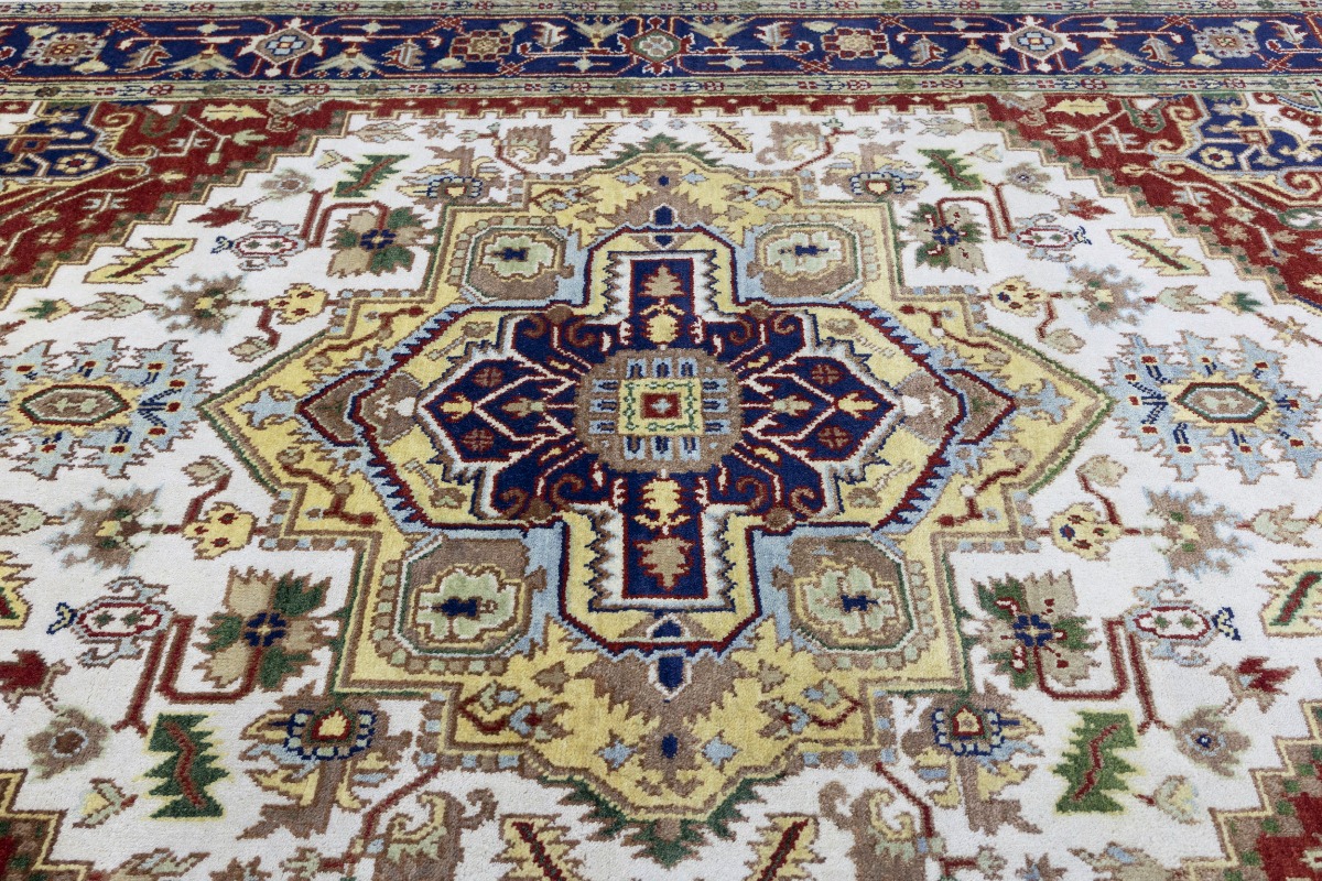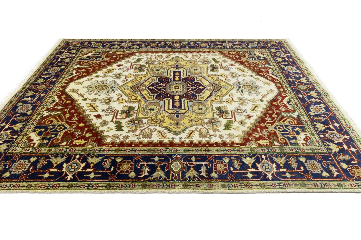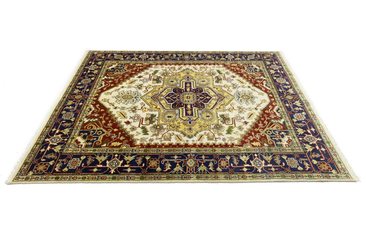 Cream Geometric 7'9X9'6 Heriz Serapi Oriental Rug