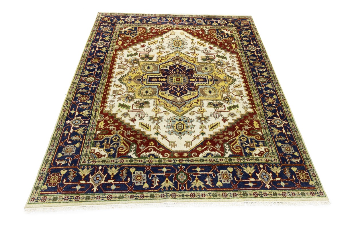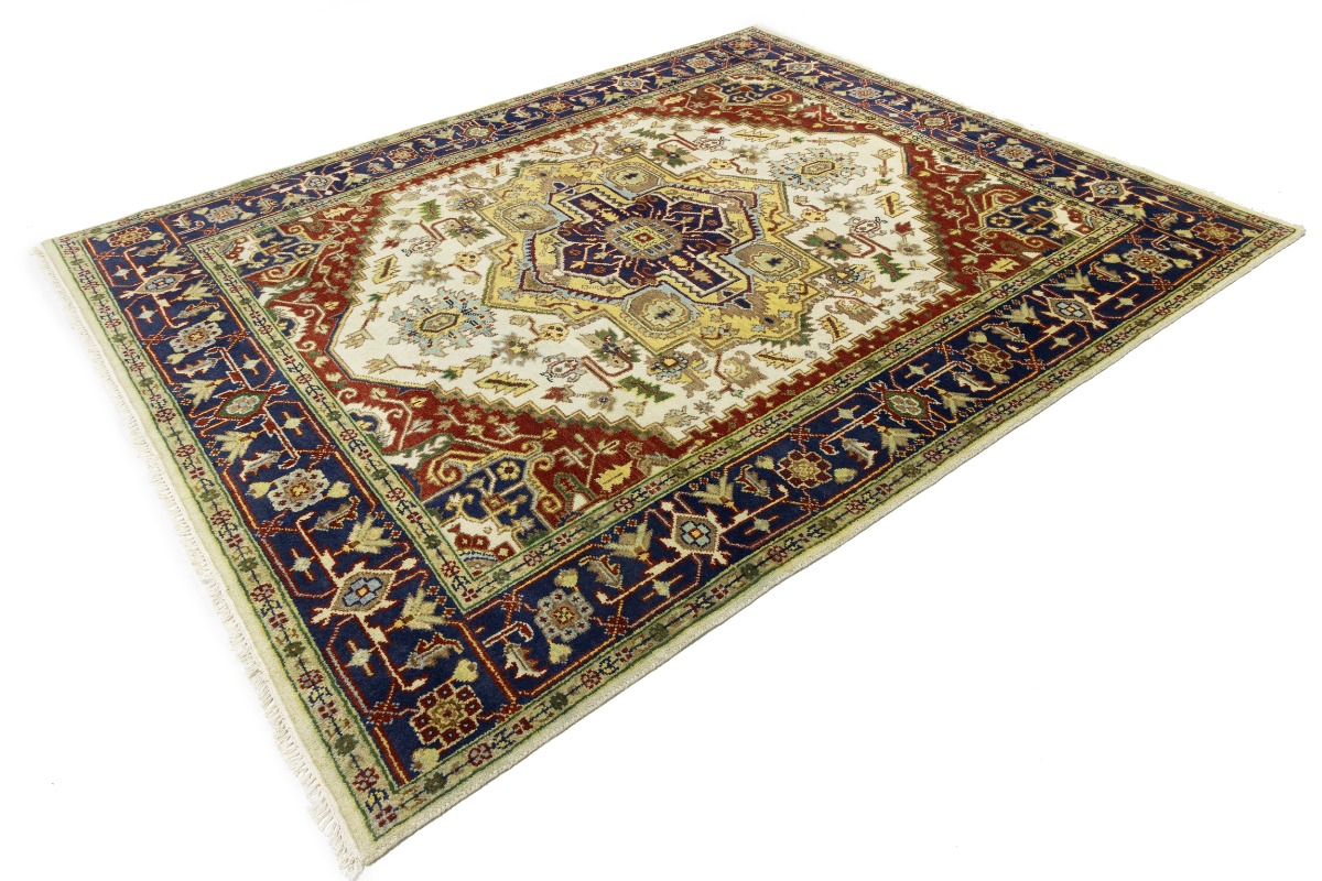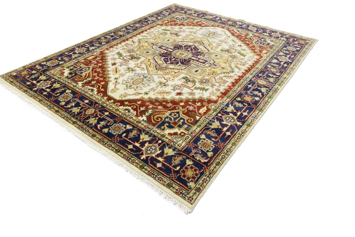 Handmade 8X10 cream oriental rug made with vegetable dyes (fine wool pile and cotton foundation), superior knot count, and appealing ancient designs. This Oriental rug never will go out of style and would be among your most valuable treasures.