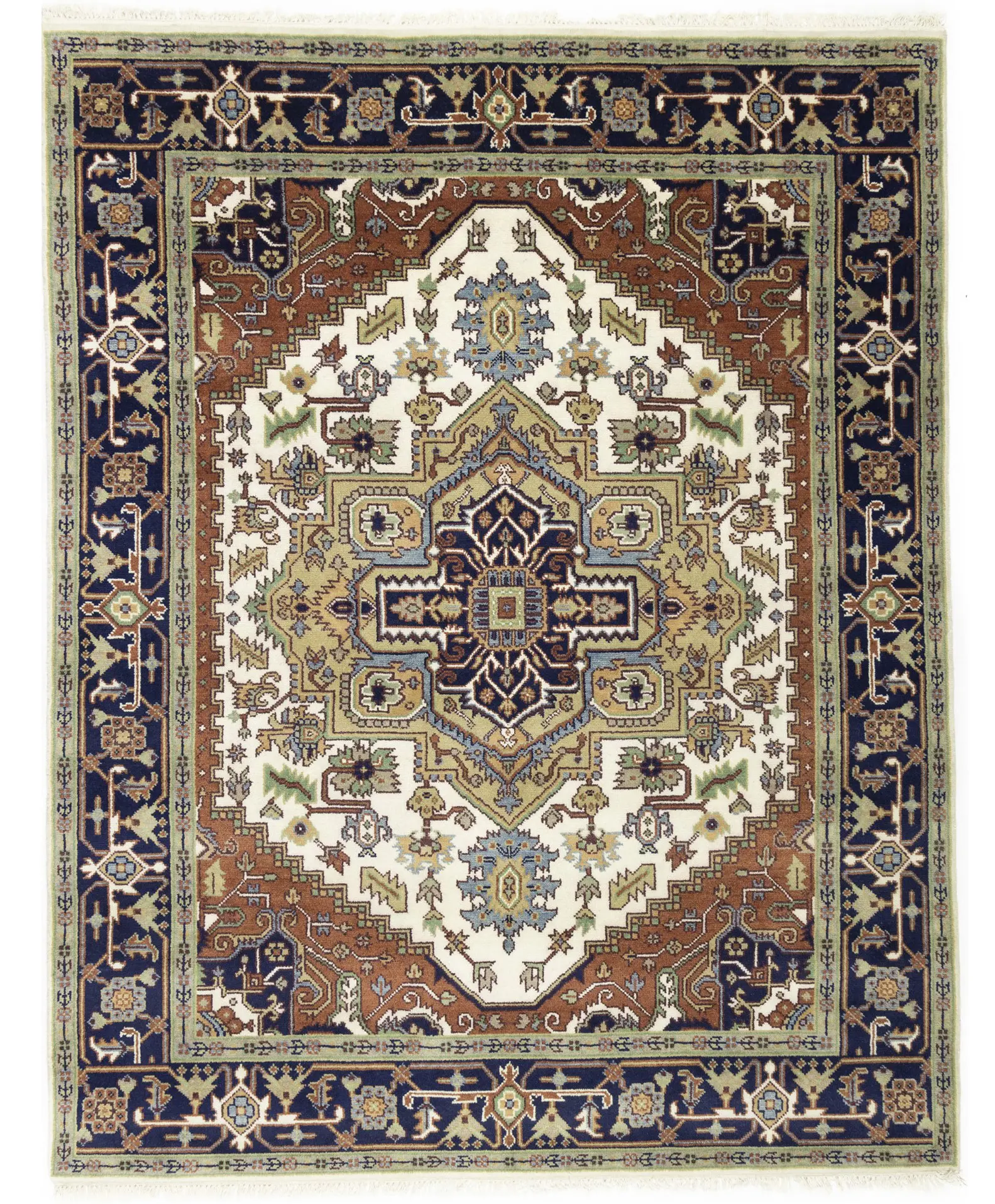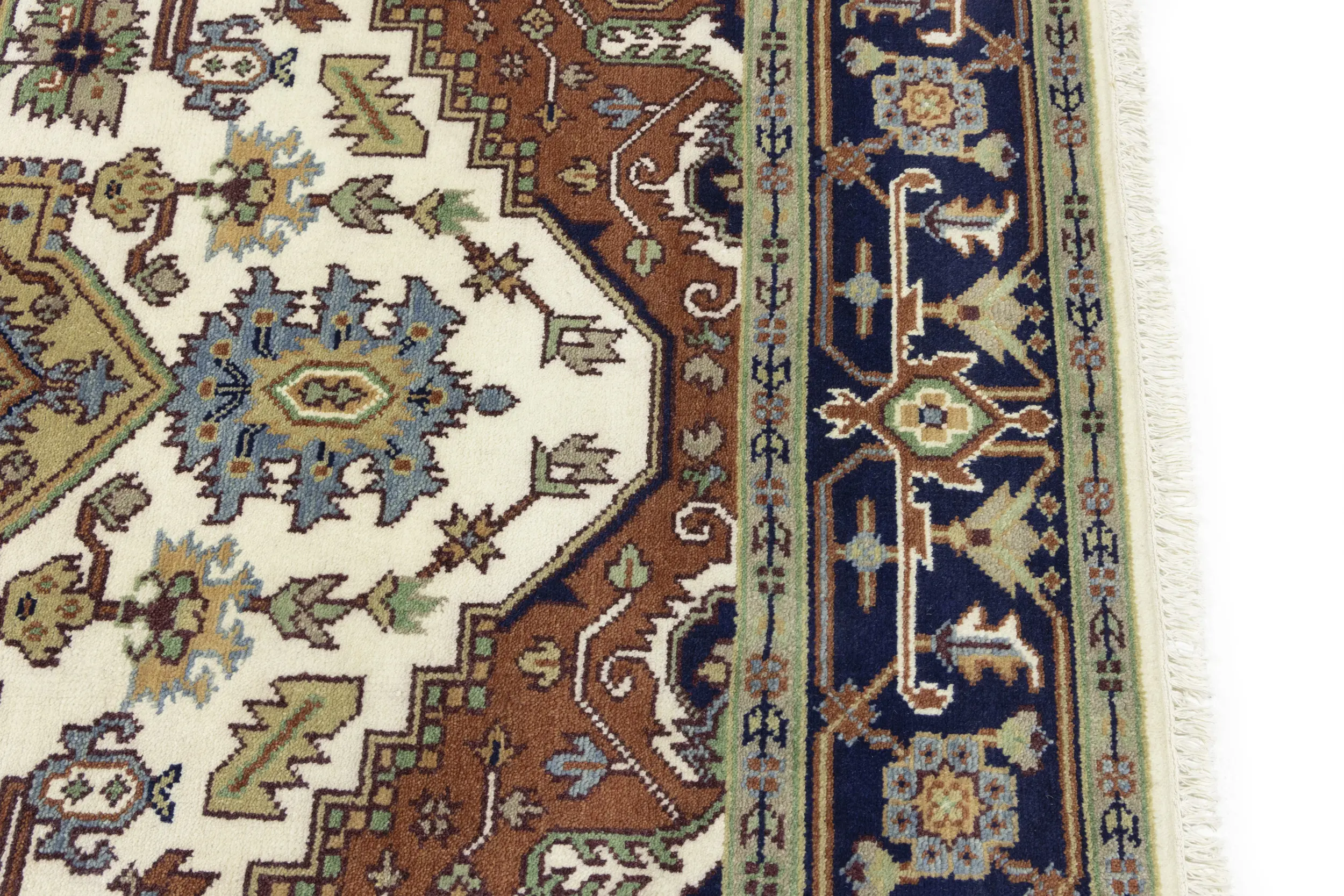 Cream Geometric 8X10 Heriz Serapi Oriental Rug