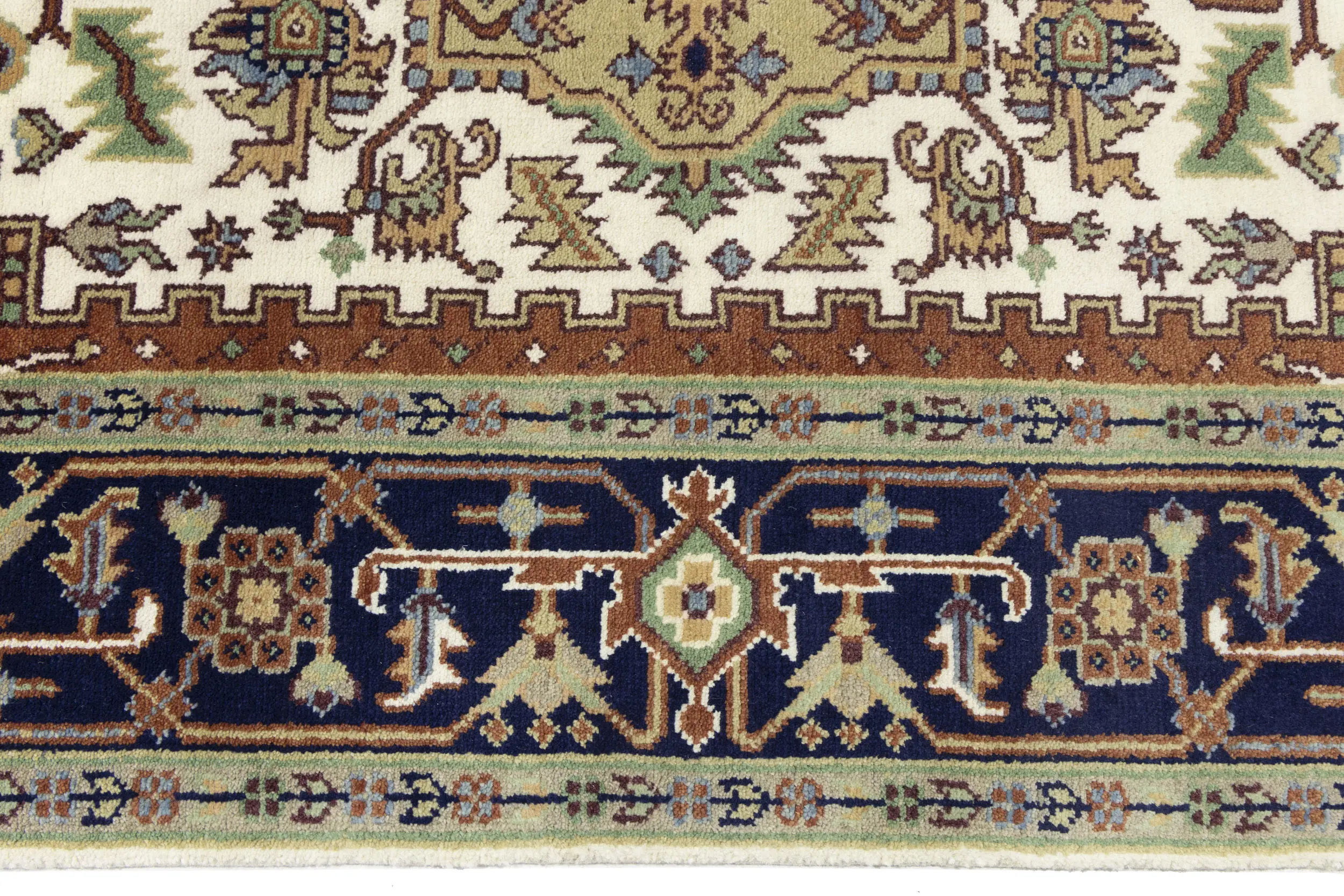 Handmade 8X10 cream Oriental rug made with vegetable dyes (fine wool pile and cotton foundation), superior knot count, and appealing ancient designs. This Oriental rug/runner never will go out of style and would be among your most valuable treasures.