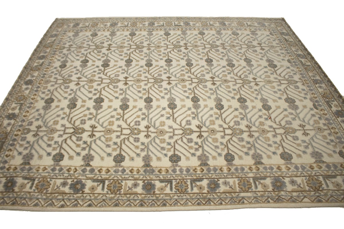 This genuine 8X10 cream new Oriental rug was well-constructed by the hands of master weavers motivated by a variety of stunning artistic designs, to recreate the aged look of the exceptional piece with a richness of color and developed decorative background field. What set this vintage style Oriental area rug from the others are the material and dye used (wool pile and cotton foundation), knot count, ancient designs, fantastic grades, and its regional historical connection: it has deep roots, from the story of the people who produced it to the meaning of the symbols and colors displayed across its canvas that have been praised for centuries. This Indian home décor carpet will be completely cozy and inviting that never will go out of style! Also, this Oriental rug would be among your most valuable treasures, it is a great investment that increase in value over time, and it will last a lifetime because was woven with high-quality, all-natural wool. Eco-friendly, opulent yet affordable; this rug give you an extra pop of character to help define your home environment with elegance and warmth that will capture the eyes and attention of your audience (homeowners, designers, decorators, family and friends). OT-4768