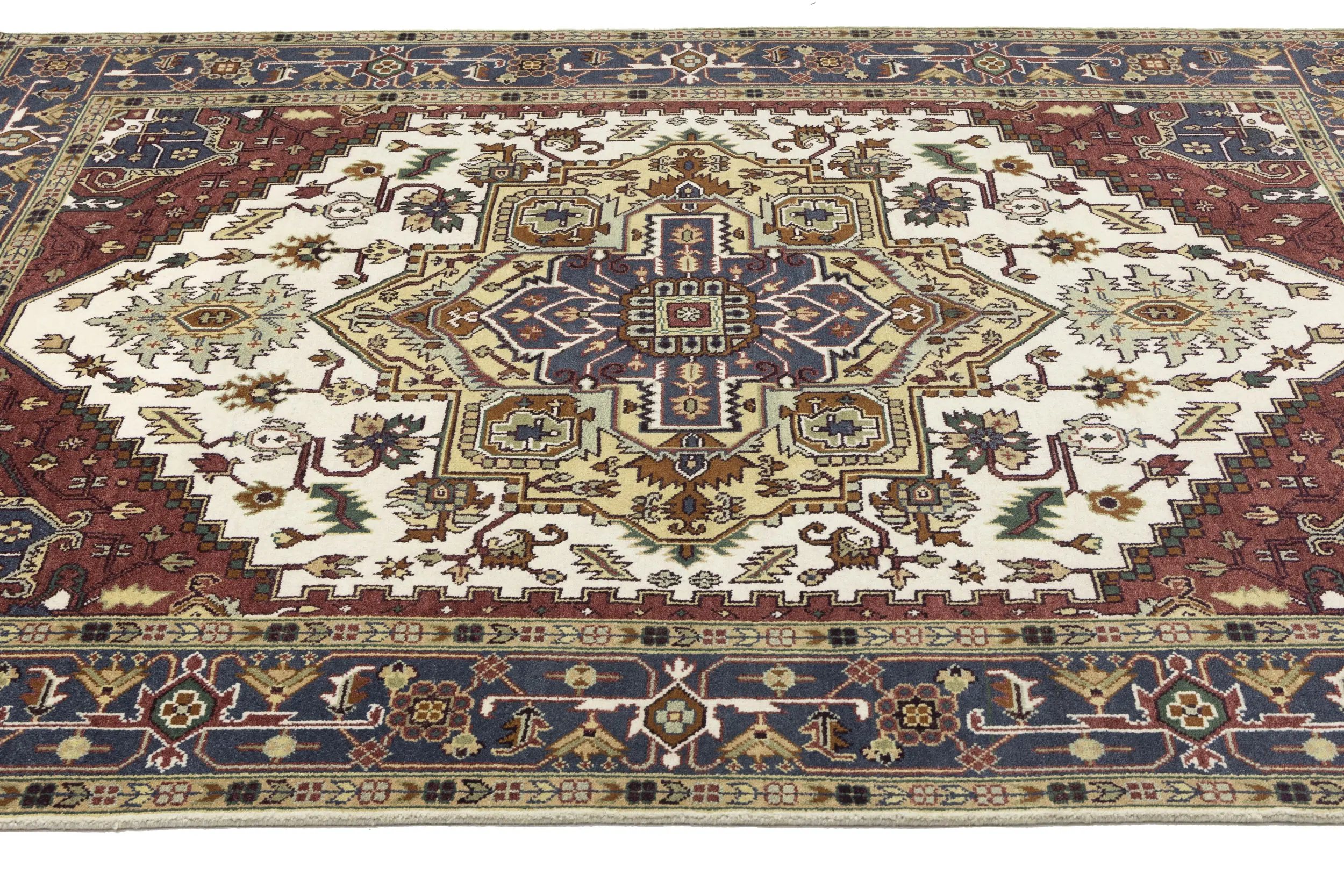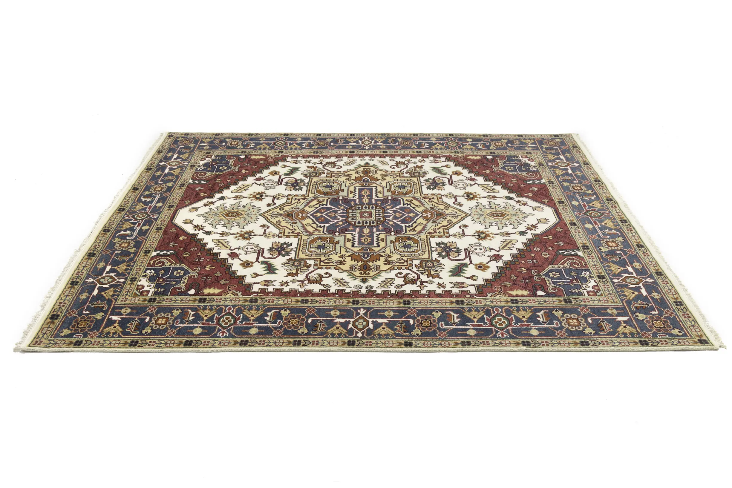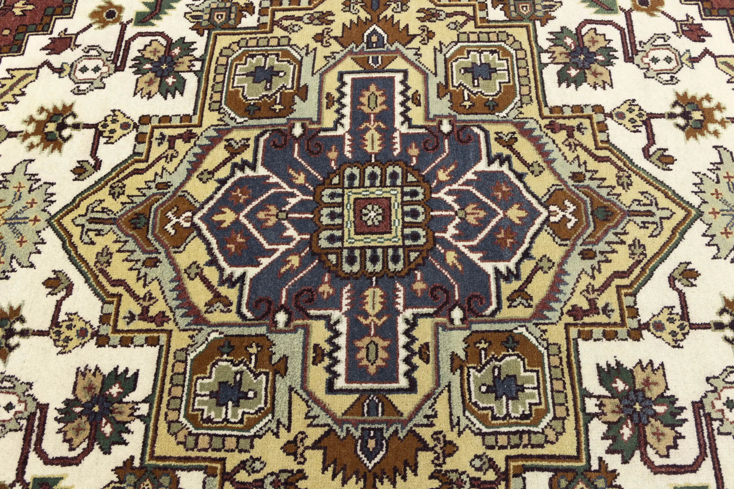 Cream Geometric 9X10 Heriz Serapi Oriental Rug