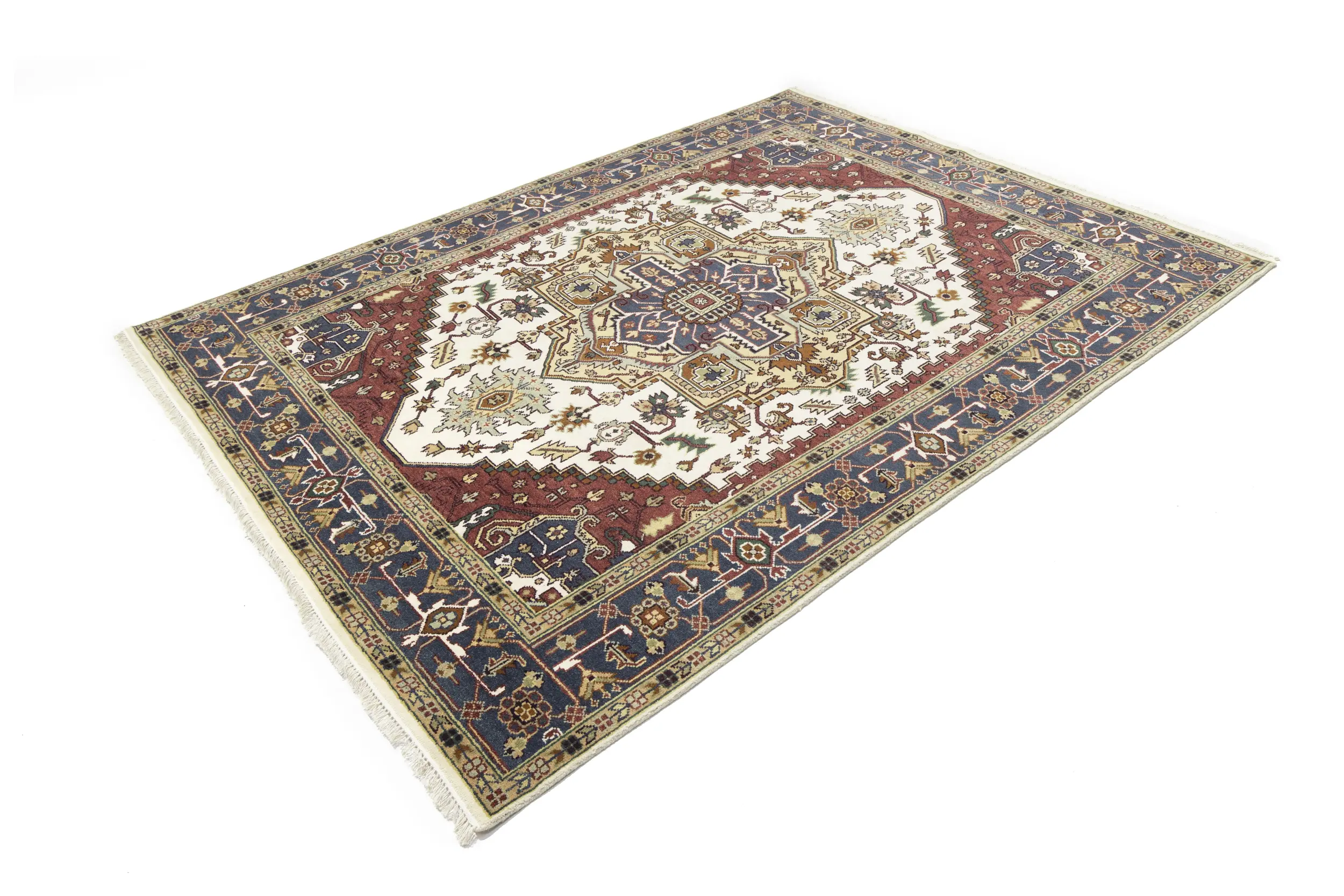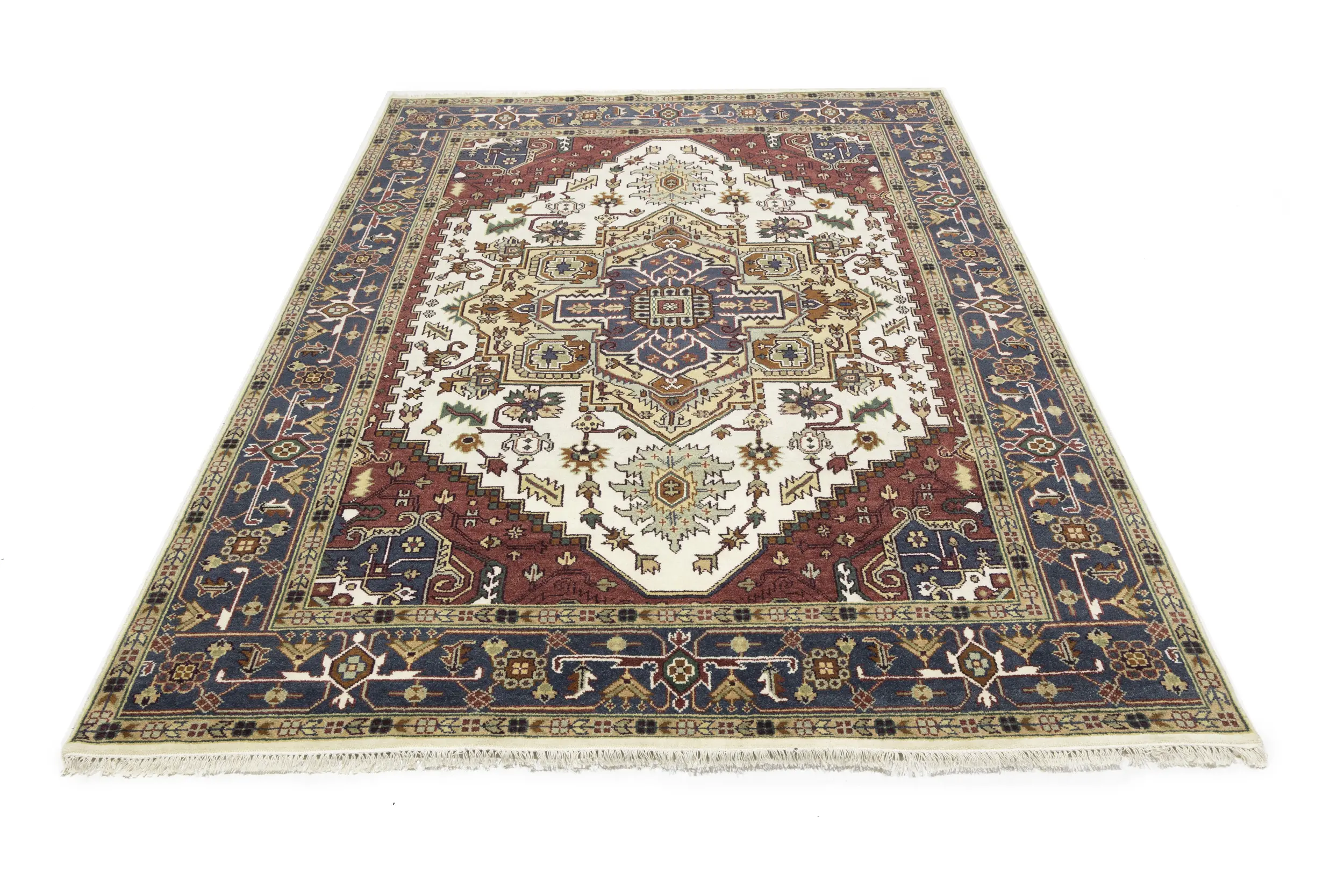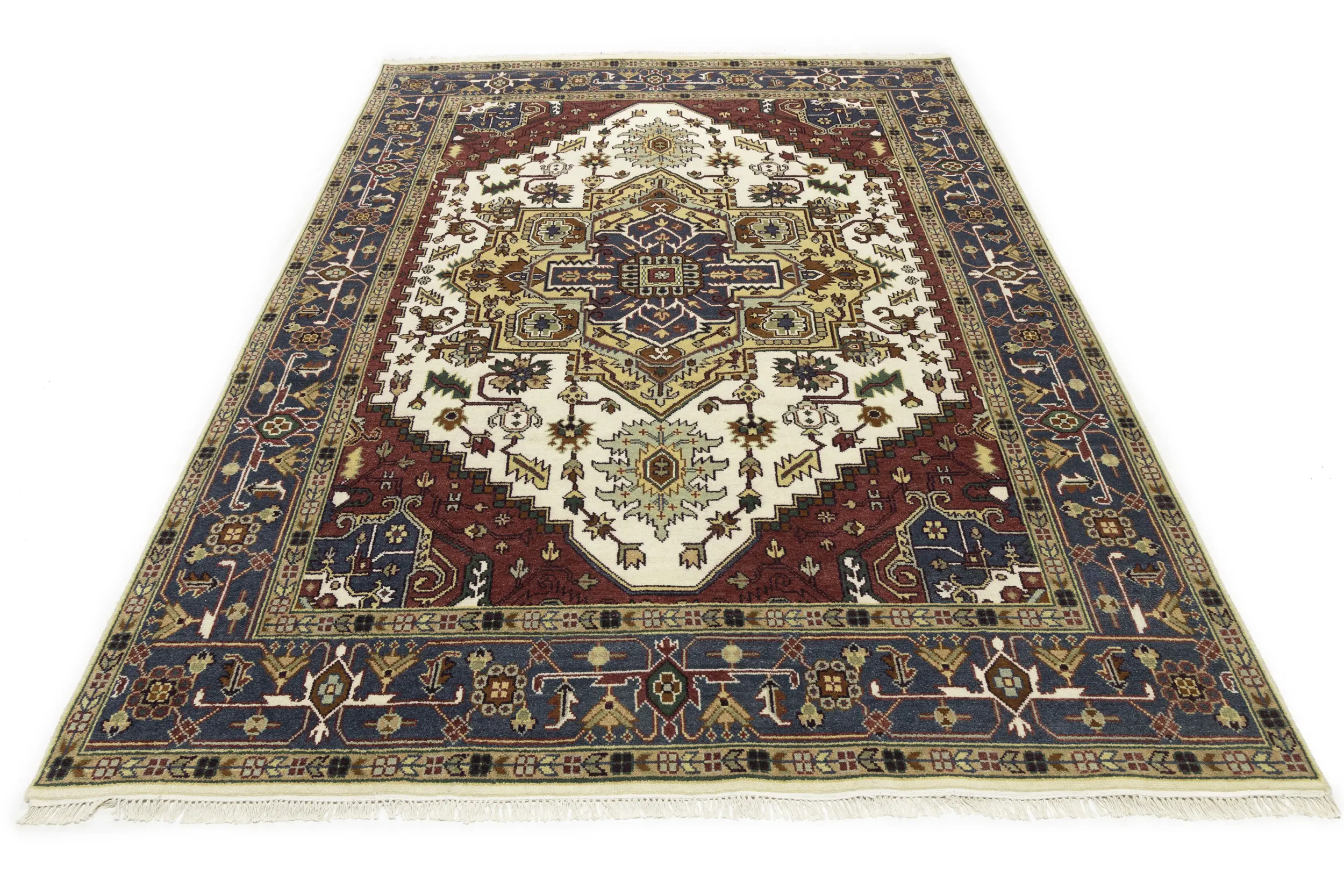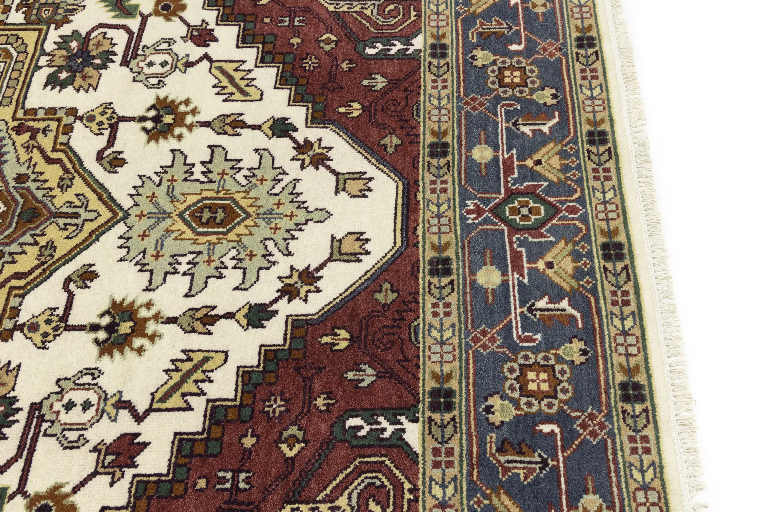Cream Geometric 9X10 Heriz Serapi Oriental Rug