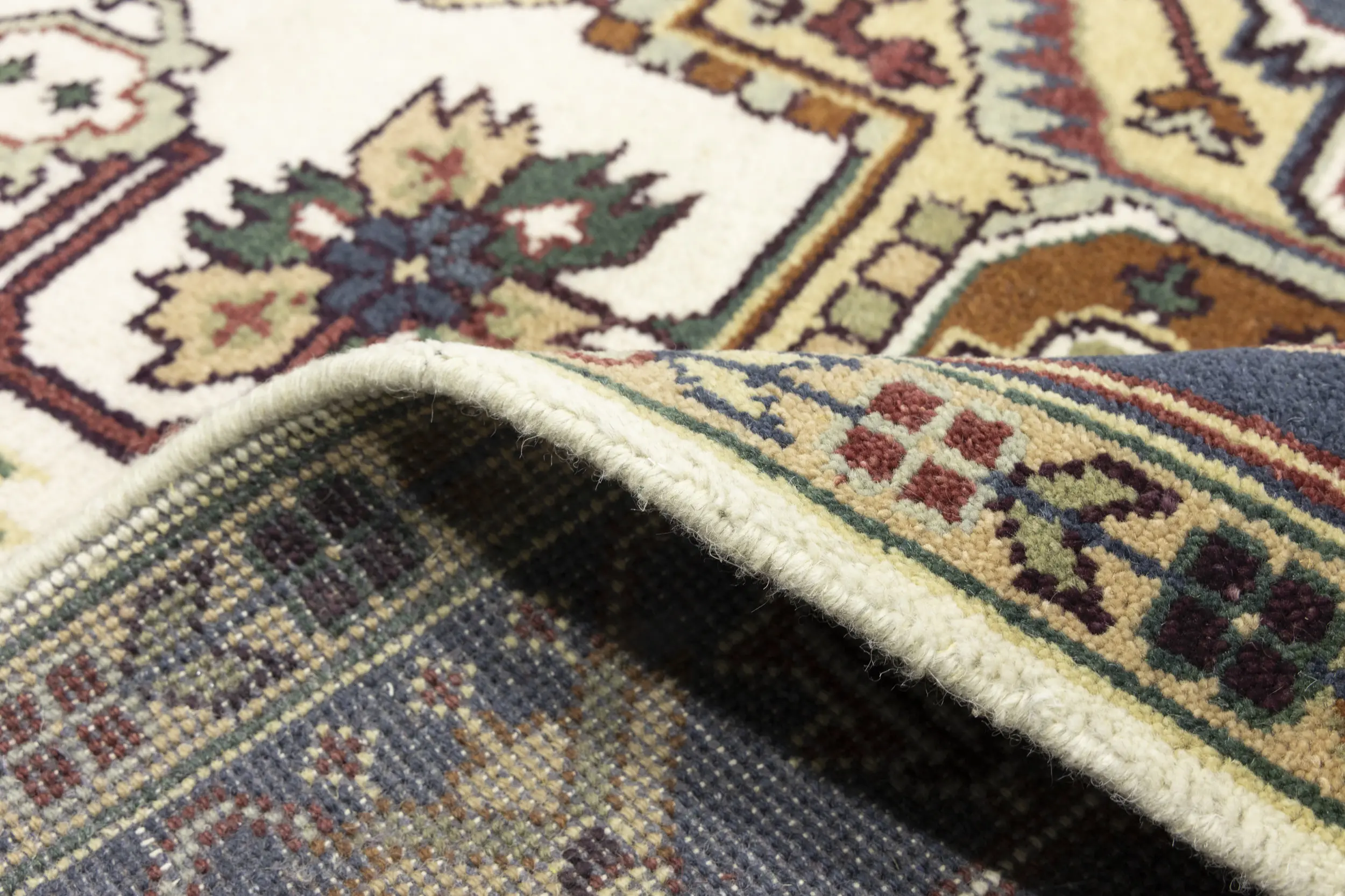 Handmade 9X12 cream Oriental rug made with vegetable dyes (fine wool pile and cotton foundation), superior knot count, and appealing ancient designs. This Oriental rug/runner never will go out of style and would be among your most valuable treasures.